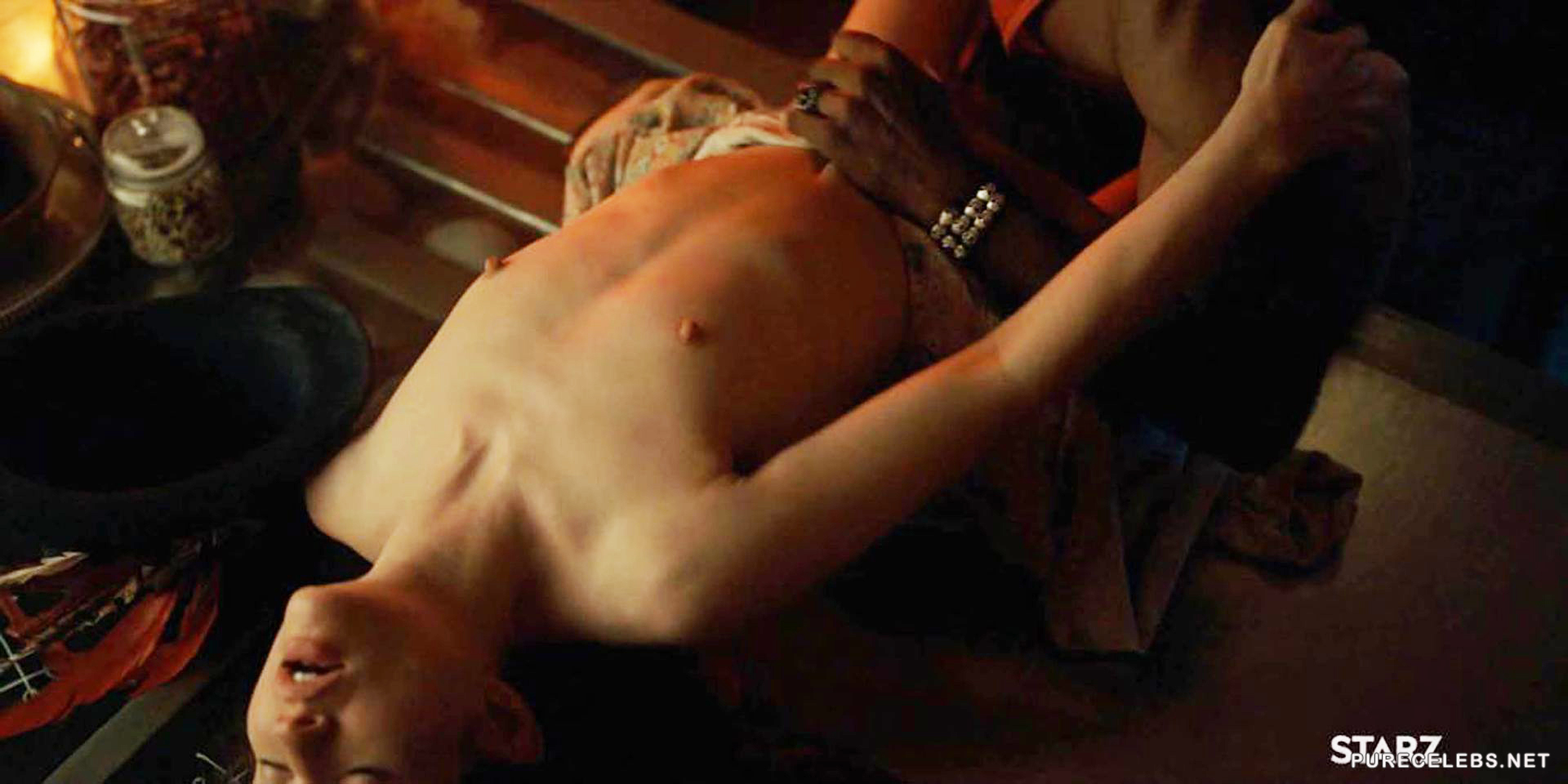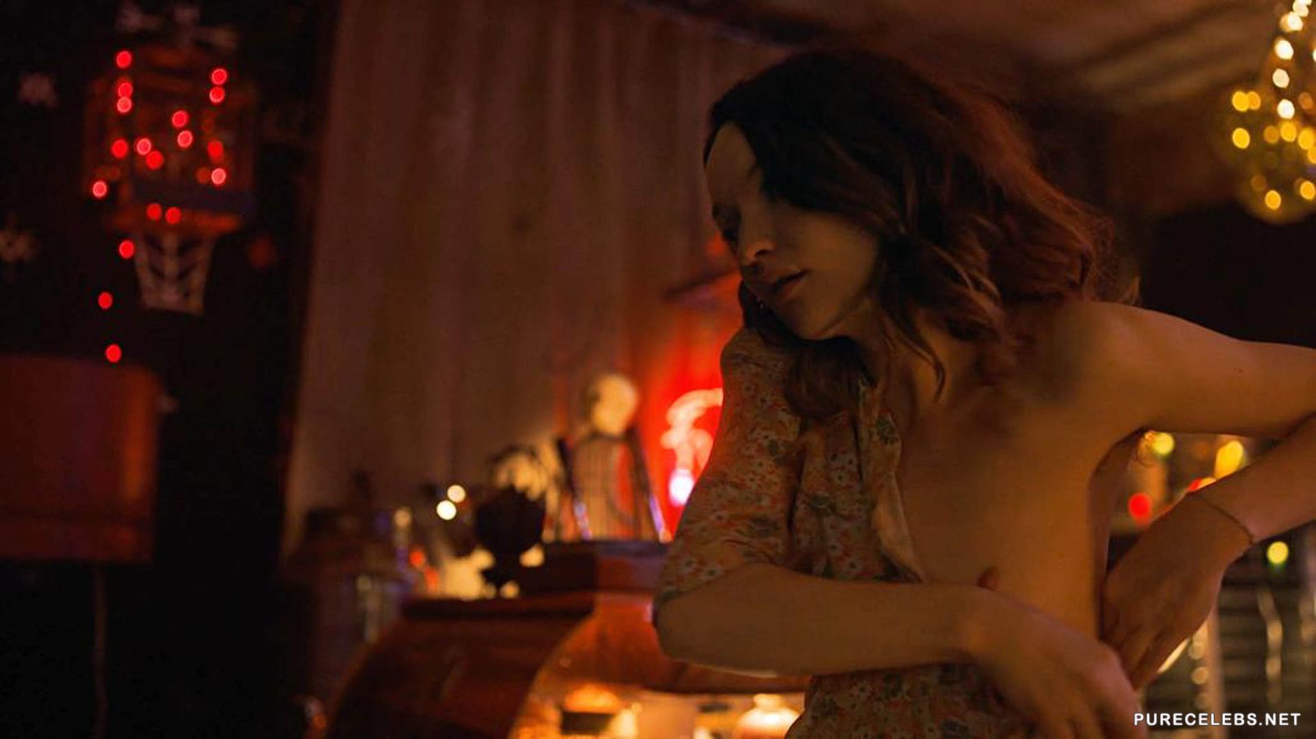 Recently Emily Browning starred nude in the second season of American Gods. The actress laid on a table in a lowered dress showing off her wonderful naked tits with hard nipples. And then she began to cover her boobs with her hands and pull on her dress. She was a little scared and that made her look even more attractive and sexy. This beauty will not leave you indifferent and will make you think about her all night long.