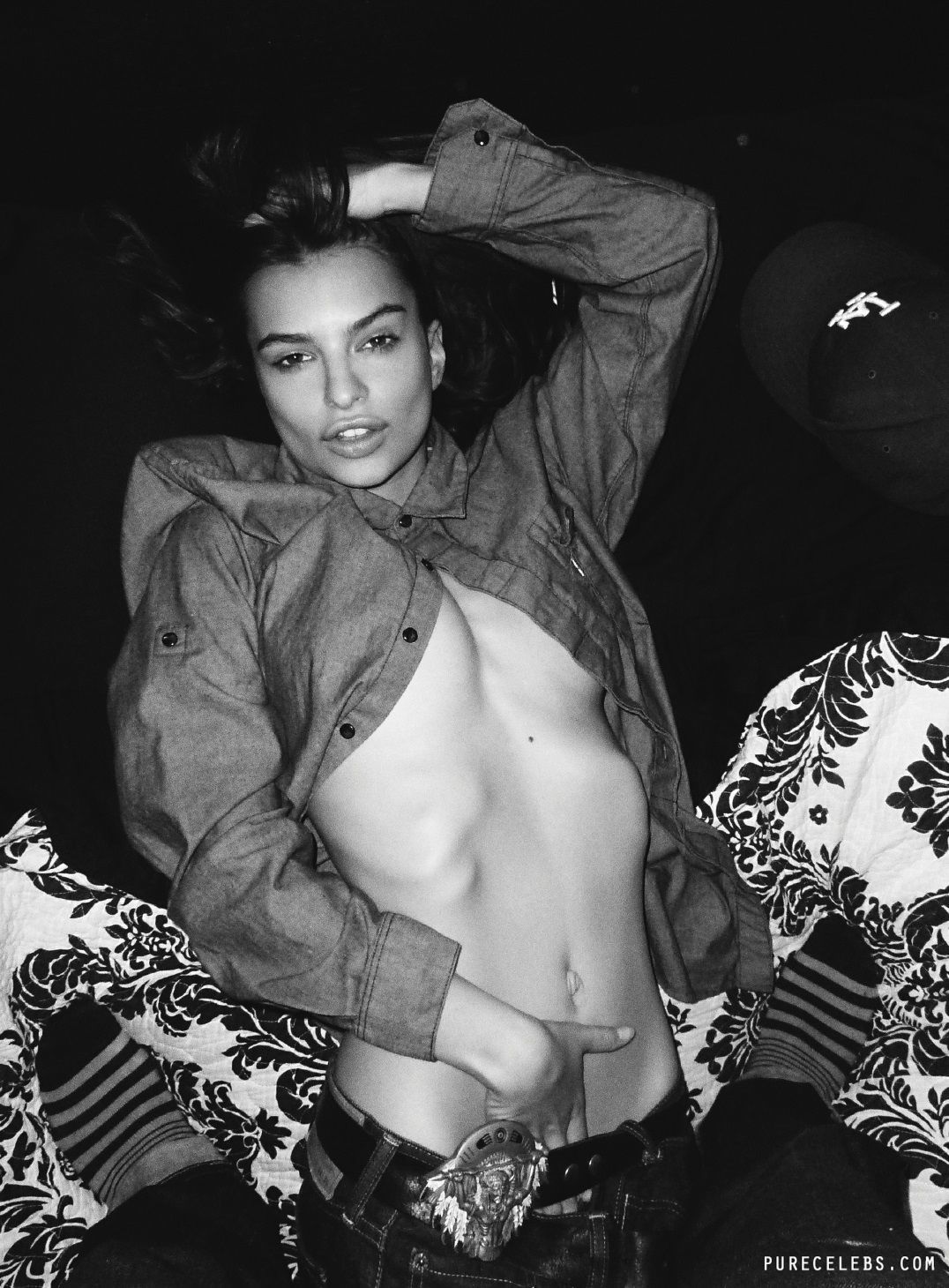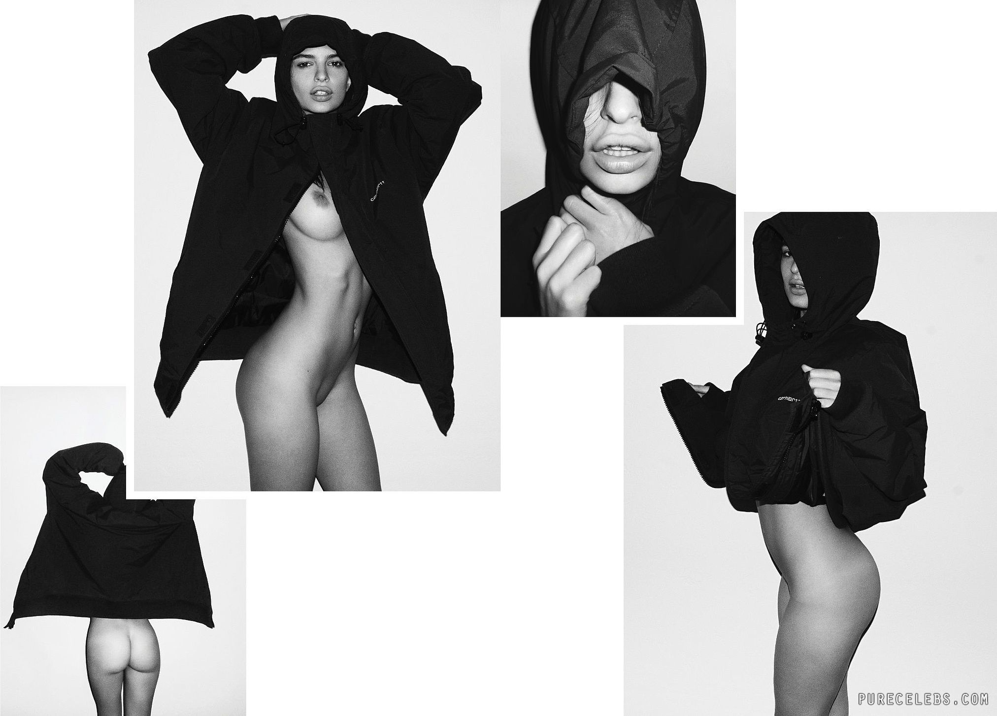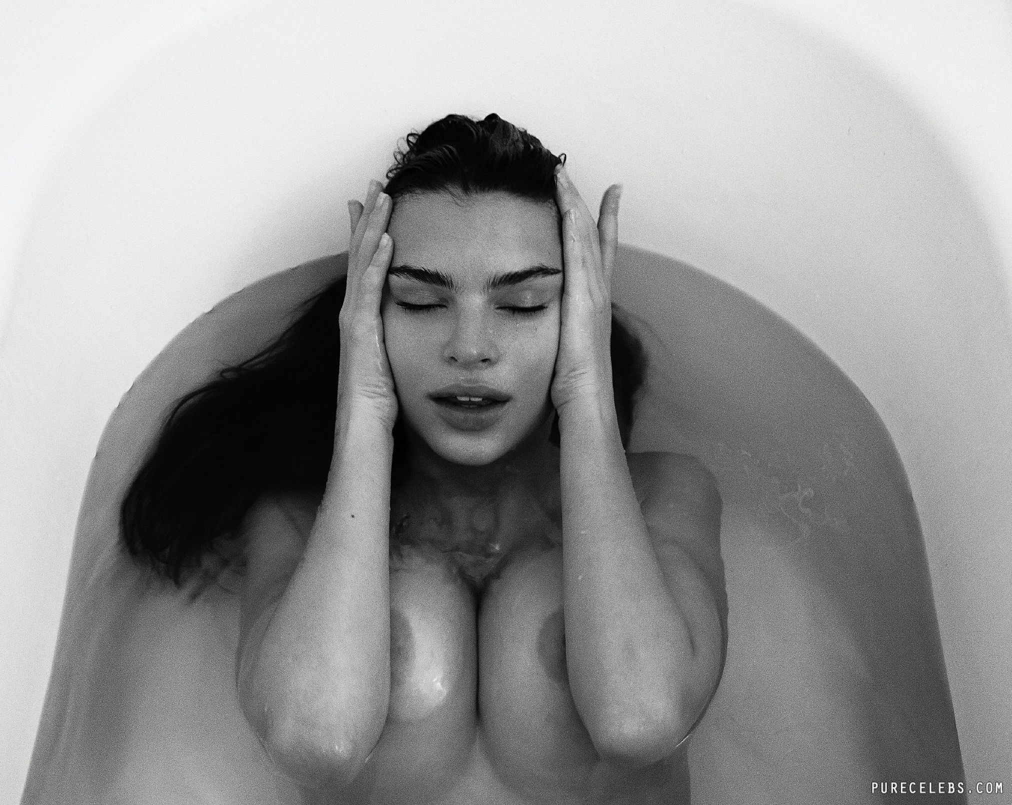 American model Emily Ratajkowski boasted of her huge nude boobs with large nipples in a black and white photo shoot. The celebrity posed while lying in the bathroom and holding her head in her hands, thereby covering part of her naked tits. Also, this beauty posed naked in a black unbuttoned jacket. Therefore, Emily Ratajkowski’s awesome nude butt and sweet pussy were visible to everyone.