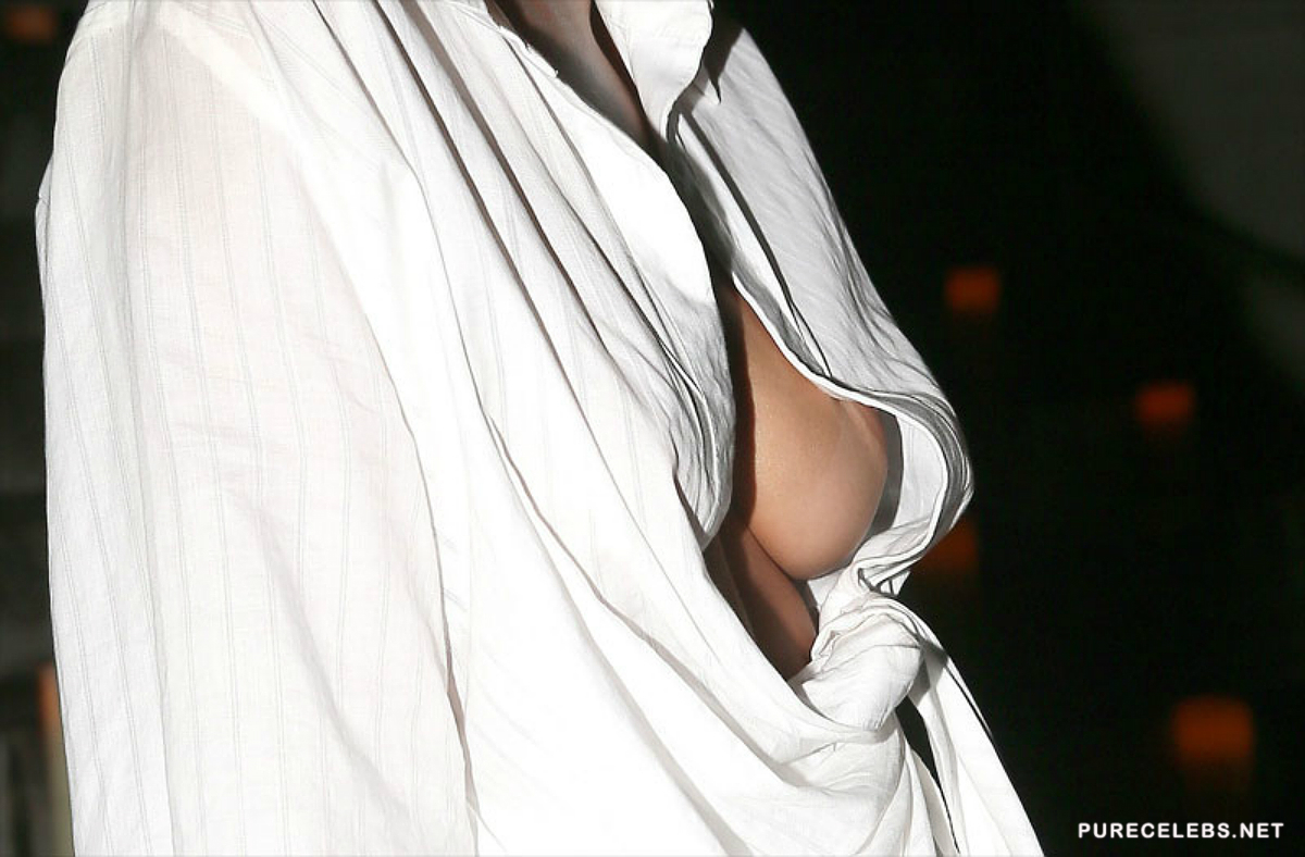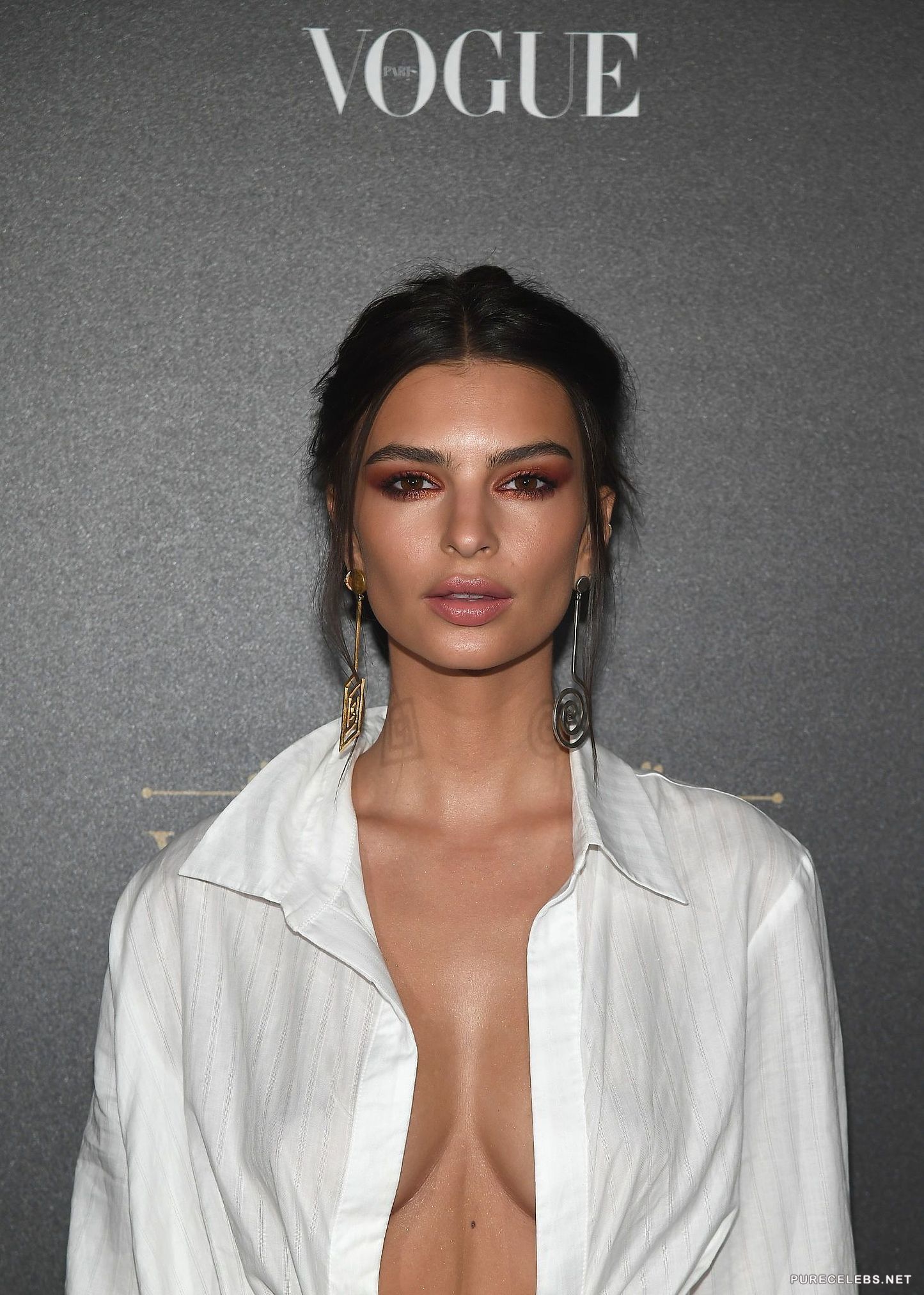 Maybe you remember Emily Ratajkowski from her appearance in the 2014 hit movie Gone Girl, and after seeing these candid photos of her amazing boobs you will surely never forget this brunette bombshell. Emily attended a promotional event for Vogue magazine wearing a low cut white shirt which allowed her boobs to slip out and get caught on camera by the paparazzi. Her awesome natural tits surely attracted the attention of everyone present at the party.