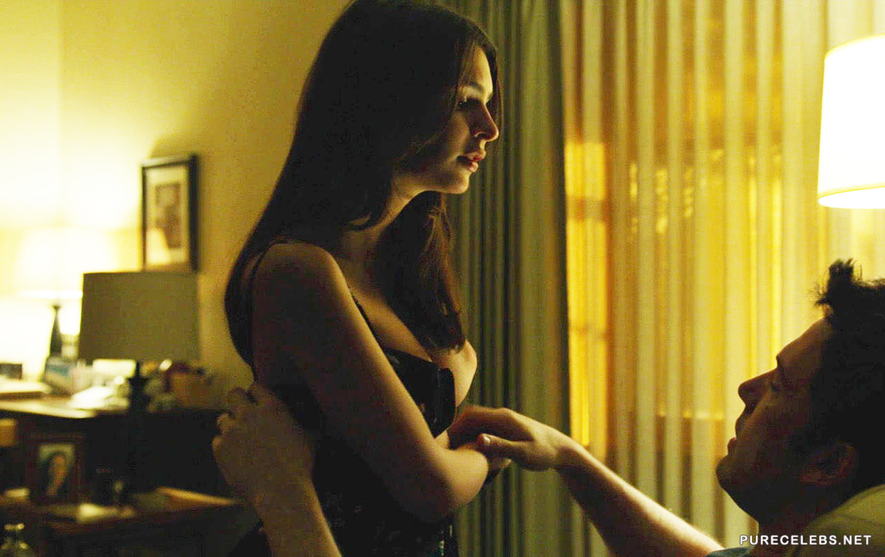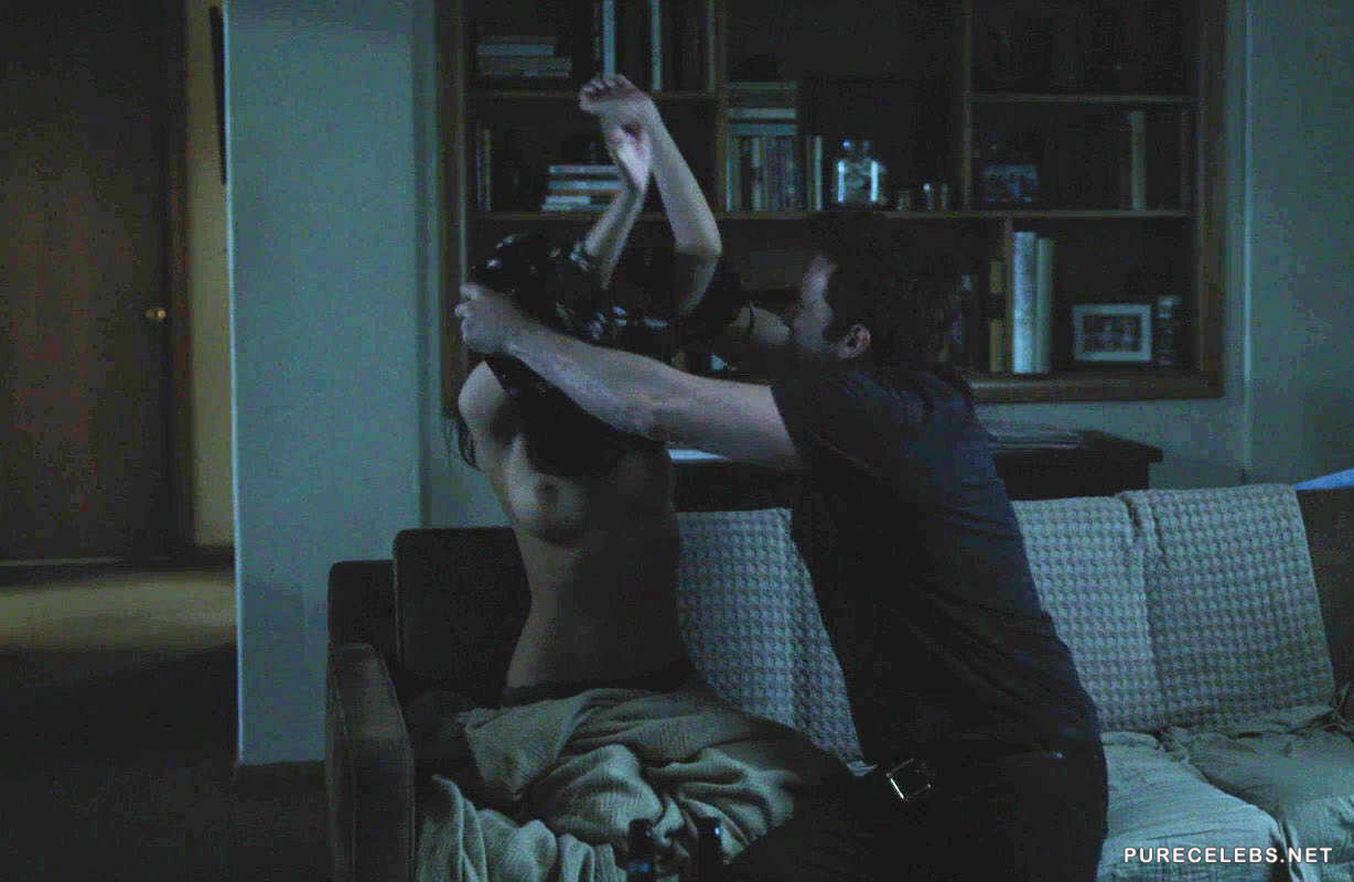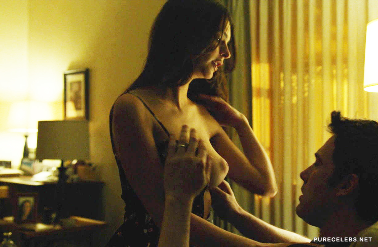 Emily Ratajkowski appeared in new movie Gone Girl where she showed her amazing body in sex scene with fellow actor. As they strip of clothing and things get hotter, she straddles him in the chair, pushing her amazing bit tits into his face. He grabs both of them squeezes and starts sucking on her hard nipples, while she enjoys the sensation and starts slowly to ride him.