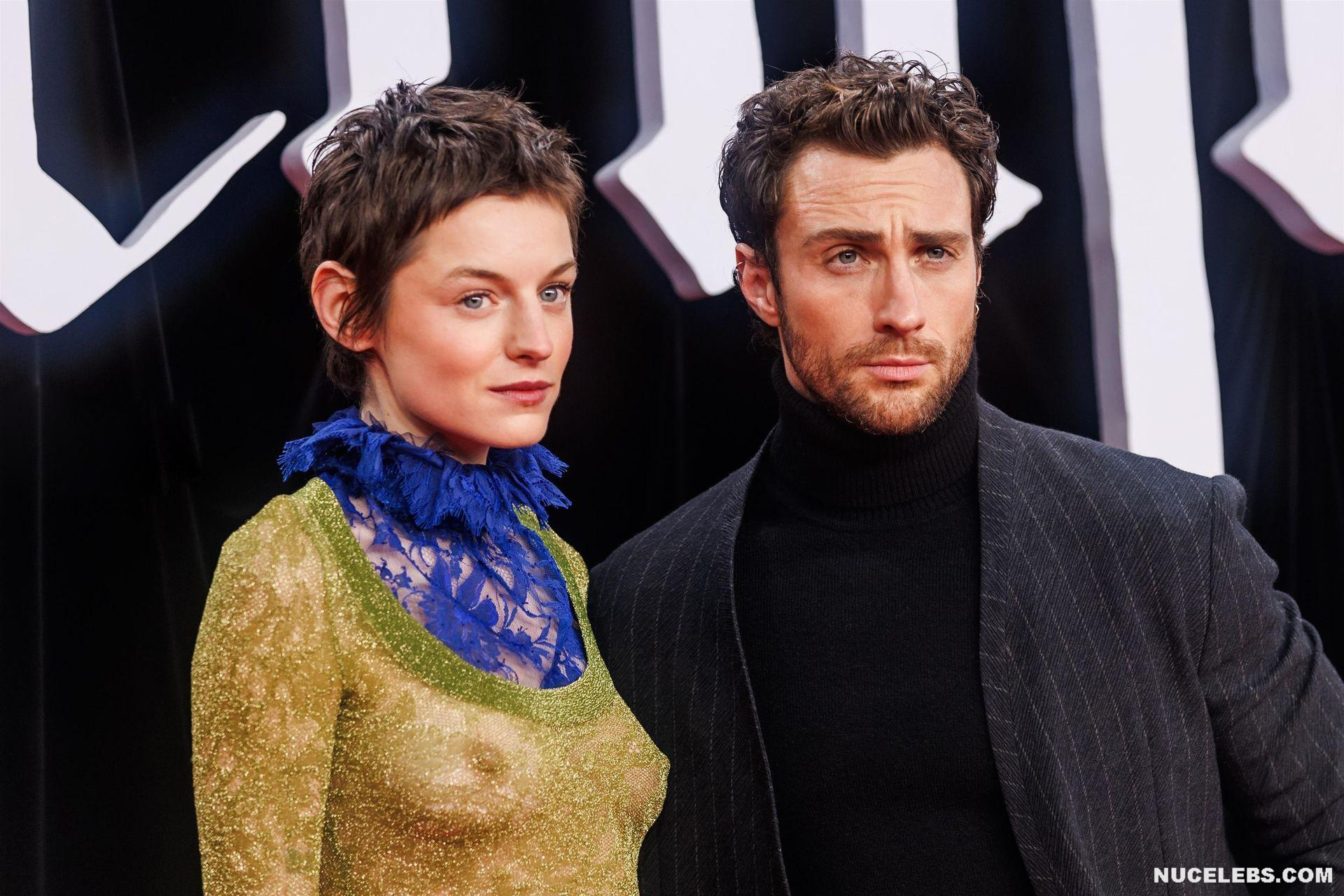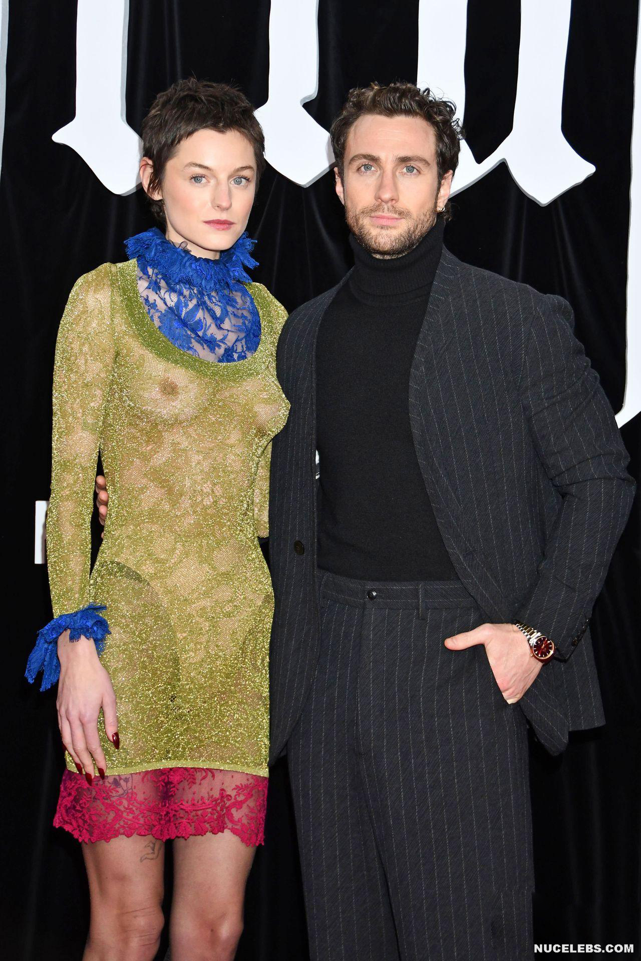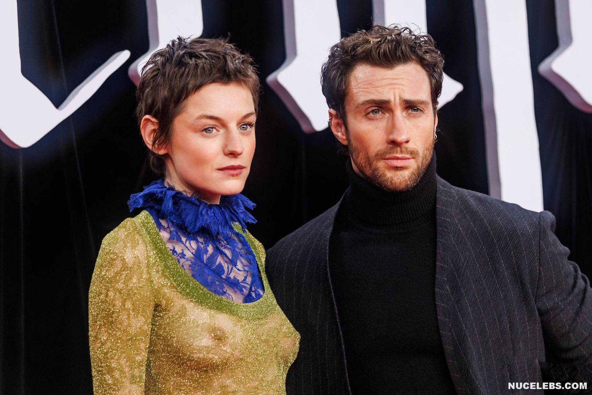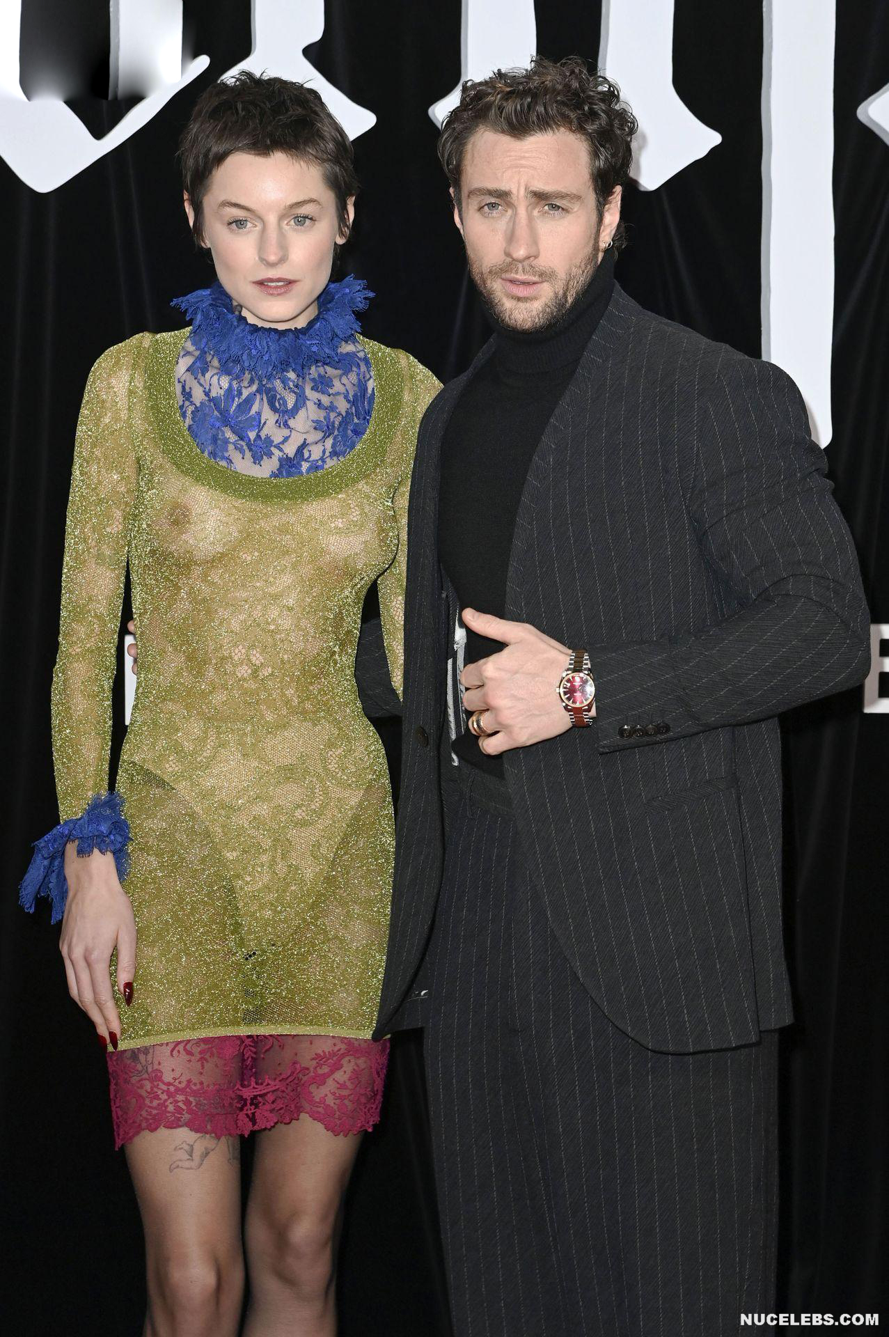 Hot babe Emma Corrin showed off her nude boobs during her recent red carpet appearance. It was simply impossible not to notice her! This celebrity flaunted her stunning figure in a lacy green dress with pink and blue trim. At the same time, Emma Corrin nude boobies with tattooed nipples were visible through the transparent fabric! Uncover this and other stunning images of your favorite actress.