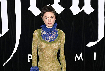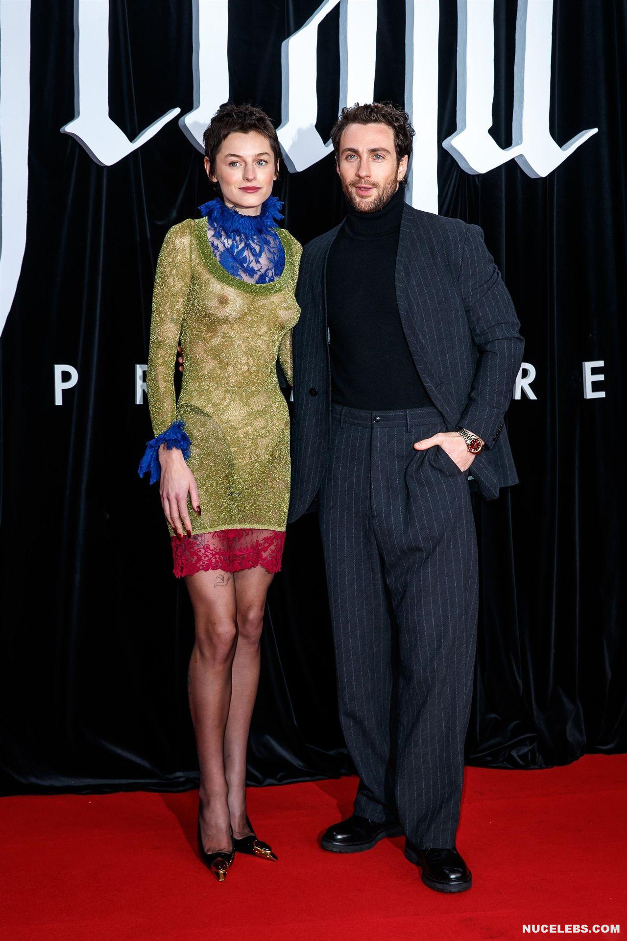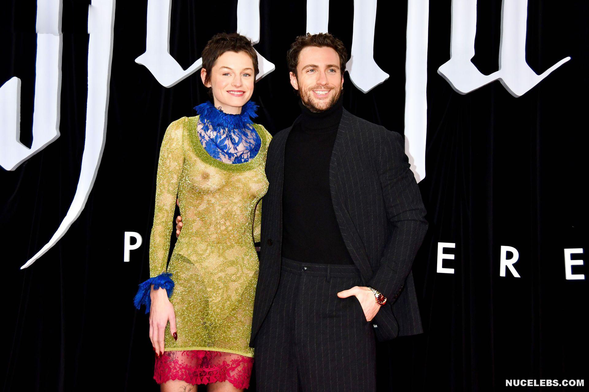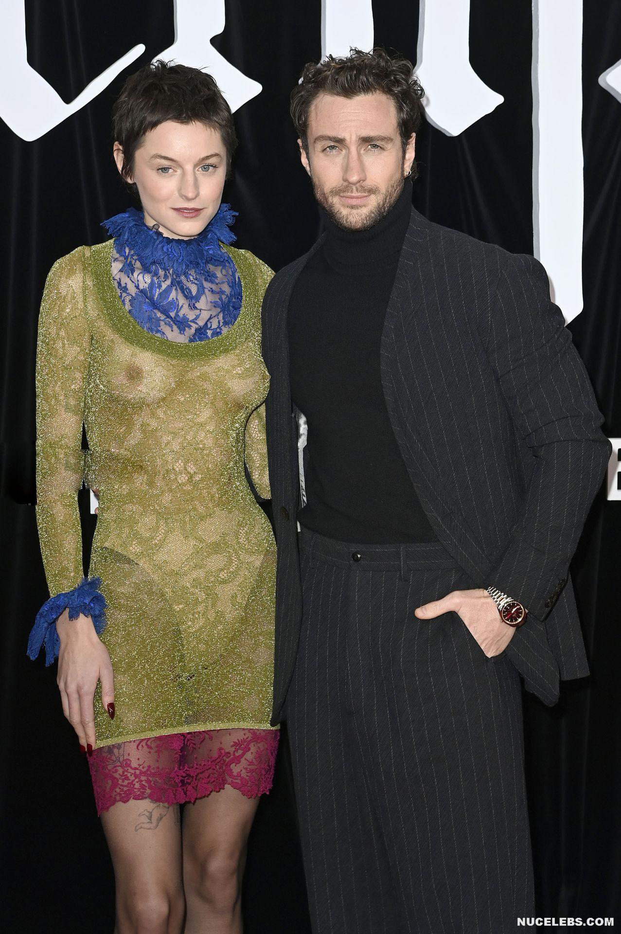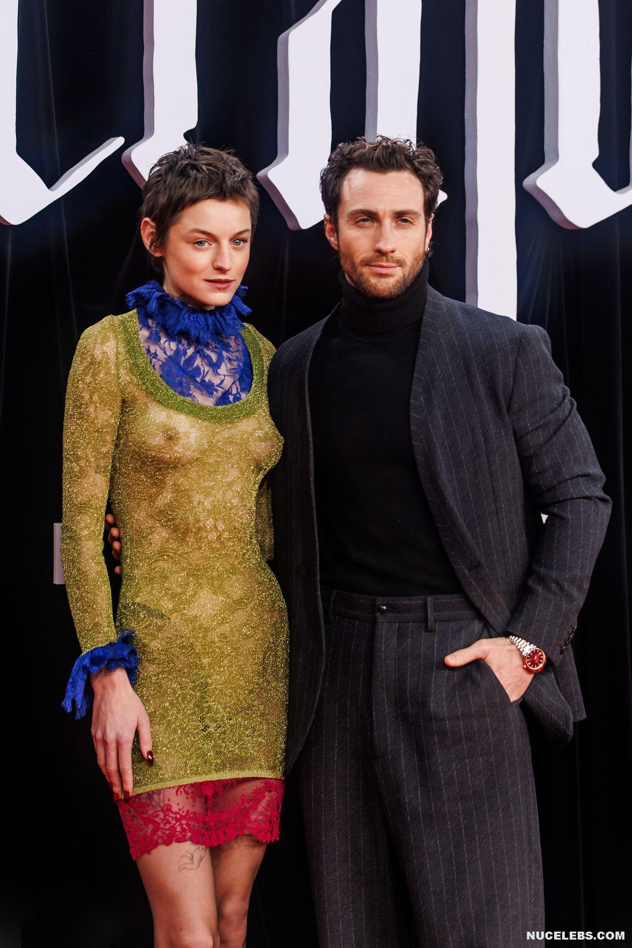 Hot babe Emma Corrin showed off her nude boobs during her recent red carpet appearance. It was simply impossible not to notice her! This celebrity flaunted her stunning figure in a lacy green dress with pink and blue trim. At the same time, Emma Corrin nude boobies with tattooed nipples were visible through the transparent fabric! Uncover this and other stunning images of your favorite actress.