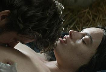 You will jerk off all night long seeing Emma Mackey nude titties in Emily. This Franco-British actress starred in many sex scenes there. So, she enjoyed sex with a man in the hay. And this celebrity fucked with him on the floor near the fireplace. Oh, Emma Mackey’s nude titties with brown nipples peeking out from under her white ruffled dress looked so seductive at this moment!