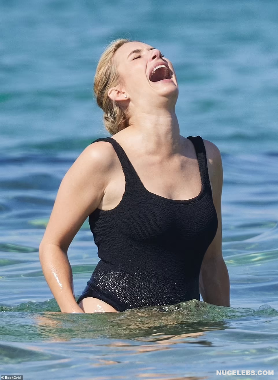 Emma Roberts had a great time on the beach with her friends, including Ashley Benson. This time Emma decided not to wear a bikini, but to show off her slender figure in a black tight swimsuit. Well, it is worth noting that when she adjusted the bottom of the swimsuit, her buttocks looked so elastic and seductive! Also, the low cut of the swimsuit gave the opportunity to admire her awesome boobs.