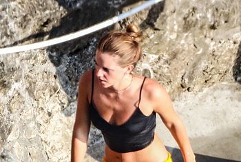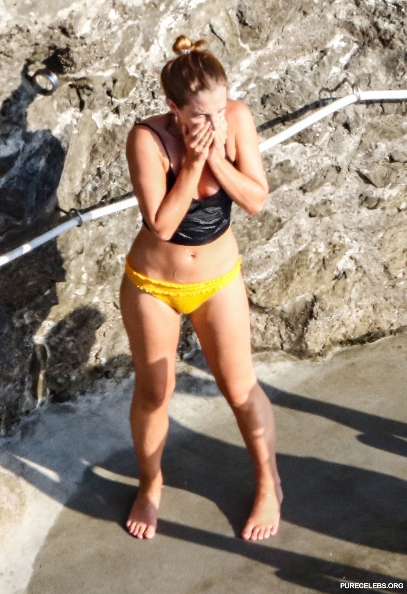Photos of Emma Watson nude booty became very popular and instantly scattered all over the tabloids. The nimble paparazzi managed to catch this British actress during her beach vacation. Well, it is worth noting the girl looked very sexy in a small black top, from which her juicy tits almost jumped out. And her awesome ass in yellow panties was breathtaking. And what a wonderful moment it turned out when the actress decided to straighten her wet panties. At this moment, Emma Watson’s nude butt became visible to everyone around and the paparazzi immediately photographed it!