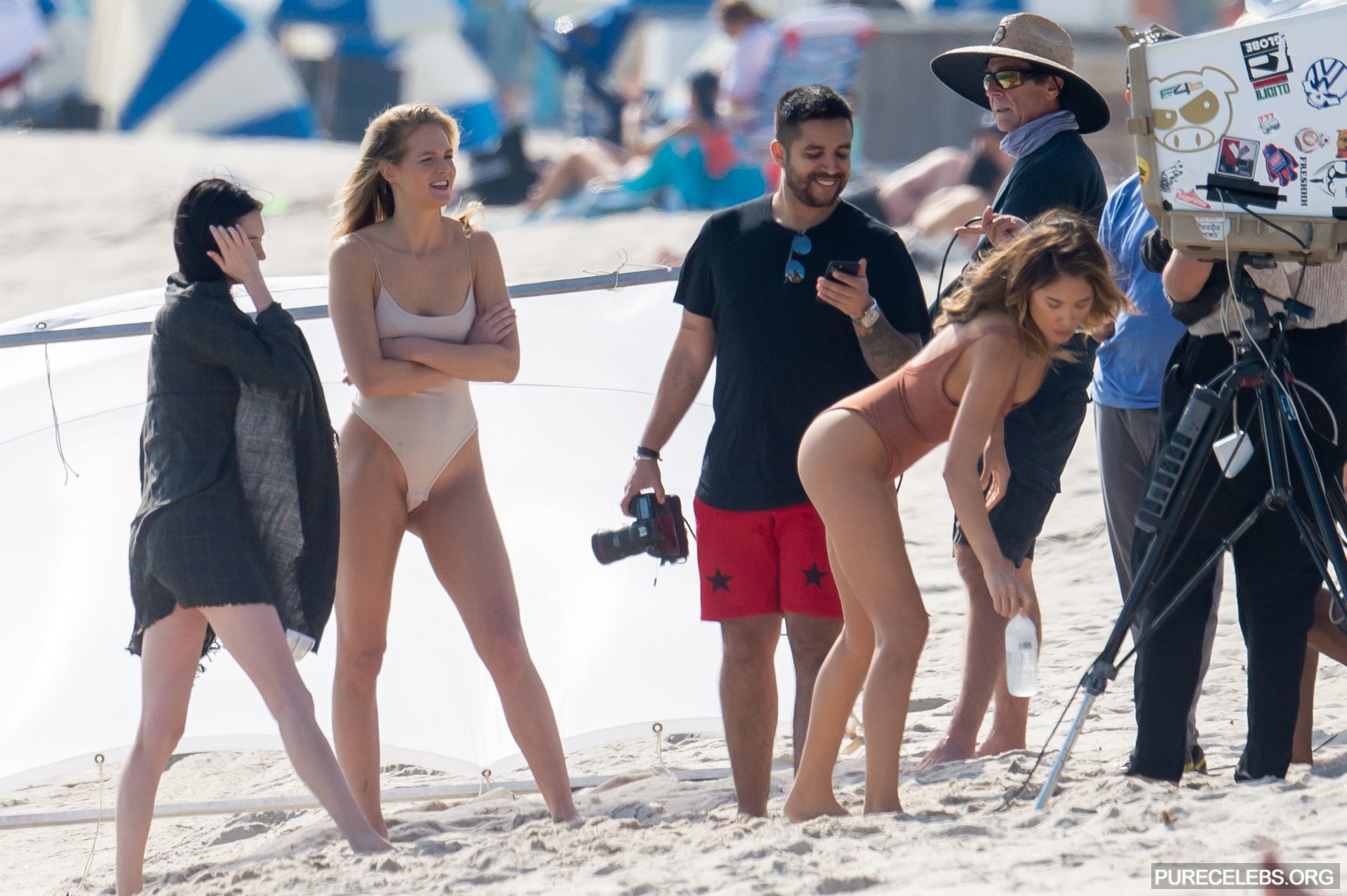 It was simply impossible to look away from Erin Heatherton and Jocelyn Chew at swimsuit photo shoot in Miami. These celebrities enjoyed posing in tight swimsuits, which almost did not cover their chic butts and sweet pussies, and through the thin fabric of which they were clearly visible their awesome boobs with brown poking nipples. Well, it is worth noting that these hot stars were the focus of public attention!
