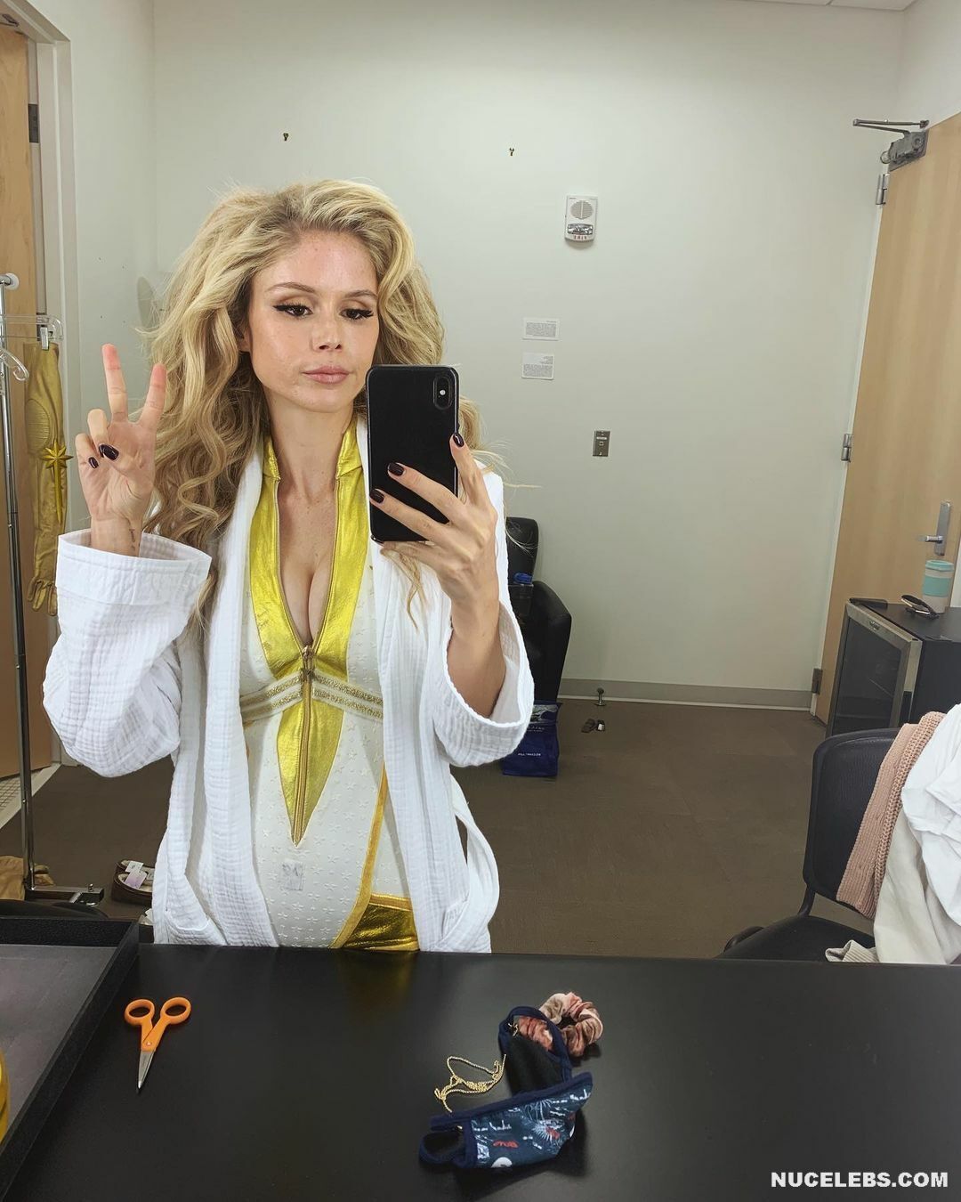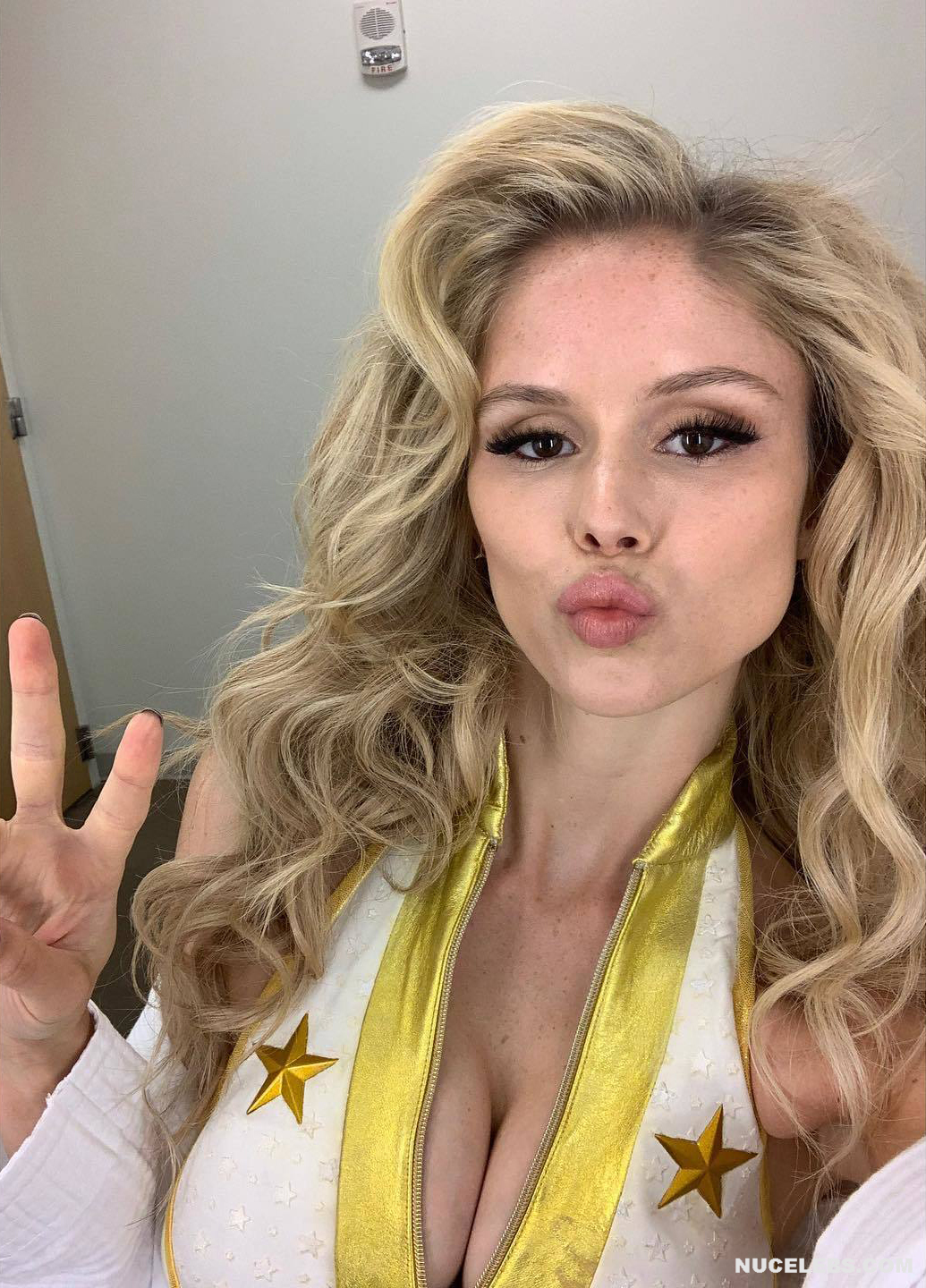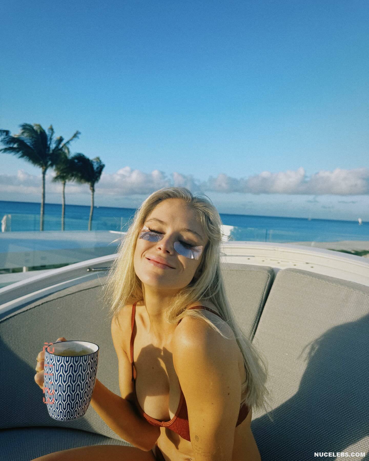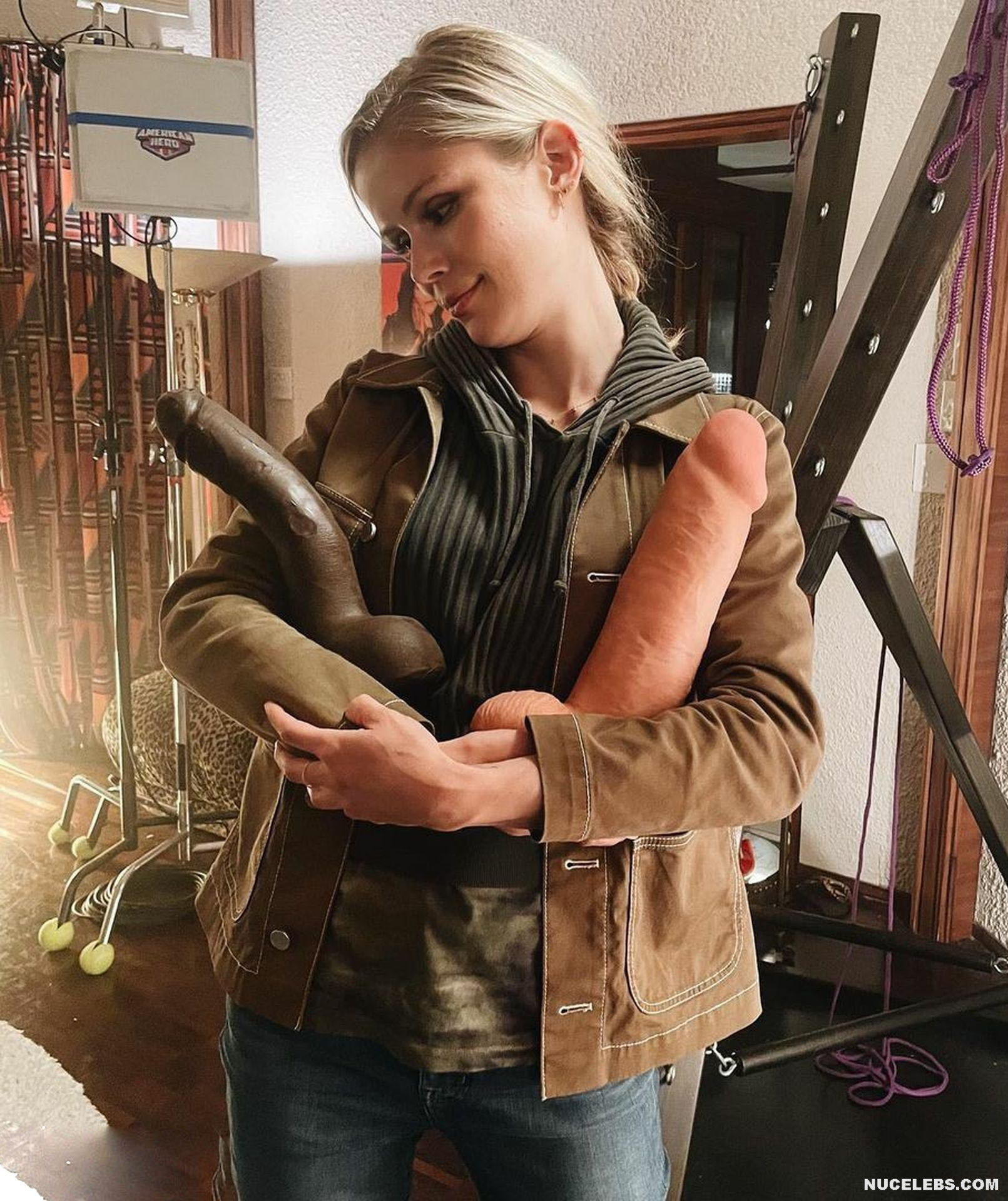 Erin Moriarty will excite your attention with her bikini photos. This 29-year-old actress looked so sexy while sunbathing in a red skimpy bikini! Also check out her sweet tits in a tiny white bikini, which she showed off during a beach selfie. This star is in no hurry to be among the best nude celebs, but she loves to provoke the public with her photos. So, Erin Moriarty was photographed with two huge dildos in her hands, gently pressing them to her chest!