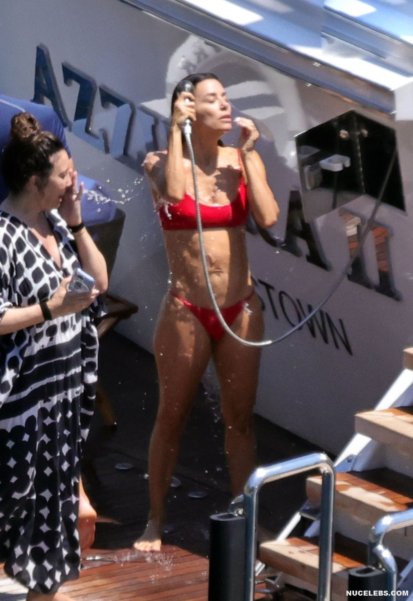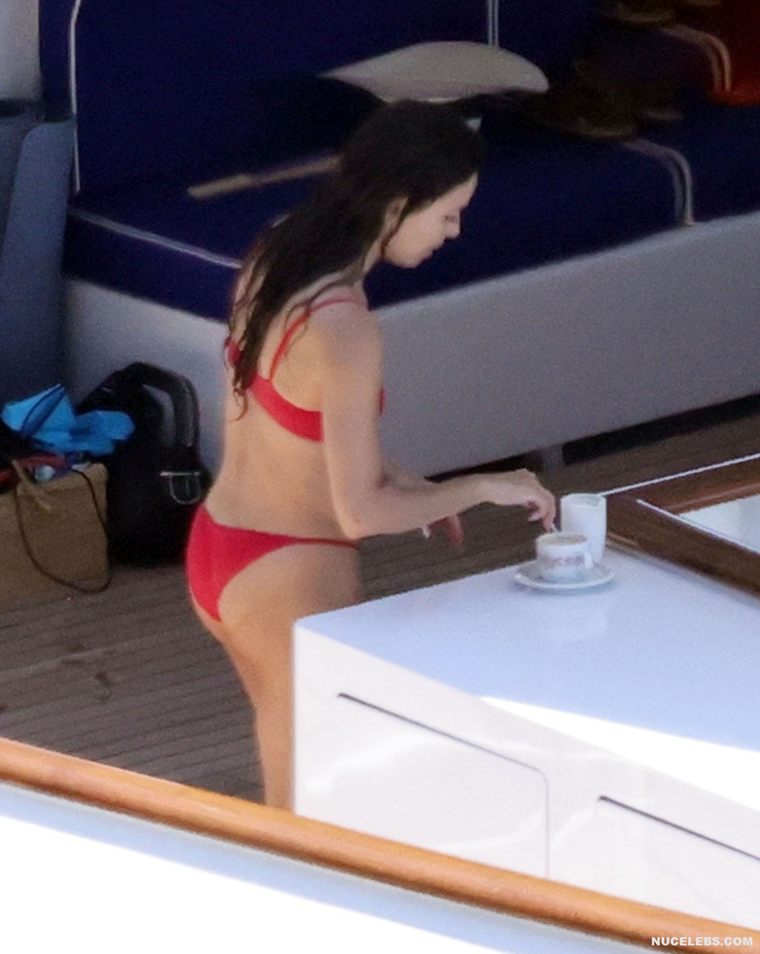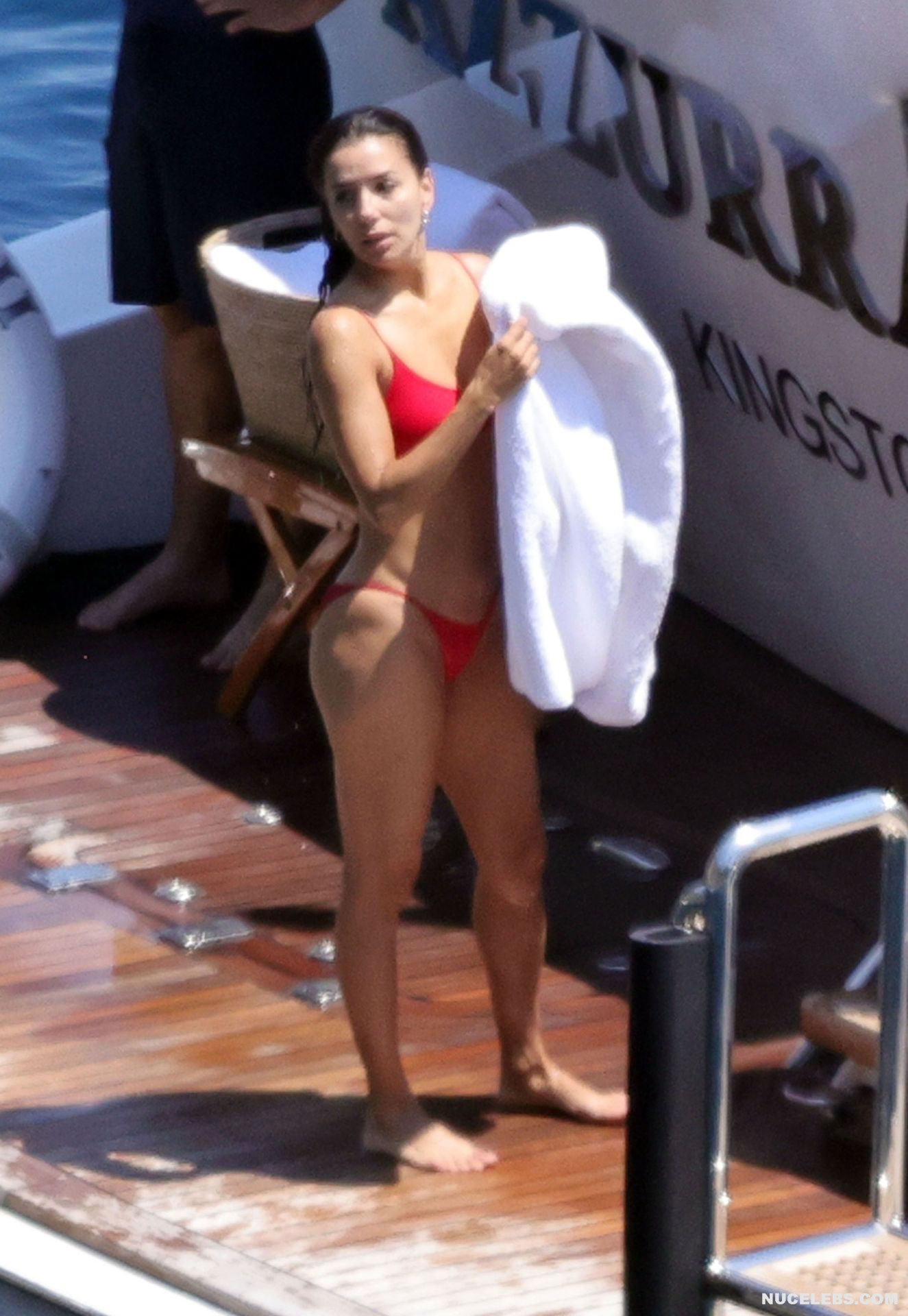 Eva Longoria is in great physical shape, so it is absolutely comfortable for her to appear in public in petite bikinis. Recently, the paparazzi photographed this beauty when she was relaxing on a yacht. This American actress looked stunning in a red bikini. And the paparazzi even managed to photograph Eva Longoria nude butt! Of course, this didn’t happen on purpose. It’s just that the celebrity decided to straighten her wet panties and overdid it a little, pulling them down. And the paparazzi did not miss the opportunity to take a photo of Eva Longoria nude ass!