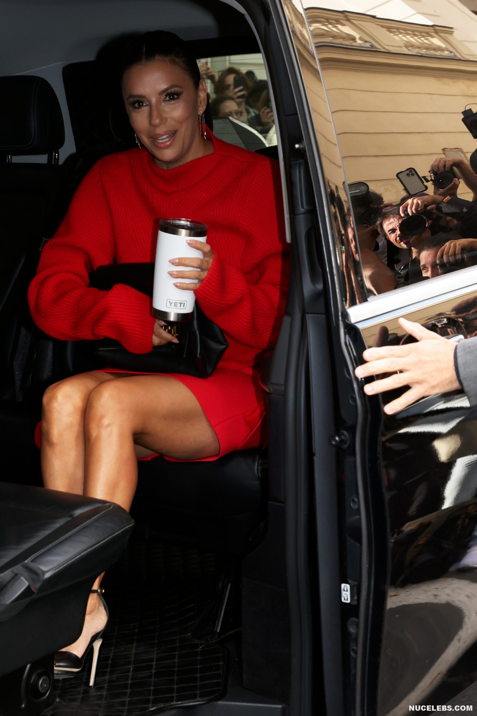 Charming beauty Eva Longoria very rarely exposes herself in front of the public. However, recently the paparazzi managed to take upskirt photos of her. This hot American actress in a short red dress was just getting out of the car. And even though her knees were pressed together, her panties were visible at some points. Perhaps next time Eva Longoria will forget to wear underwear and we can finally see her nude pussy?