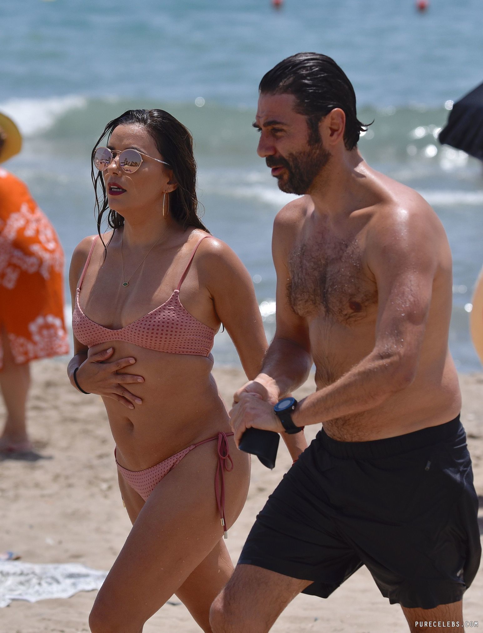 Hot chick Eva Longoria was seen during a beach holiday in a very sexy, although not nude, way. Paparazzi managed to photograph the actress when she emerged from the water. Oh, her gorgeous butt in wet panties was breathtaking! And her juicy boobies were clearly big for a small bra. Therefore, it seemed that Eva Longoria nude tits could jump out of it at any moment.