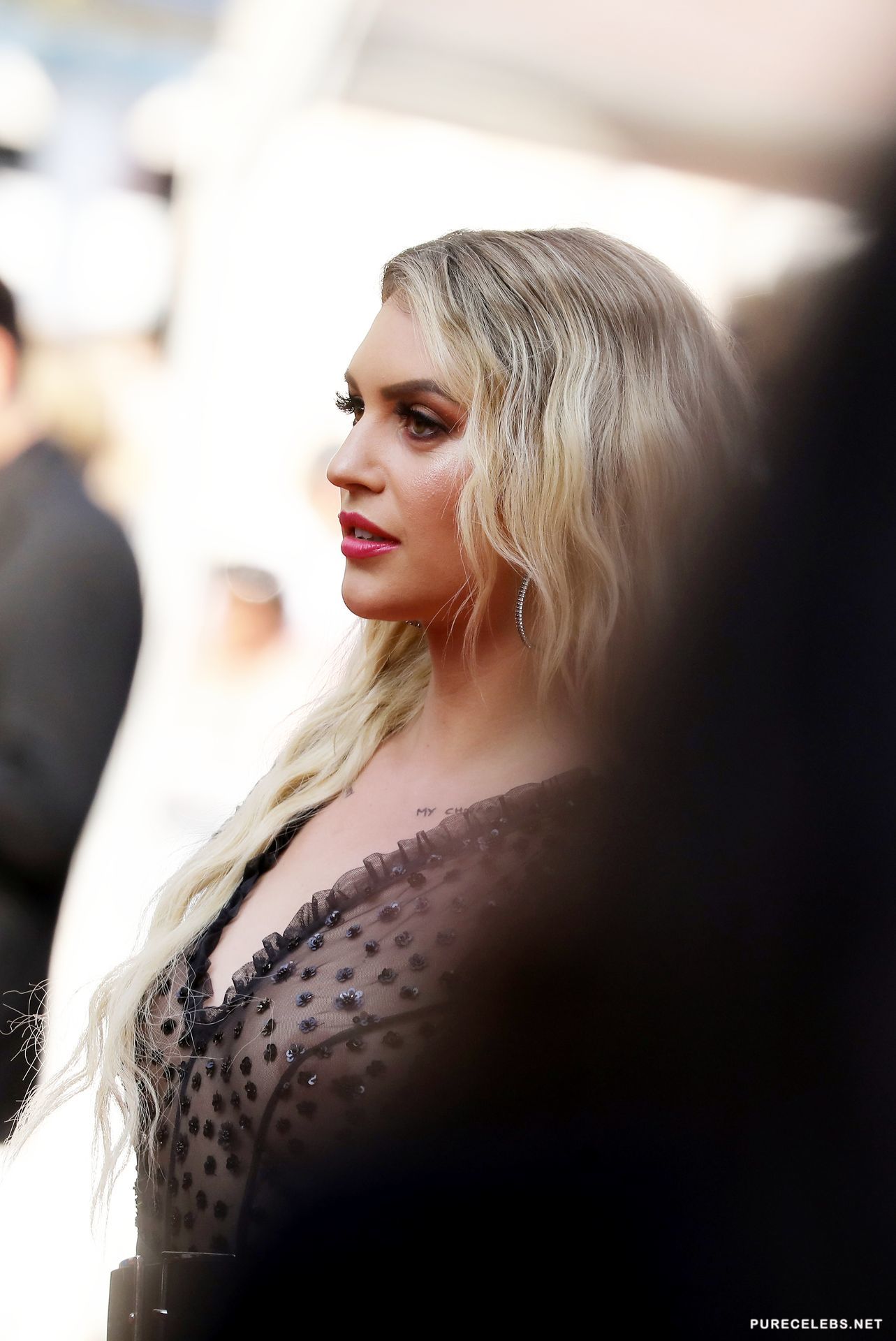 Swedish model and actress Fancy Alexandersson happily posed for the cameras on the red carpet. This celebrity chooses such outfits from which it is simply impossible to look away. This time, the star was wearing a short black translucent dress. Her sweet breasts with hard nipples looked just incredible through the transparent top of the dress, because the hot blonde did not take care to put on her bra!