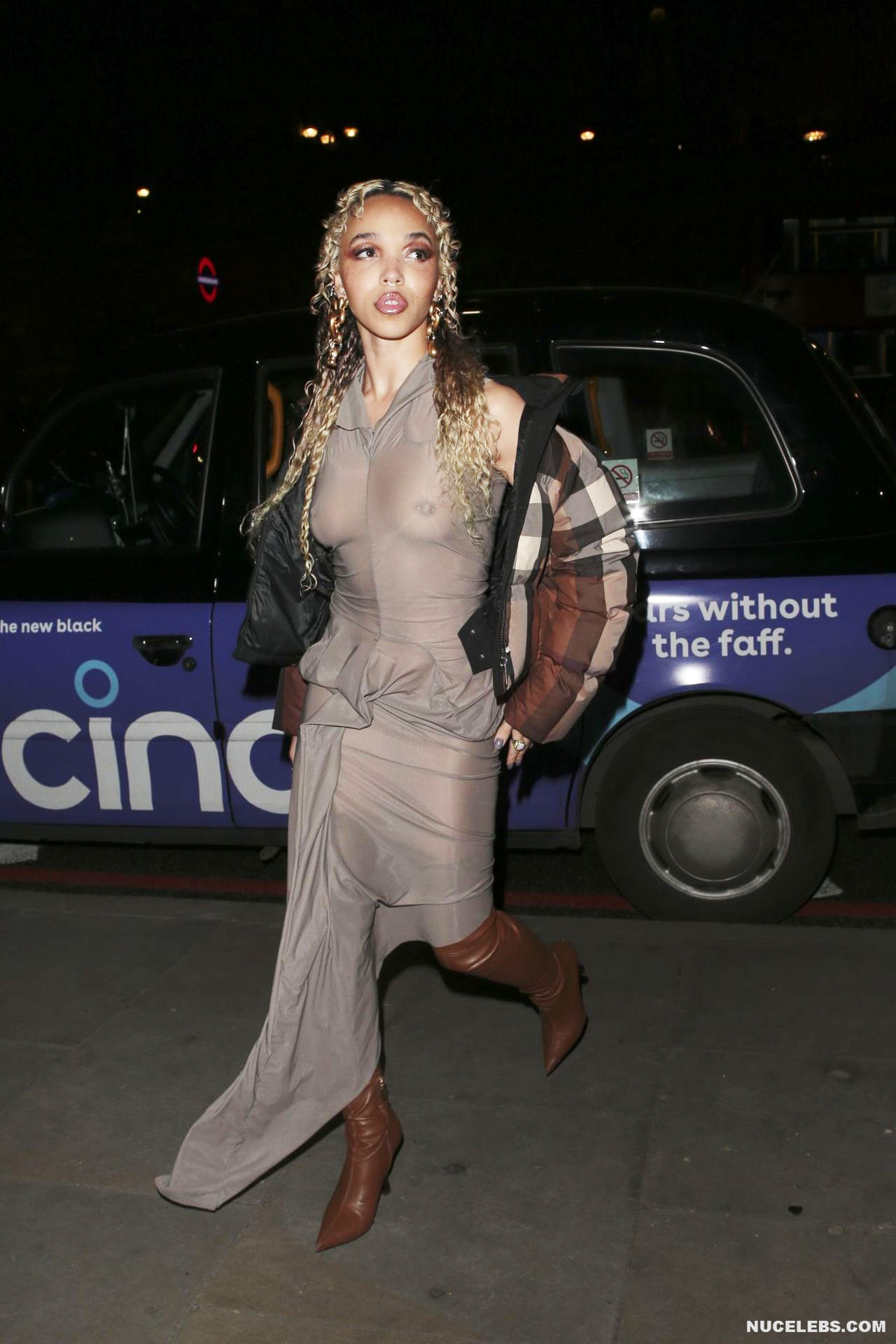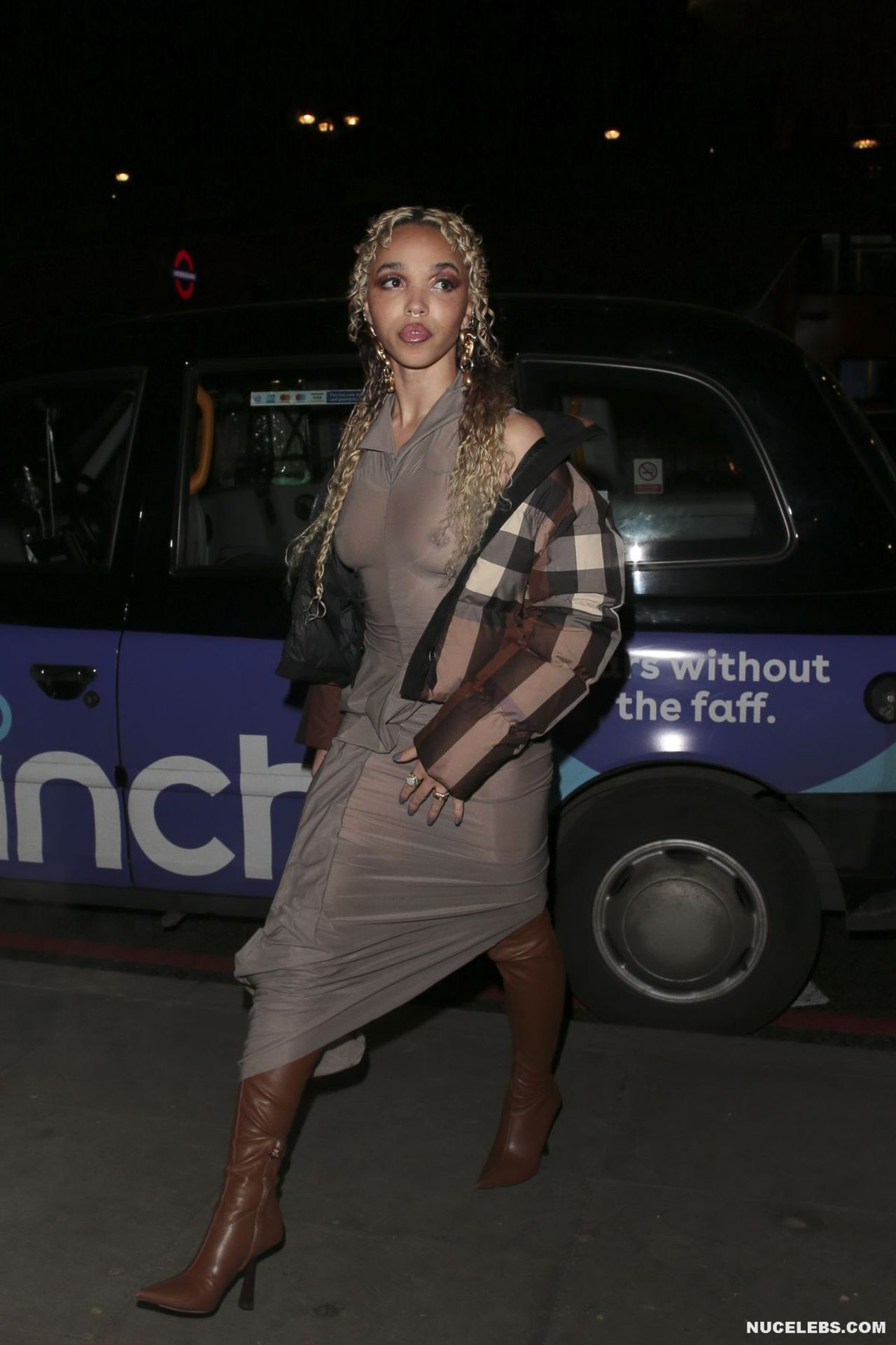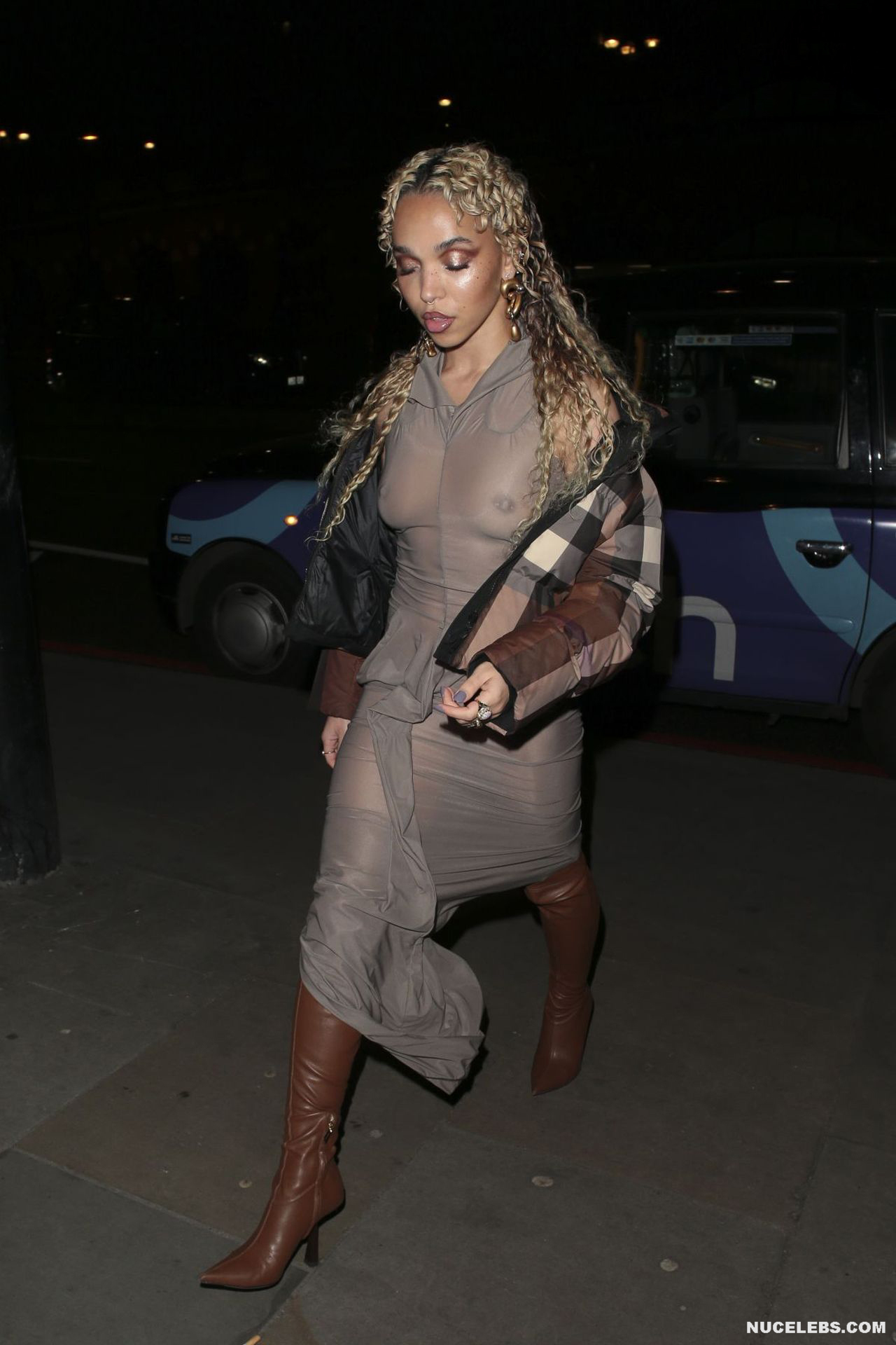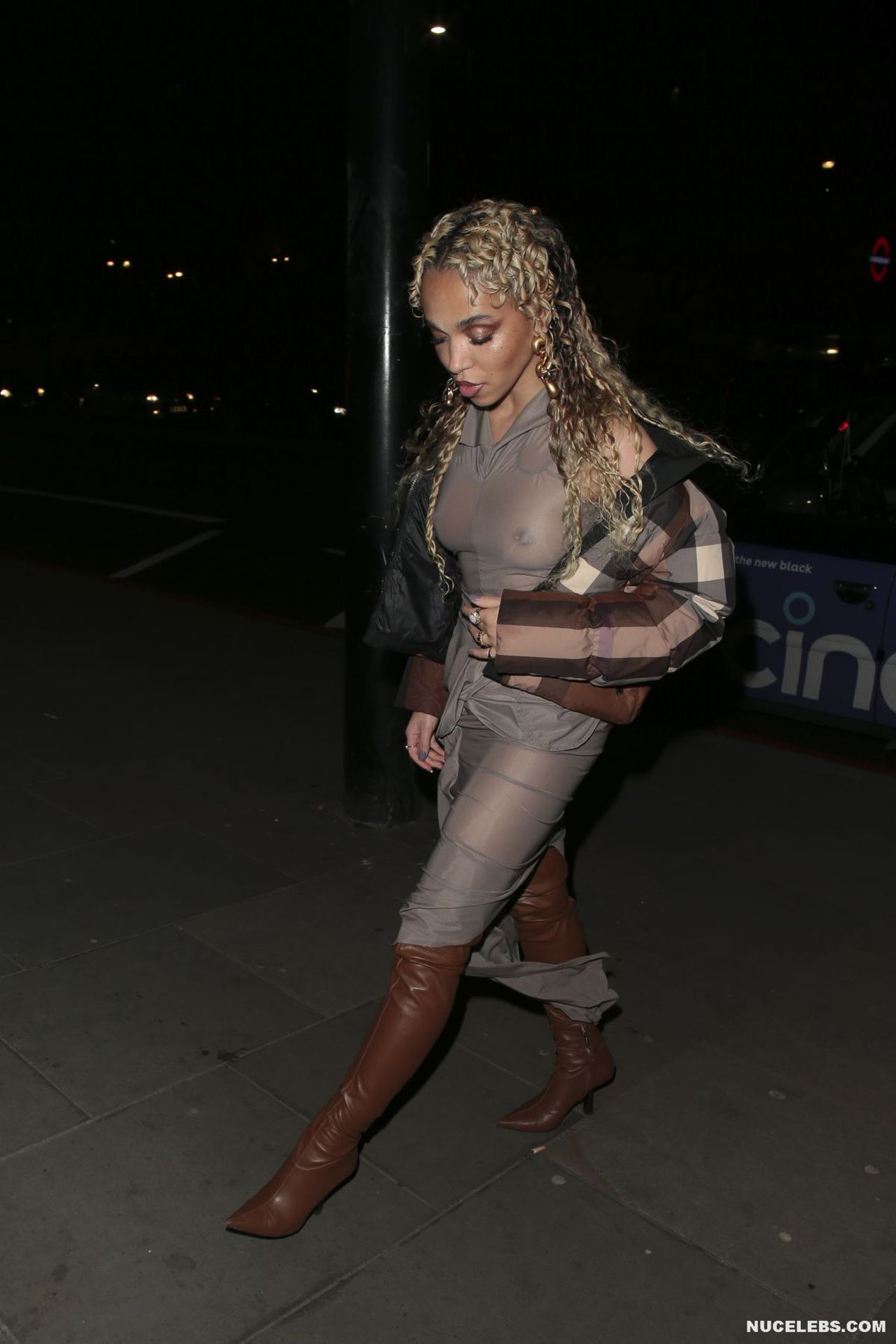 Are you ready to admire FKA Twigs nude boobies? It turns out you can do it right now! And all thanks to the fact that at one of the events this 34-year-old singer appeared in a gray transparent suit and an unbuttoned black jacket. FKA Twigs didn’t seem at all embarrassed by the fact that her nude titties with hard nipples were on display!