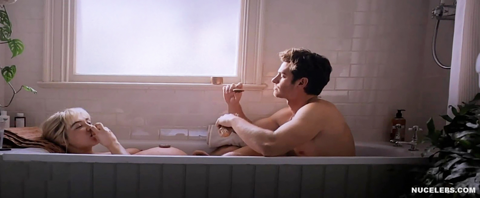 Florence Pugh went completely nude in We Live in Time! Look how confident this star felt when a man undressed her near the bathtub. This beauty’s pregnant belly was simply enormous. But Florence Pugh nude juicy tits and gorgeous peachy ass attracted even more attention to her! Her gorgeous body could be seen in every detail when she climbed into the bathtub. Fans are obsessed, and honestly, who can blame them?