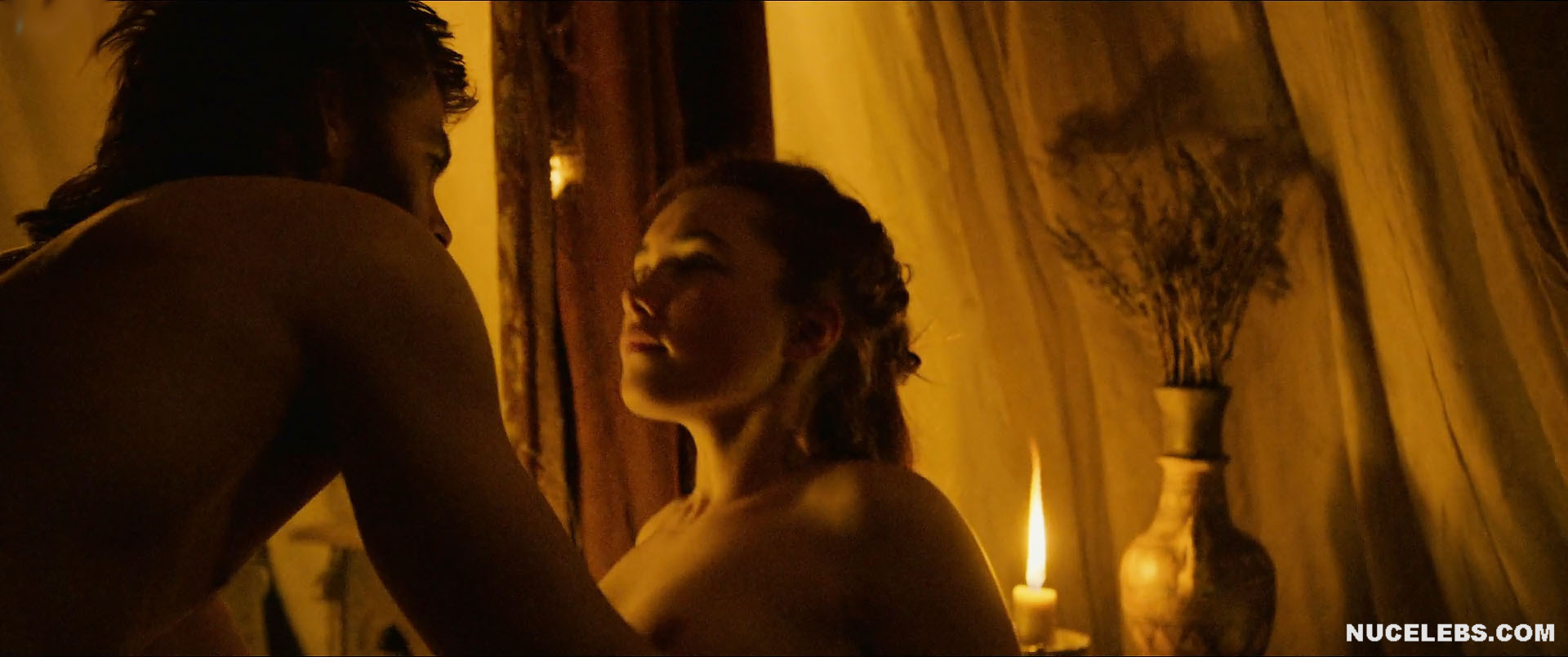Hot babe Florence Pugh will impress you with her nude boobies in Outlaw King. There, this charming English actress took part in a passionate sex scene. The girl had sex with a man by candlelight. And it’s worth noting that Florence Pugh nude juicy tits with small nipples looked very tempting in this kind of light! By the way, this beauty moaned so sweetly when the cock fucked her pussy, that it will definitely turn you on.