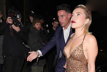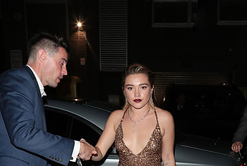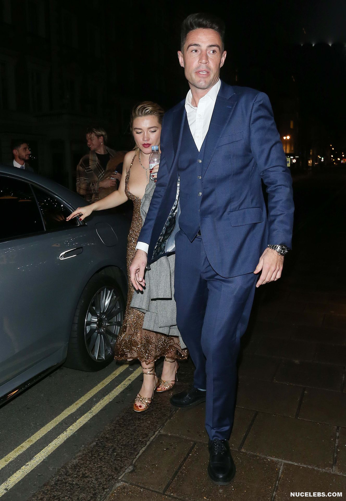 The paparazzi managed to photograph Florence Pugh nude boobs! So, this 27-year-old celebrity in a golden glittery dress was spotted at one of the events. And as you can see, the dress had a very low neckline. So it was pretty predictable that Florence Pugh’s nude boob with brown nipple would slip out of him at some point.