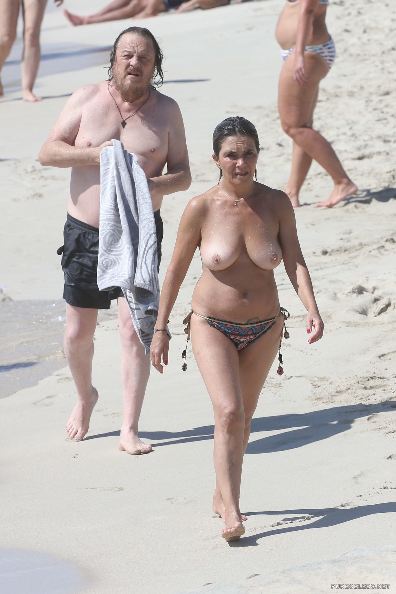 Not so long ago, the charming beauty Francesca Mozer was caught by the paparazzi during her vacation on the beach. And it is worth noting that she looked simply gorgeous, especially when you consider the fact that the brunette was wearing only small panties that perfectly emphasized her beautiful hips. But her juicy huge boobs were completely naked and it was simply impossible to look away from her hard brown nipples.