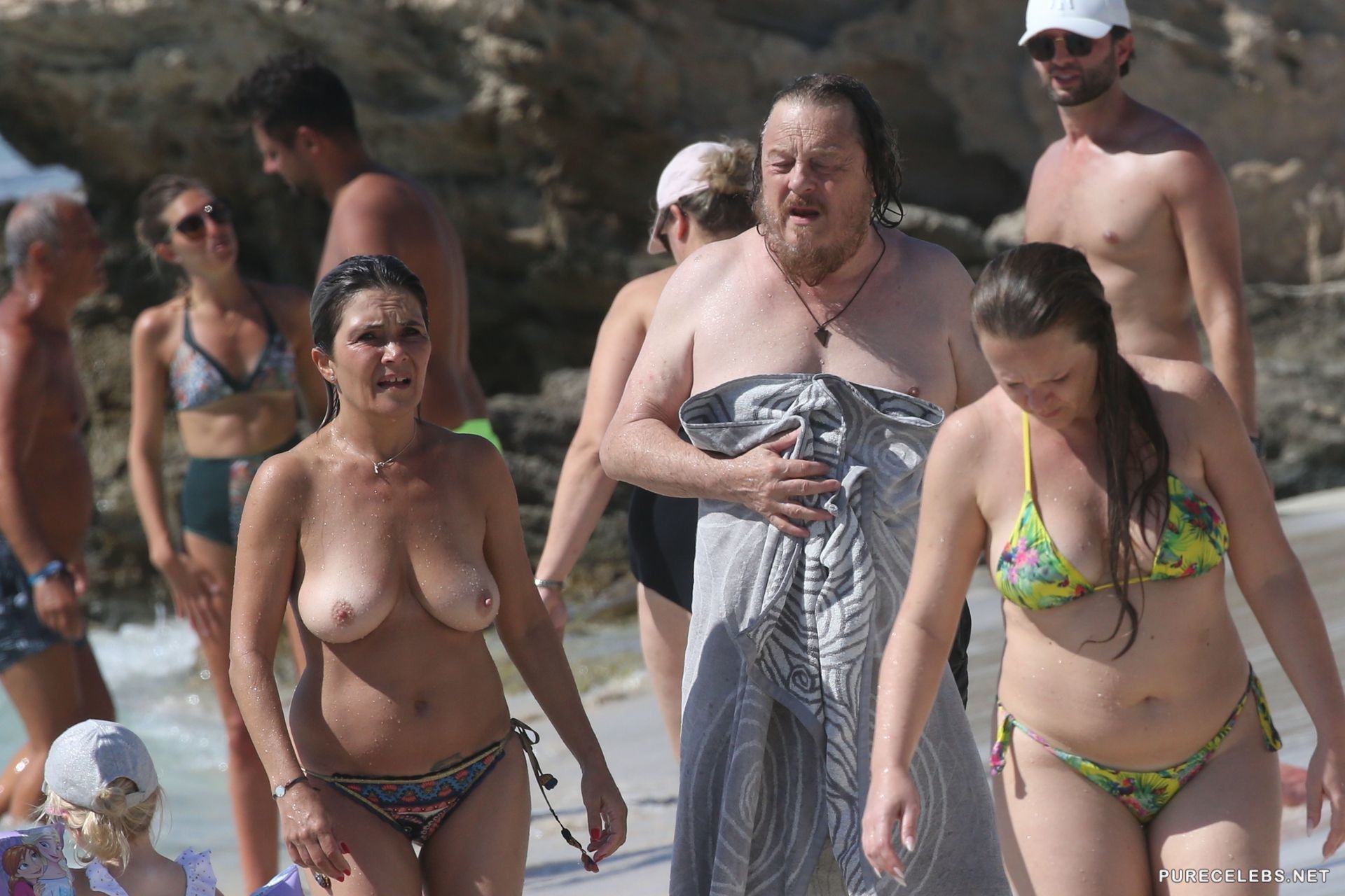 Not so long ago, the charming beauty Francesca Mozer was caught by the paparazzi during her vacation on the beach. And it is worth noting that she looked simply gorgeous, especially when you consider the fact that the brunette was wearing only small panties that perfectly emphasized her beautiful hips. But her juicy huge boobs were completely naked and it was simply impossible to look away from her hard brown nipples.