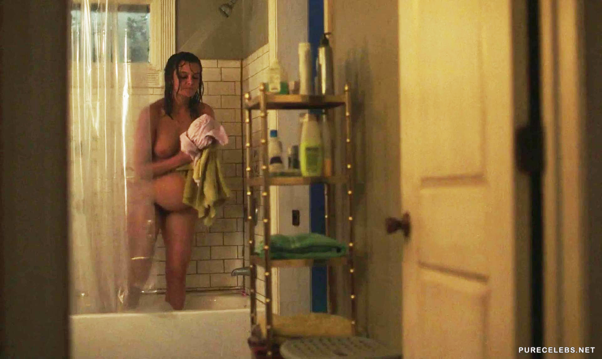 Frankie Shaw is a star of the show smilf and in this scene, she takes a shower while she is showing off her pregnant belly. There is some hot water running all over her as she is holding her large stomach. She looks cute when positioned like that and her tits seem larger than usual since they are probably filled with milk.