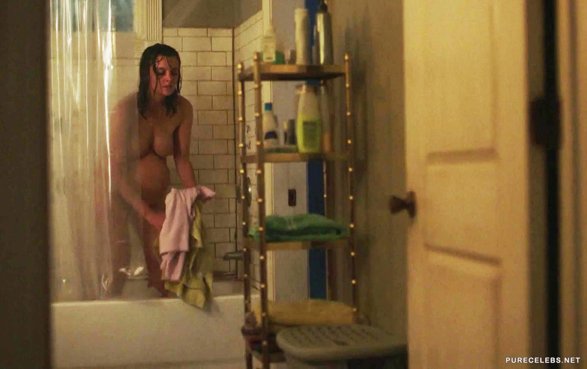 Frankie Shaw is a star of the show smilf and in this scene, she takes a shower while she is showing off her pregnant belly. There is some hot water running all over her as she is holding her large stomach. She looks cute when positioned like that and her tits seem larger than usual since they are probably filled with milk.