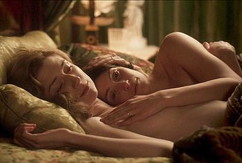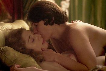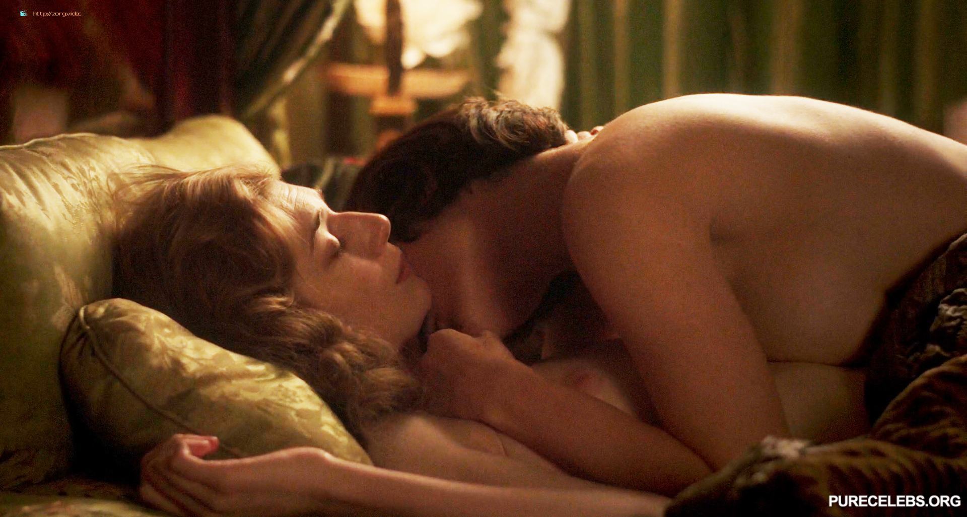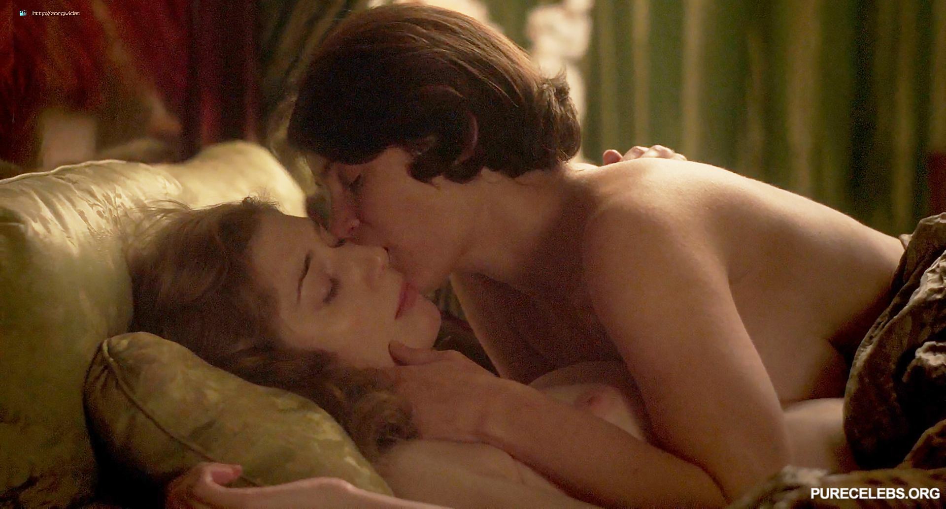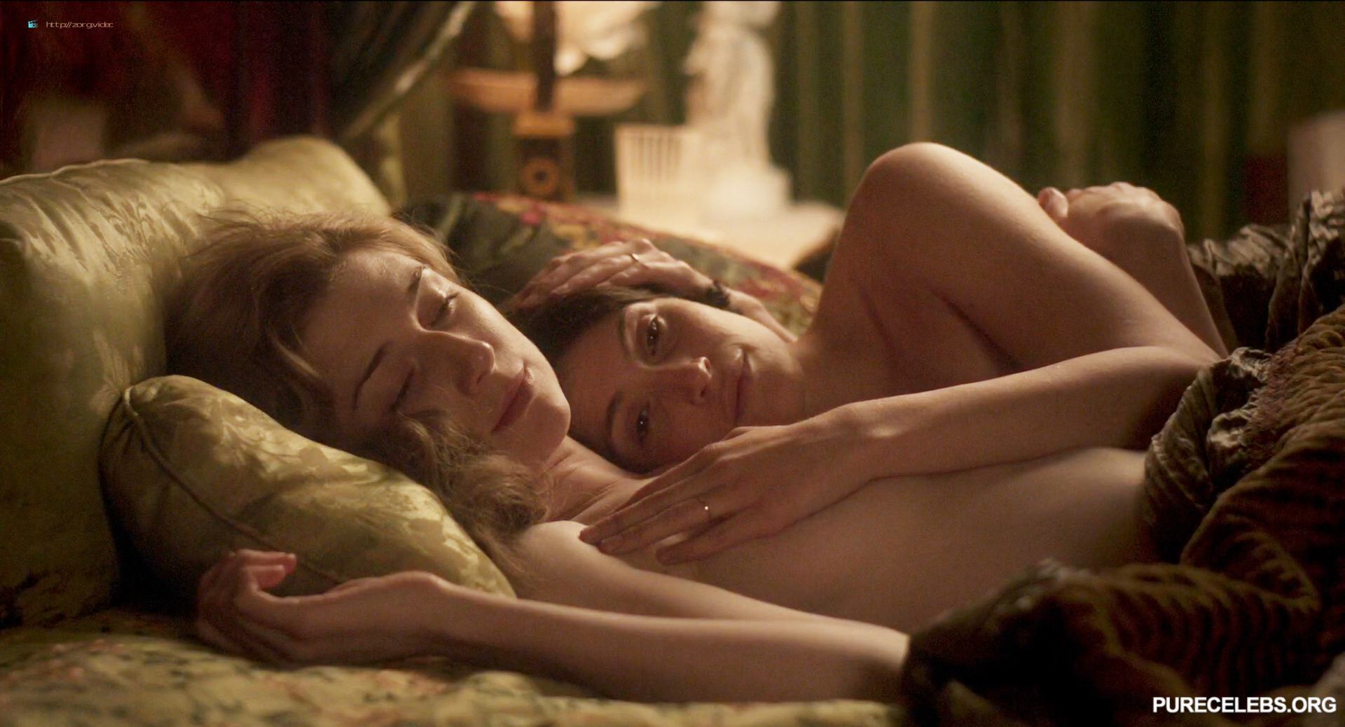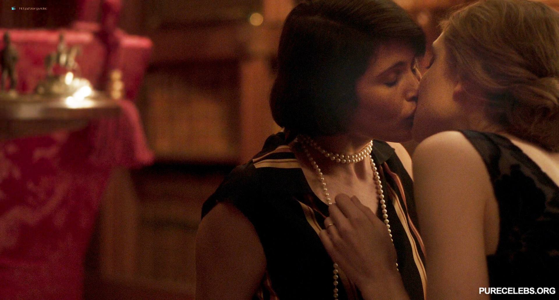 Have you watched the movie Vita & Virginia (2018)? If not, I recommend watching this. After all, there the English actress Gemma Arterton played in nude and lesbian sex scenes. This charming beauty will passionately kiss another girl. In addition, she will moan so passionately when the other girl caresses her pussy with her fingers that you can not remain indifferent! And of course Gemma Arterton’s nude boobs with hard nipples will also appear in the frame for your viewing pleasure.