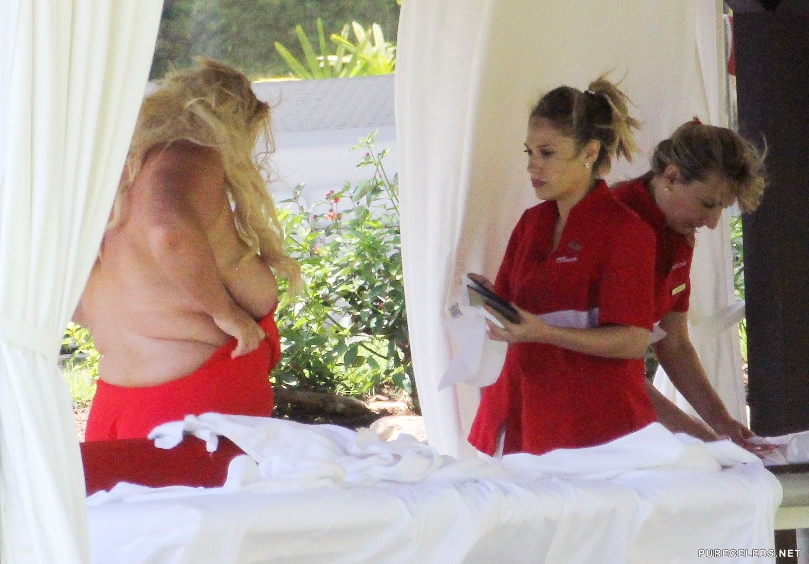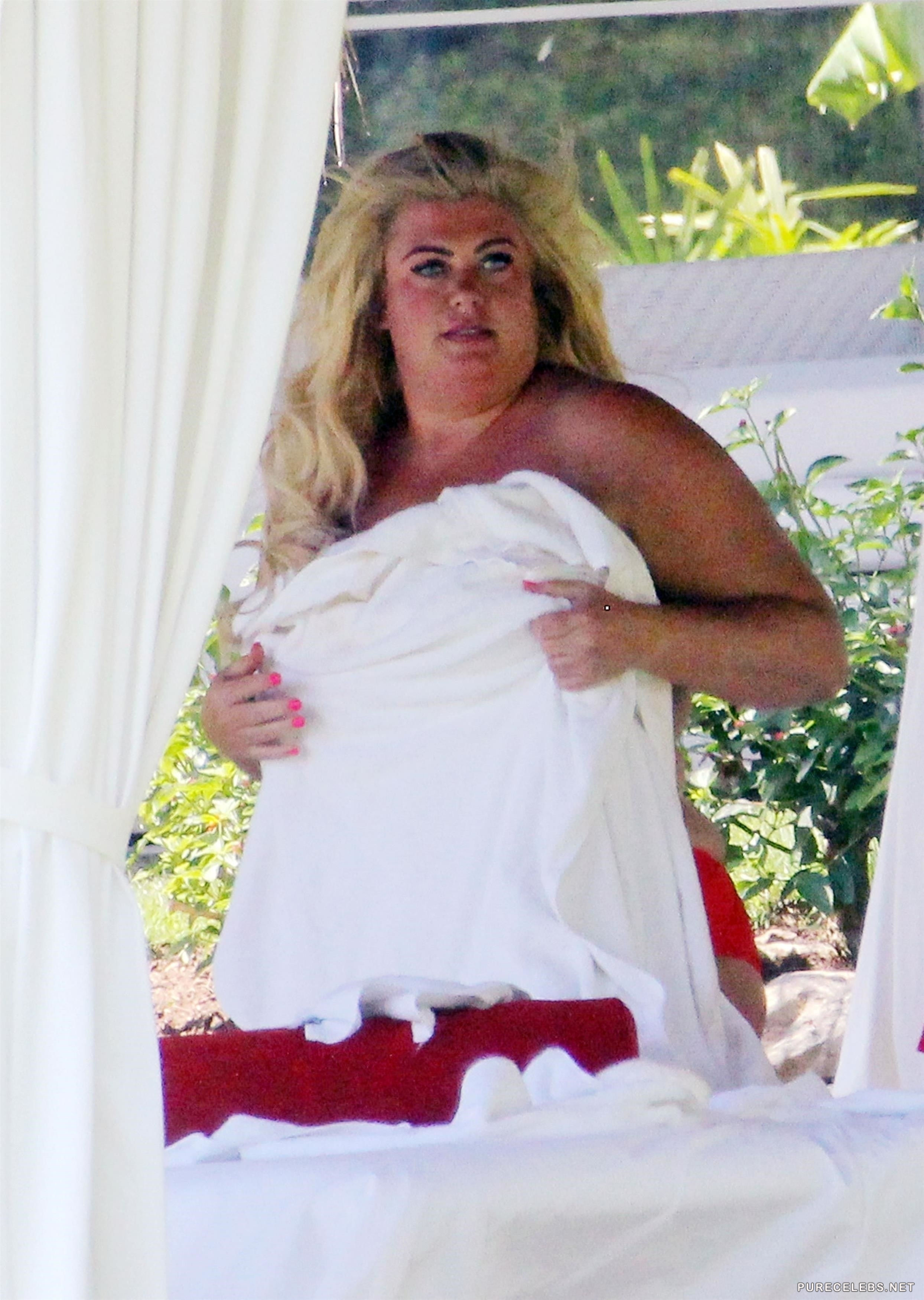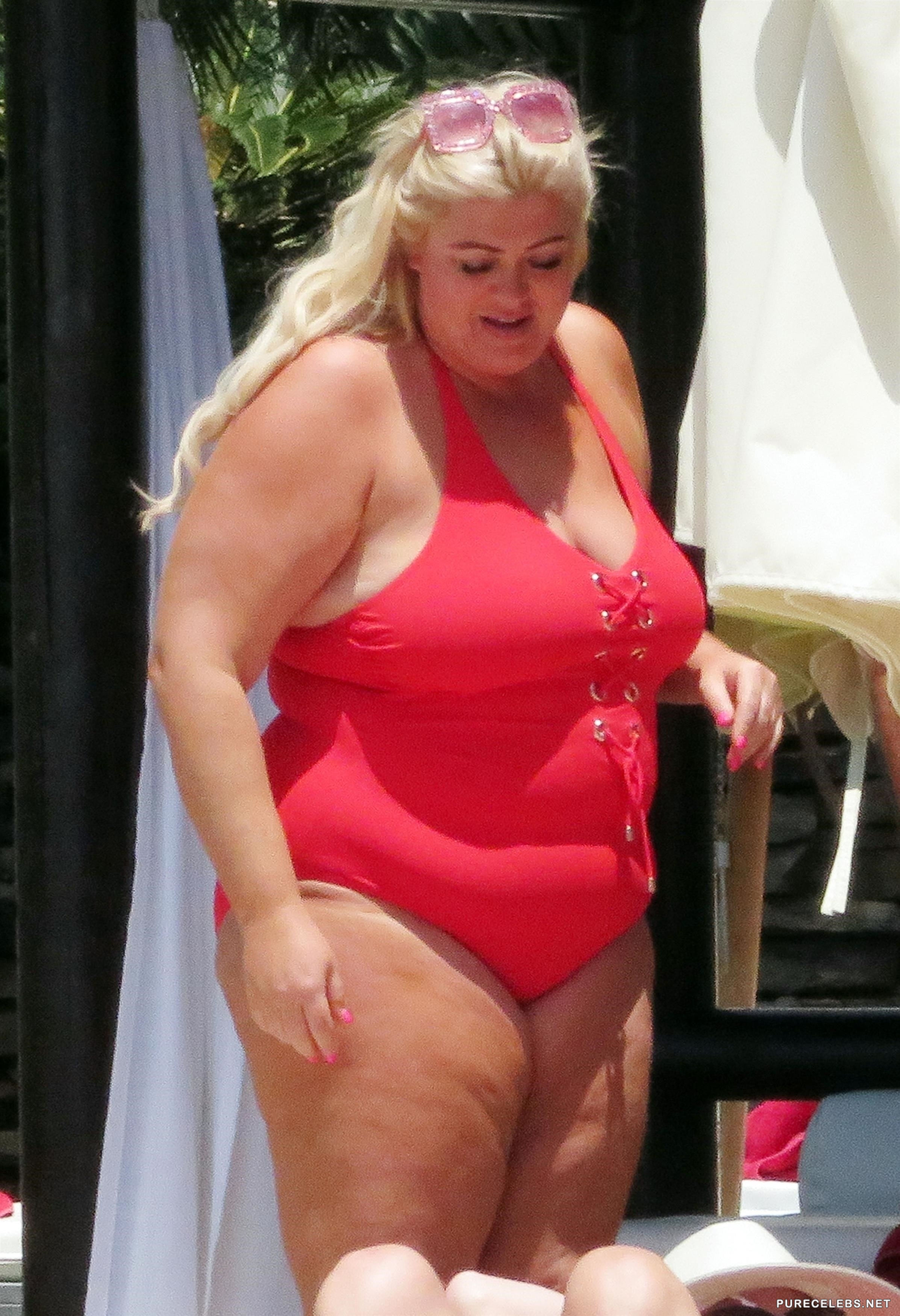 This post is dedicated to people with a BBW fetish, BBW stands for Big Beautiful Women btw. Gemma Collins is one of our favorite big women. It’s hard to resist her curvy body and that’s a fact. This famous English reality star is always eager to flash her large boobies. Check out this amazing nude photo session featuring your favorite blonde fattie, her red swimsuit is just fantastic.