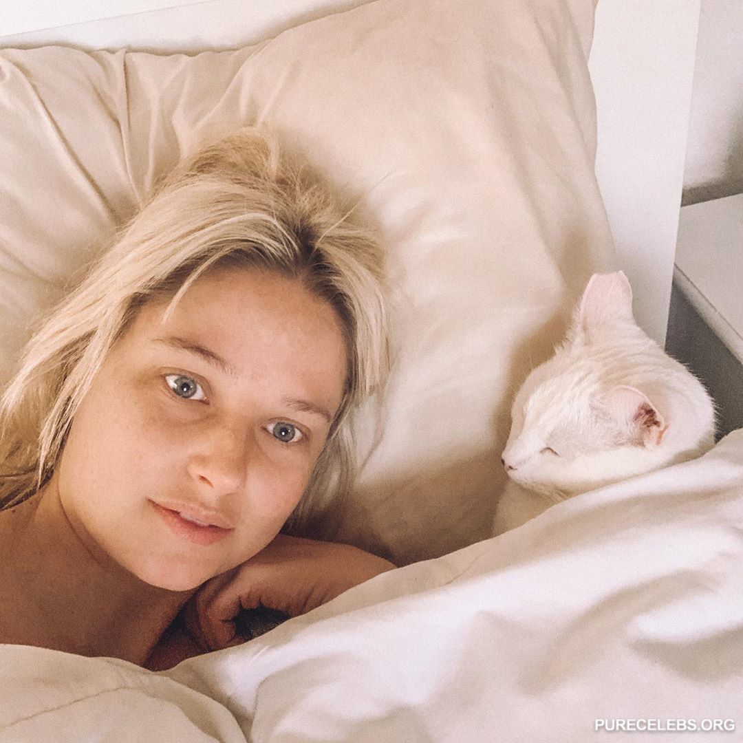 You will dream of the South African model Genevieve Morton after you see her nude photos. This celebrity is not shy about posing in front of the camera in lingerie and completely naked. For example, she looked amazing in black lace underwear and stockings. And her boobs were breathtaking shining through her brown transparent nightie. They were so huge and their nipples so sweet! Also, Genevieve Morton made a selfie nude. True, the girl covered her bare boobs with her hand a little, but it still looked very sexy.