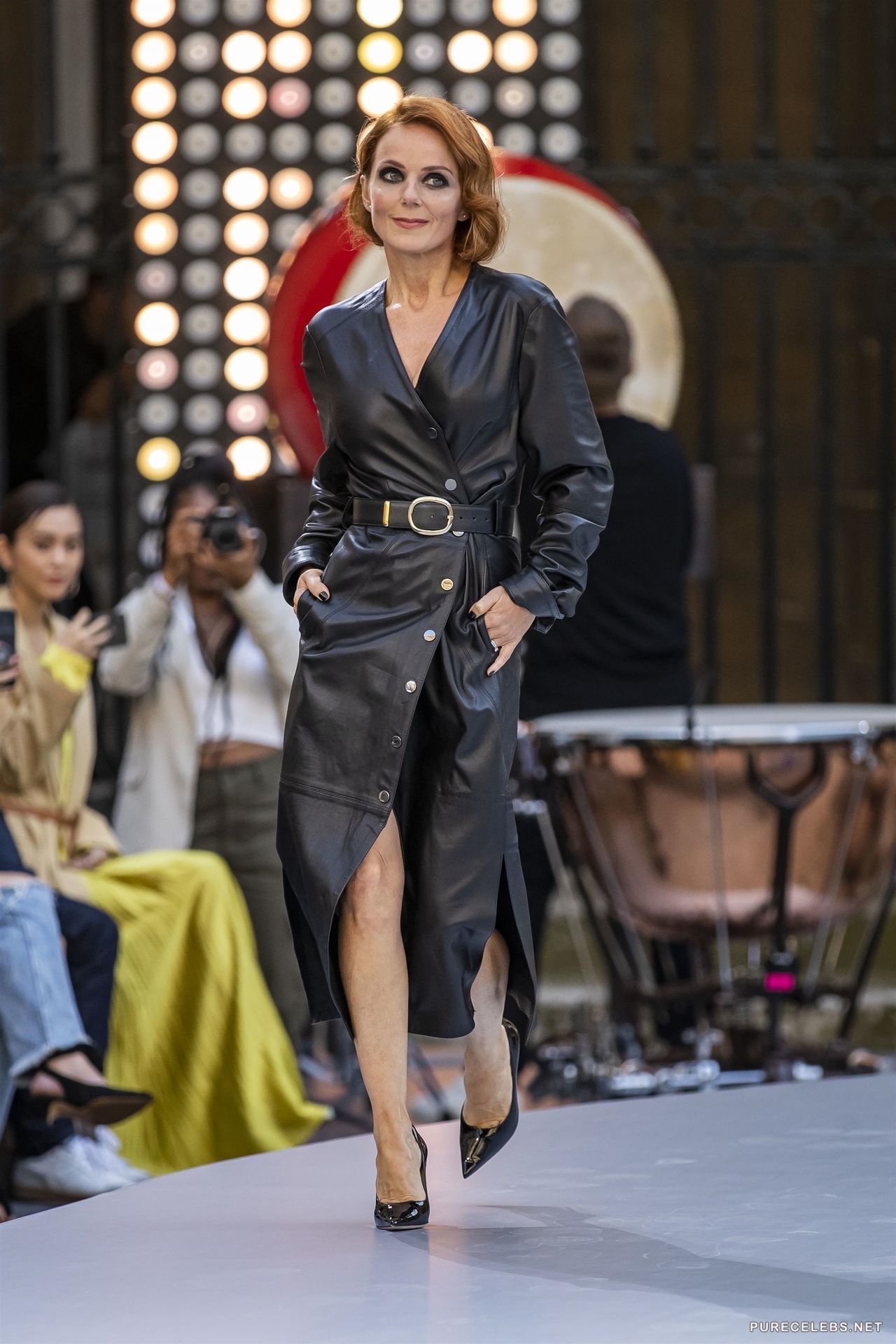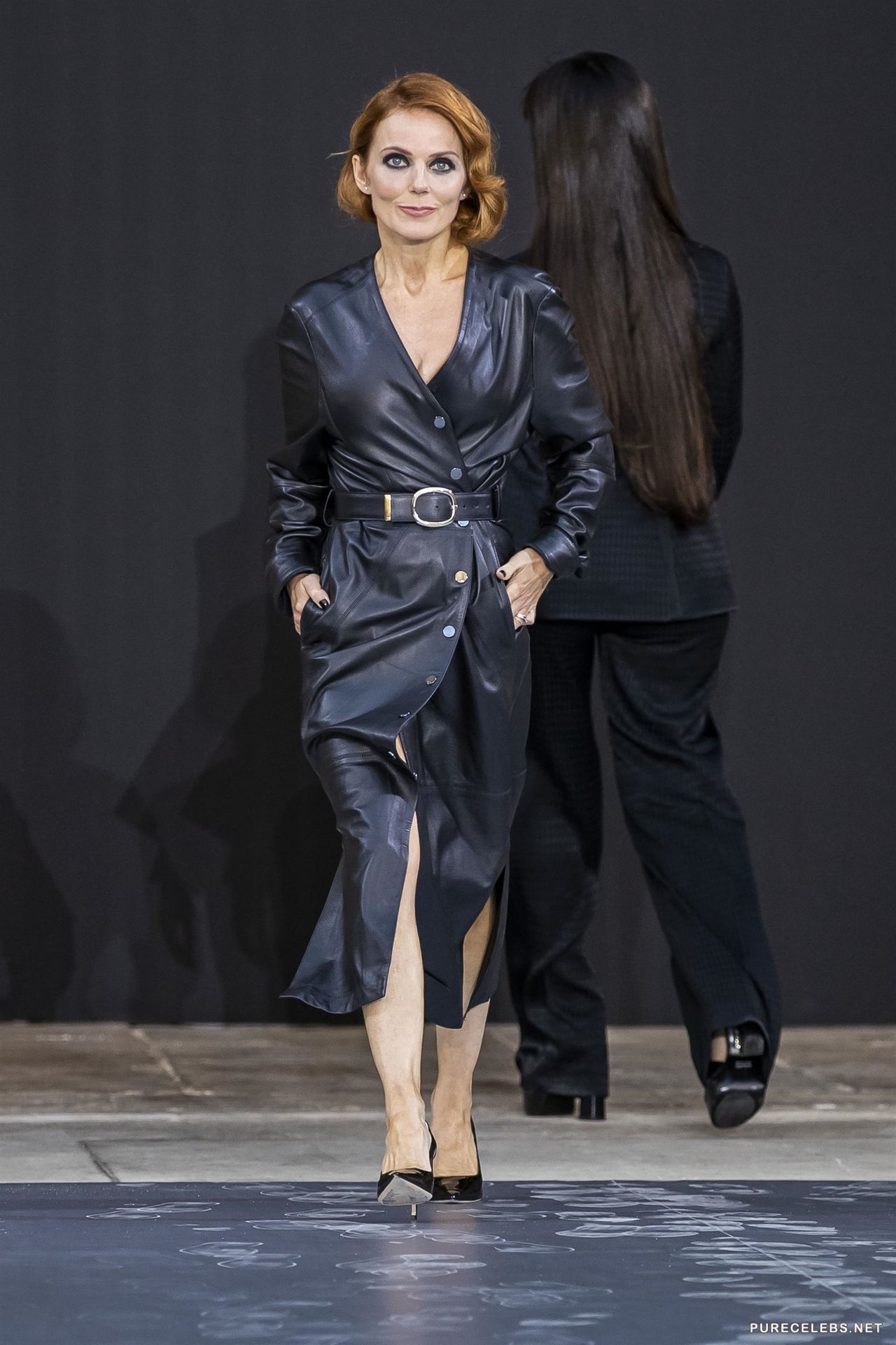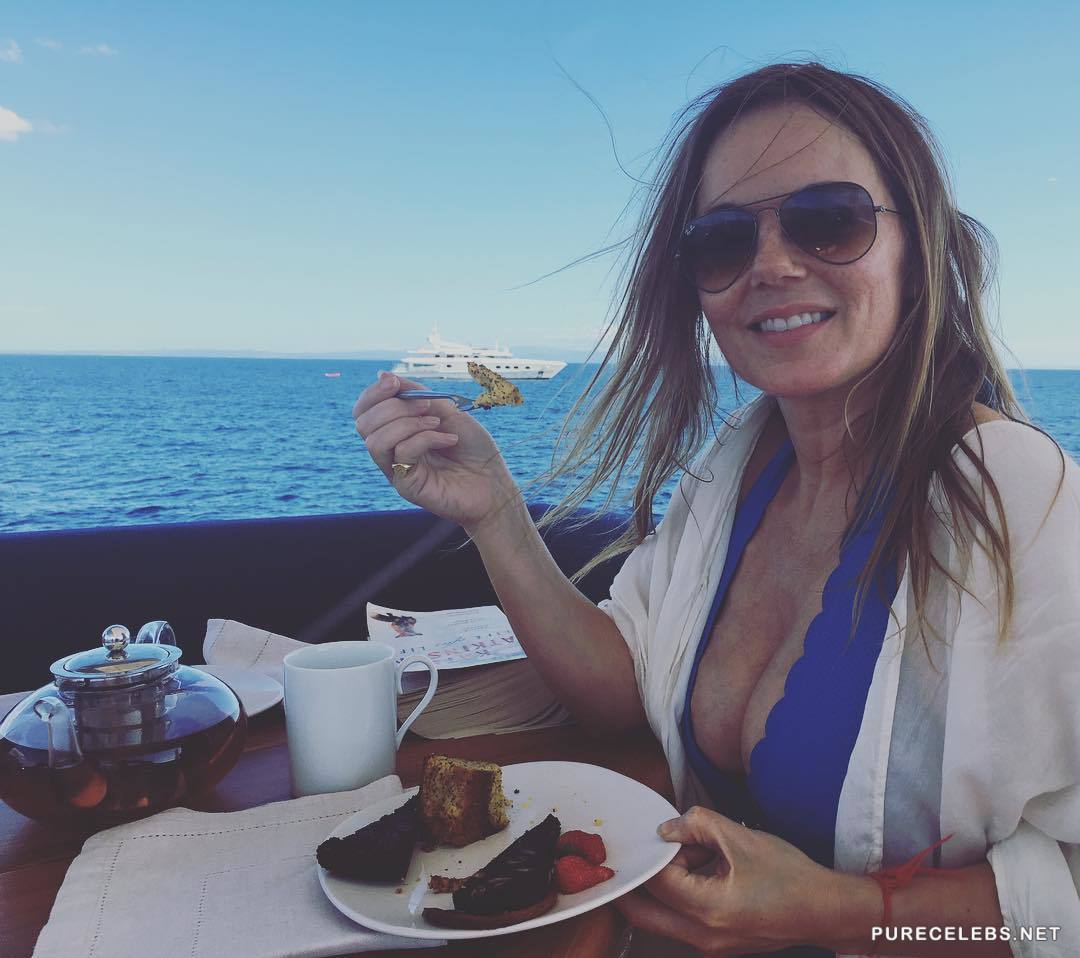 English singer Geri Halliwell loves to be in the spotlight and often attends various events. Recently, the red-haired beauty was wearing a long leather dress with a belt that was very suitable for her. It is worth noting that the dress was tight-fitting, and everyone could see her wonderful boobs with poking nipples through it. This celebrity has awesome boobs, which you can see by looking at her photos in a bikini!