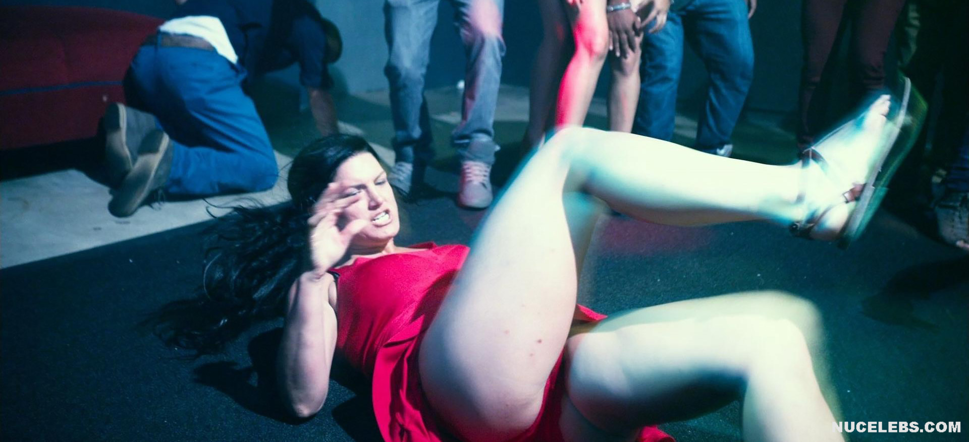 his American actress flashed her red panties in the thriller In the Blood (2014). There she arranged a bloody showdown with a girl right in the middle of a disco. Gina Carano in a short dress rolled on the floor, flaunting her almost nude ass in red panties. Also, this girl took part in erotic scenes. You can also see her bare buttocks when she pee in the toilet.