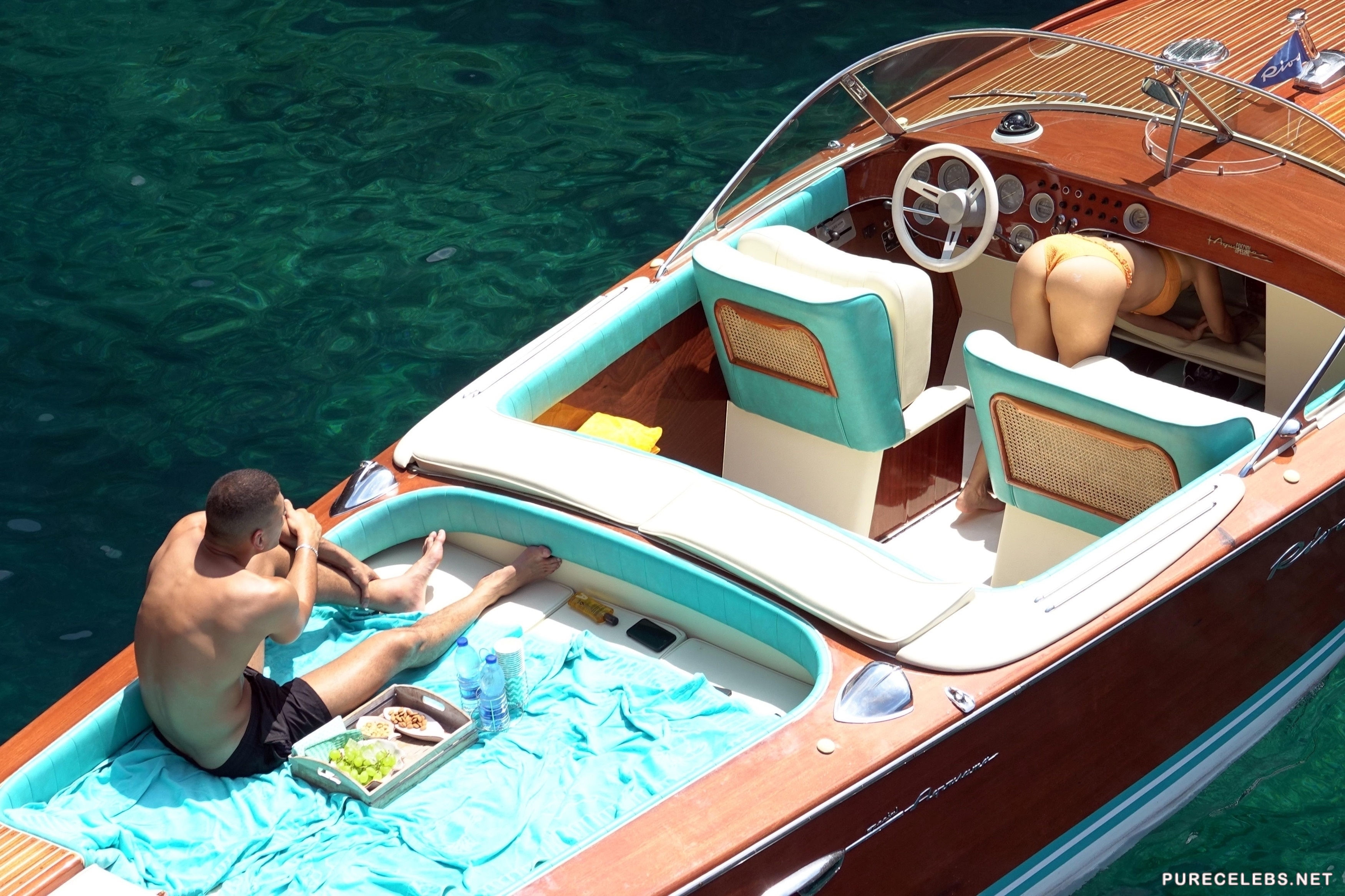 Reality star flashes her ass on the boat while she is with her current boyfriend. Kourtney Kardashian needs to get some tan on her butt cheeks since she knows guys always stare at her behind, and she needs to keep it uncovered to keep the attention on her. She knows that she does not have any other skills and that beauty is only temporary, so she needs to milk this as much as possible.