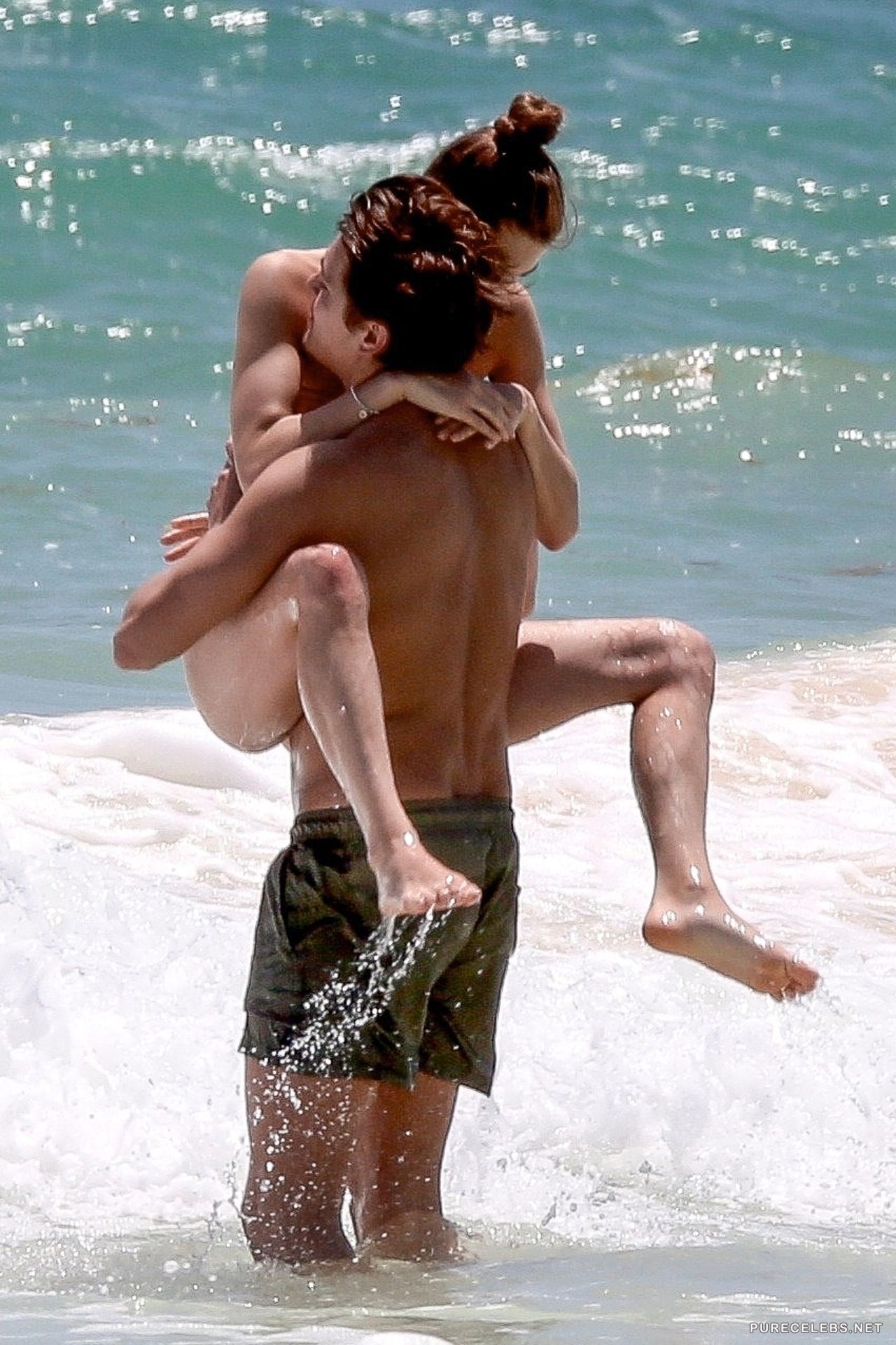 Model Grace Elizabeth had a lot of fun with her boyfriend while their rest on the beach. Stunning celebrity was wearing a small pink bikini that perfectly emphasized her gorgeous and wonderful ass and showed her toned body. First, a couple was playing in the water and then they started to hug and Grace knocked her boyfriend right into the sea. Really, it’s impossible to resist such a hot sexy babe!