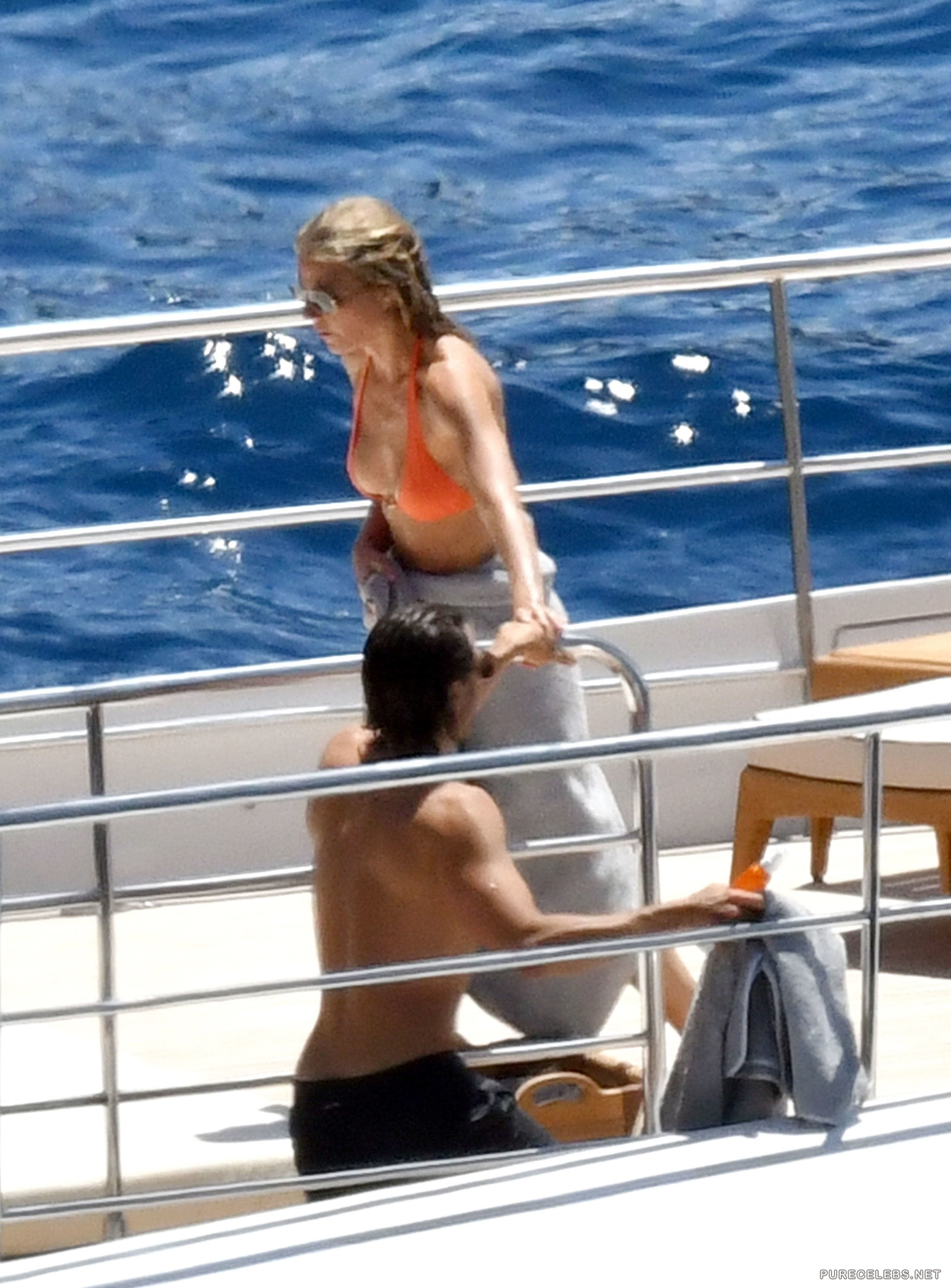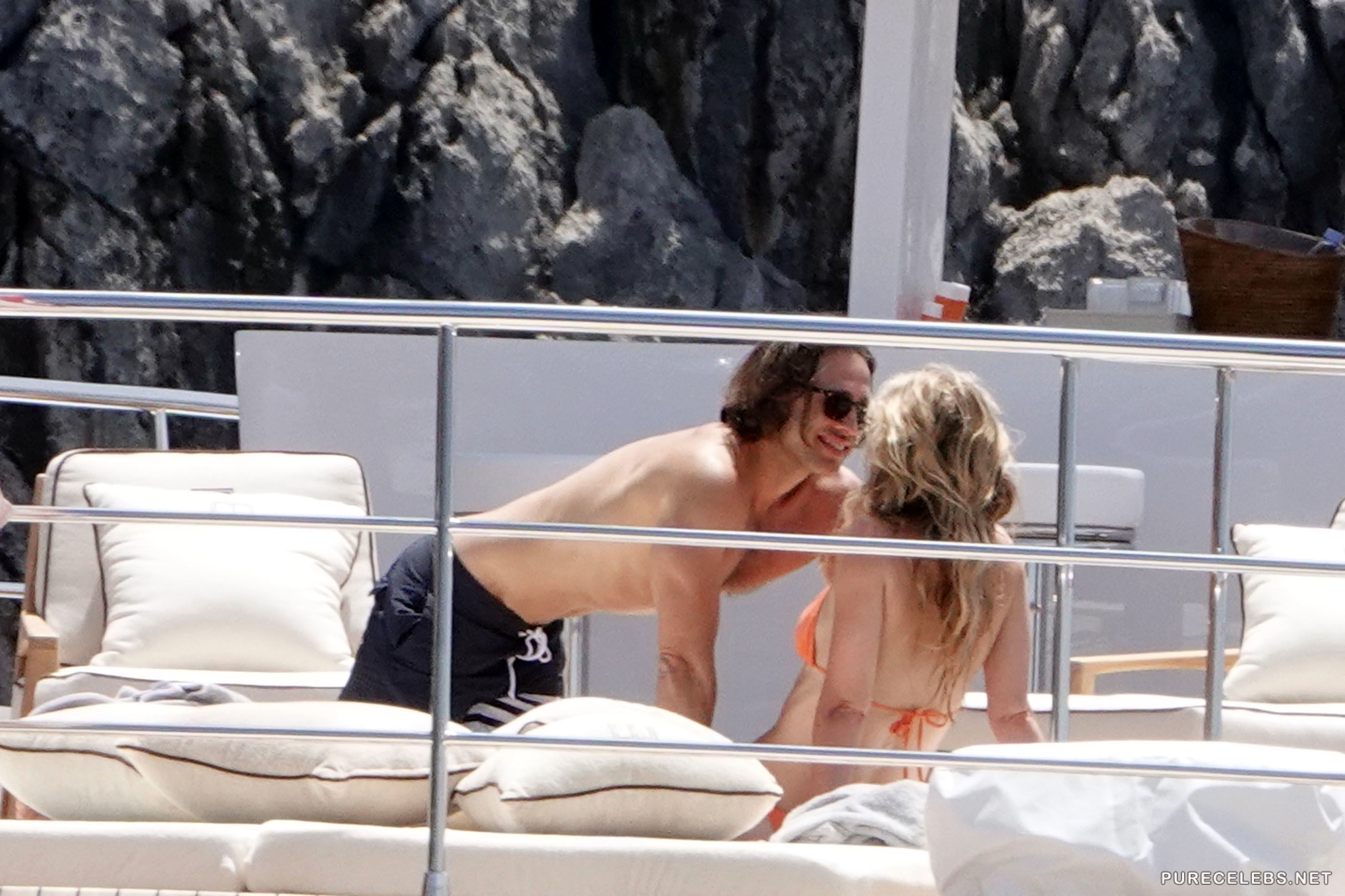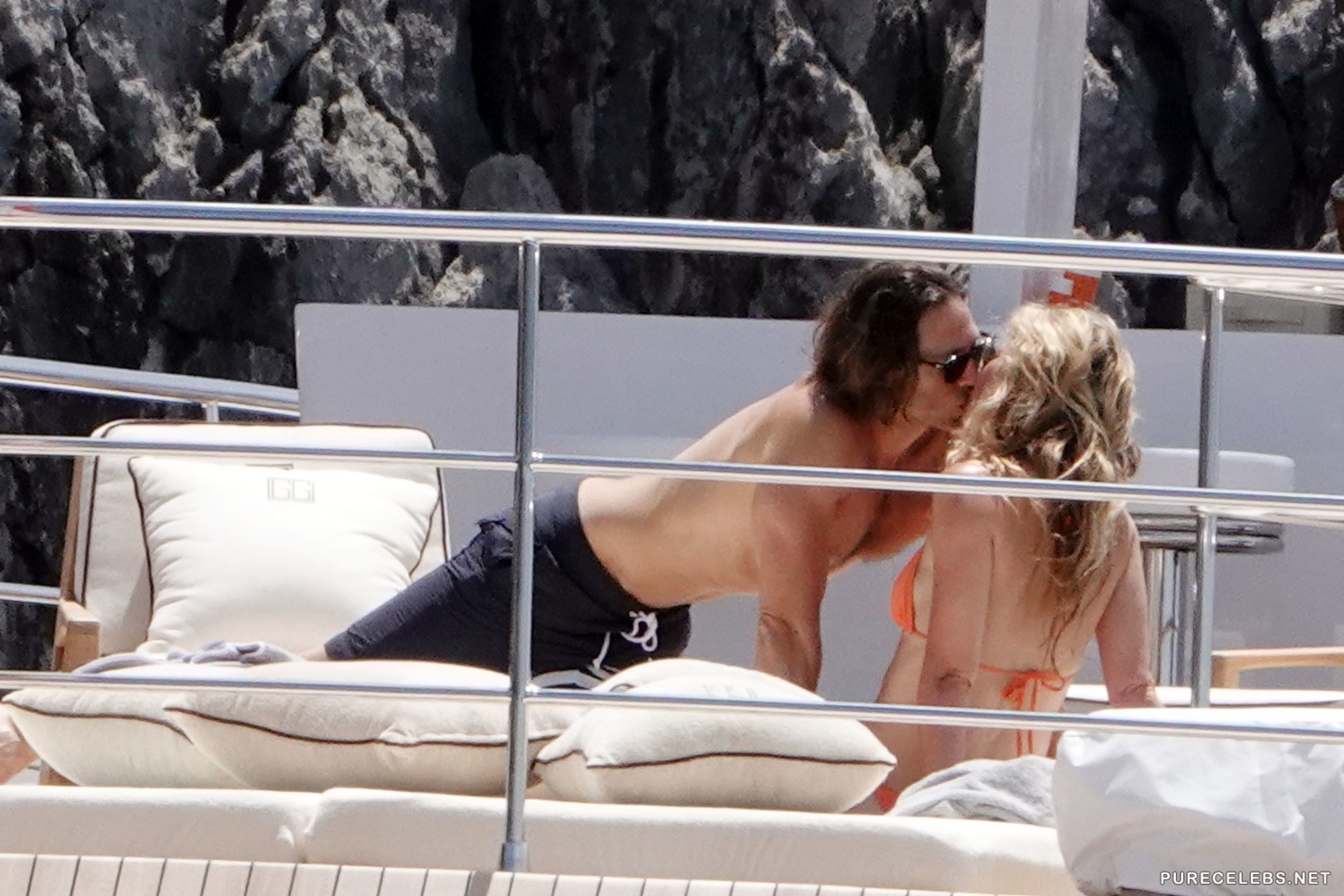 Gwyneth Paltrow was seen recently enjoying on a yacht, wearing a tiny orange bikini and kissing a guy who was there with her. This great looking American actress and business woman looks better than ever and obviously knows when to take a break from everything and just enjoy the life. One of the photos has a close- up of a cameltoe while other are focused on her boobs and ass.