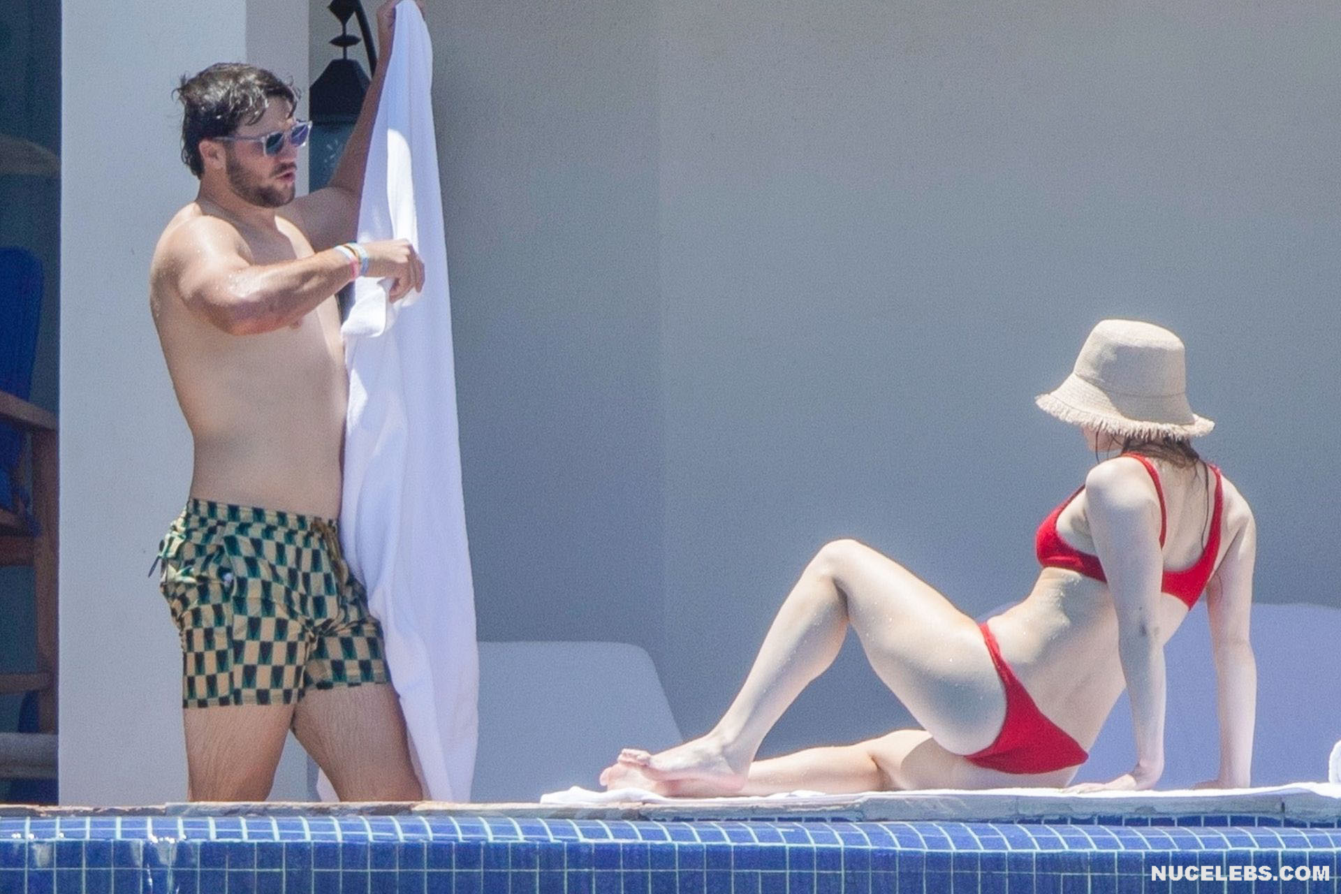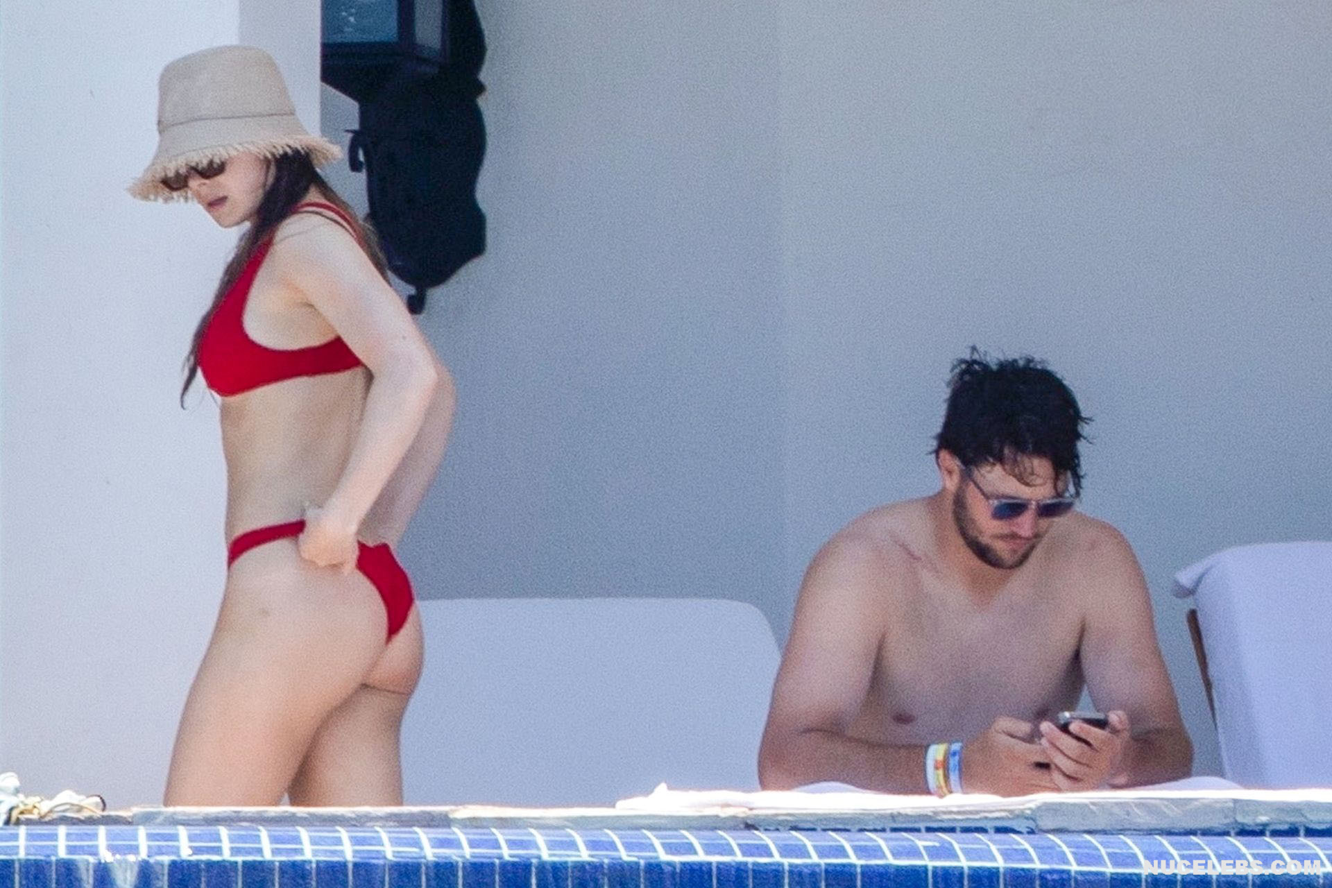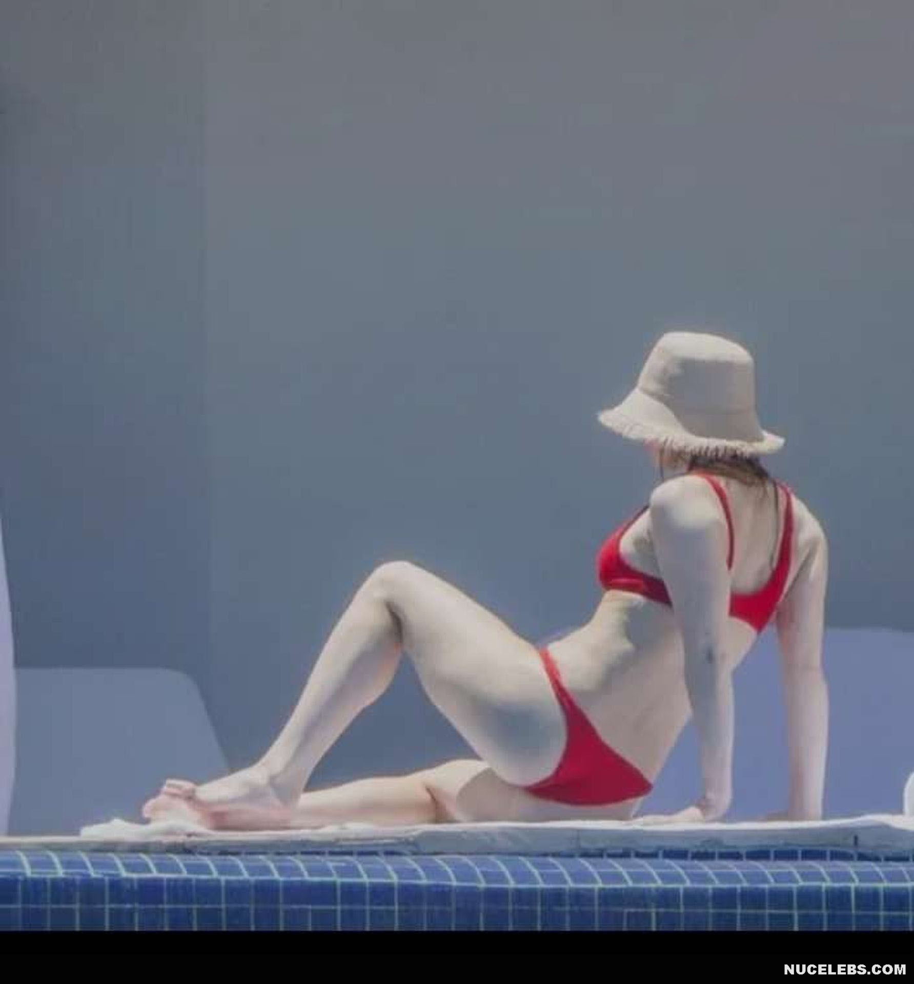 Paparazzi caught Hailee Steinfeld in a charming red bikini during her vacation. The 26-year-old actress was sunbathing and enjoying a swim in the pool, resulting in stunning shots of her in a wet bikini. When Hailee Steinfeld leaned over, her juicy breasts nearly slipped completely out of the wet bra. Equally alluring was her wet booty, which she willingly exposed to the sun’s rays.