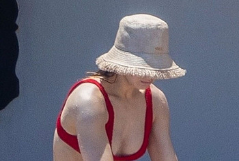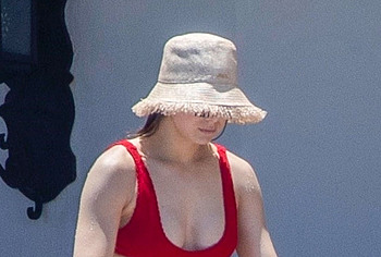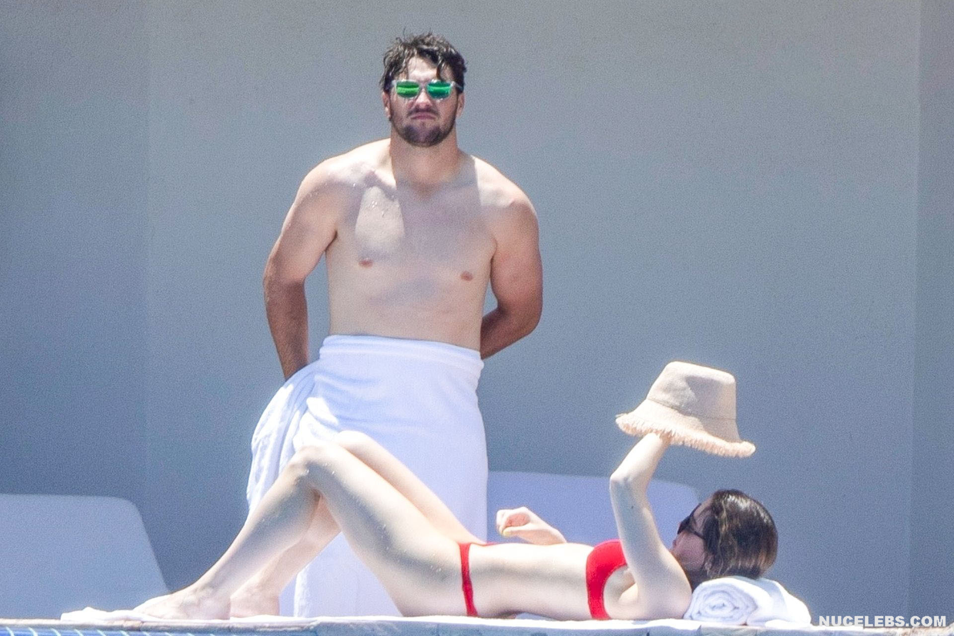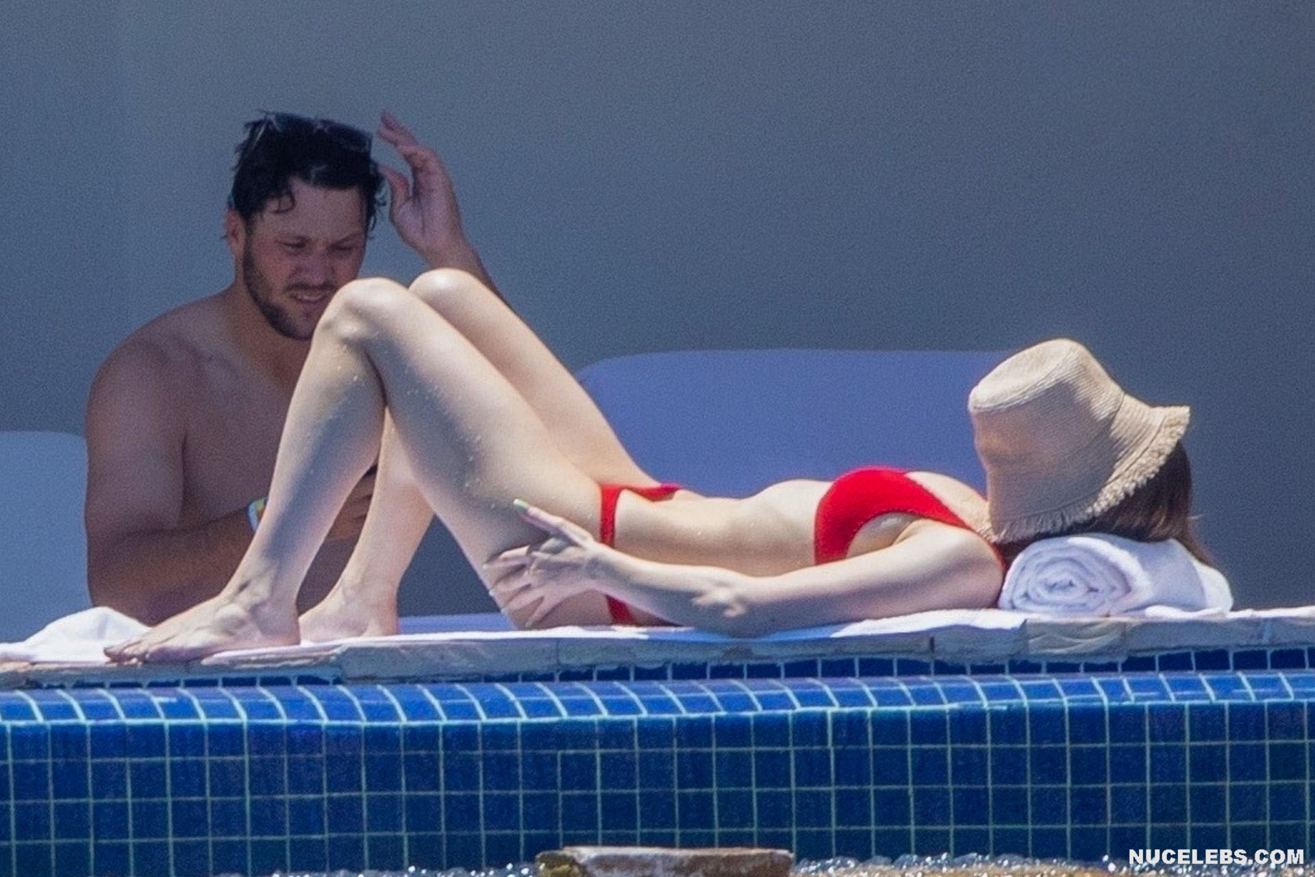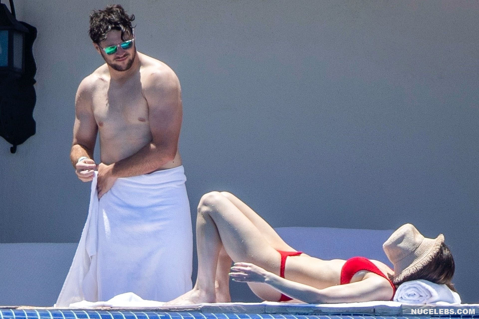 Paparazzi caught Hailee Steinfeld in a charming red bikini during her vacation. The 26-year-old actress was sunbathing and enjoying a swim in the pool, resulting in stunning shots of her in a wet bikini. When Hailee Steinfeld leaned over, her juicy breasts nearly slipped completely out of the wet bra. Equally alluring was her wet booty, which she willingly exposed to the sun’s rays.
