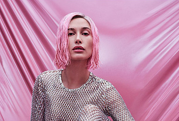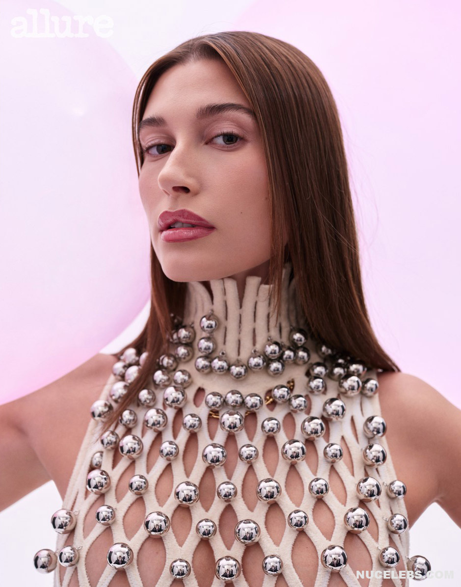 Hailey Bieber showed off her almost nude butt in black panties with white polka dots while standing on the beach. Also, this American model wore a blue striped sweater, and high white boots on her slender legs. And in another photo, Hailey Bieber showed off her nude tits with brown nipples, in a silver mesh jumpsuit, posing against a pink background. This TV star often appears on the pages of magazines in very seductive outfits that emphasize the dignity of her figure.