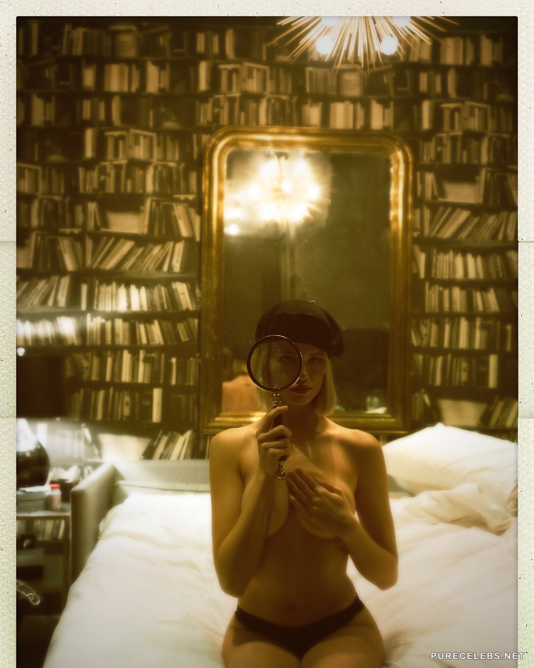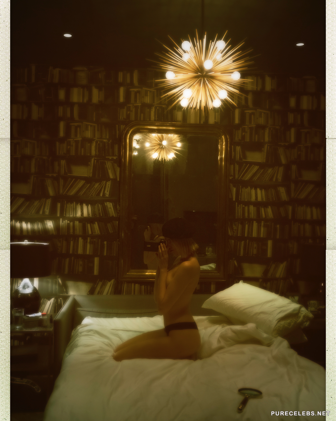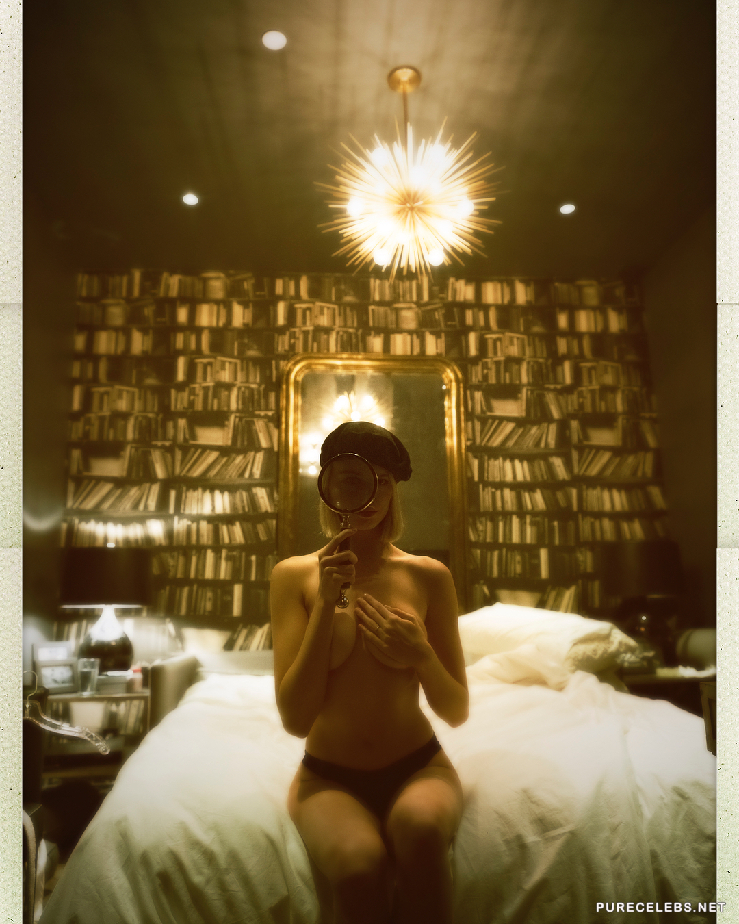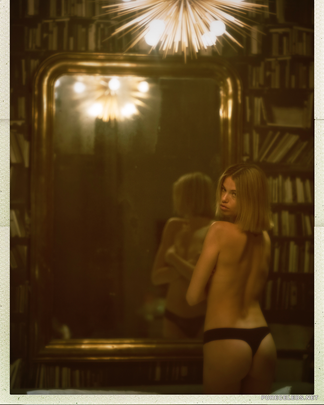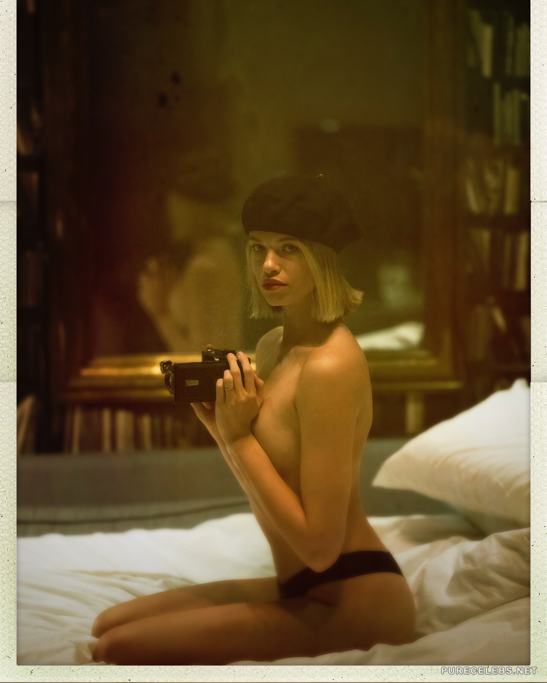 23 year old American model Hailey Clauson is doing her best to make a name for herself in the modeling industry, and with the help of her awesome body she is more than successful. This cute busty blond posed for a photo shoot inspired by Paris in the 70’s. Hailey wore only a black beret and a little black thong, letting her massive natural tits hang loose for the pleasure of her viewers.