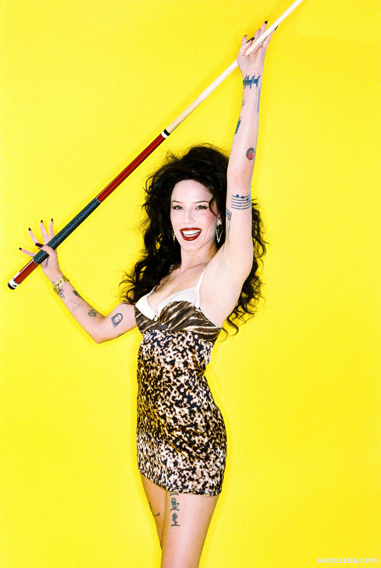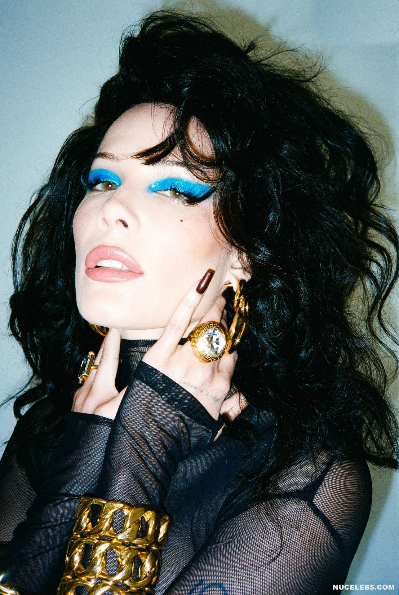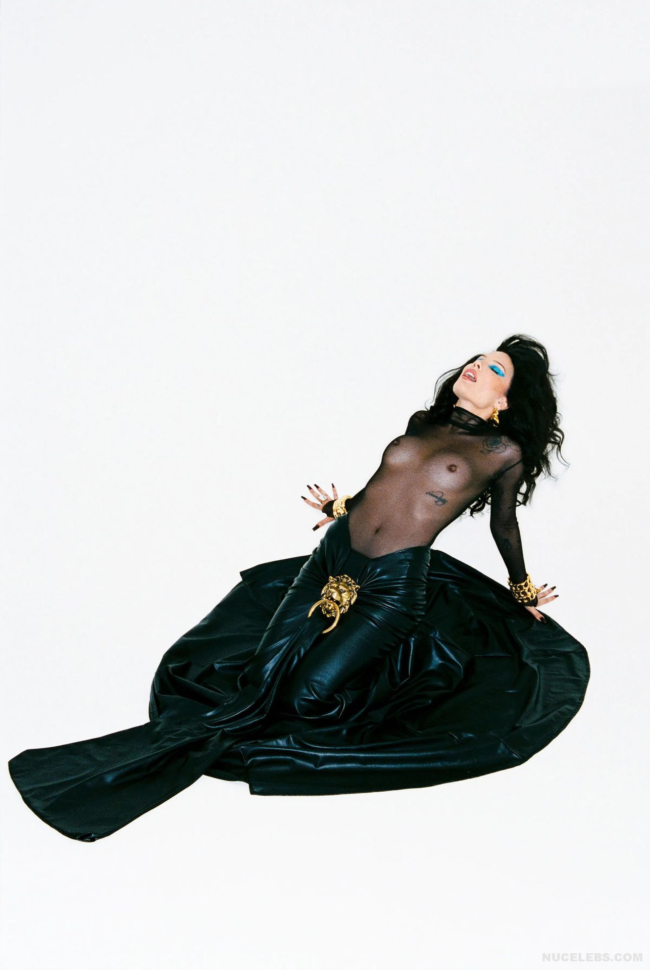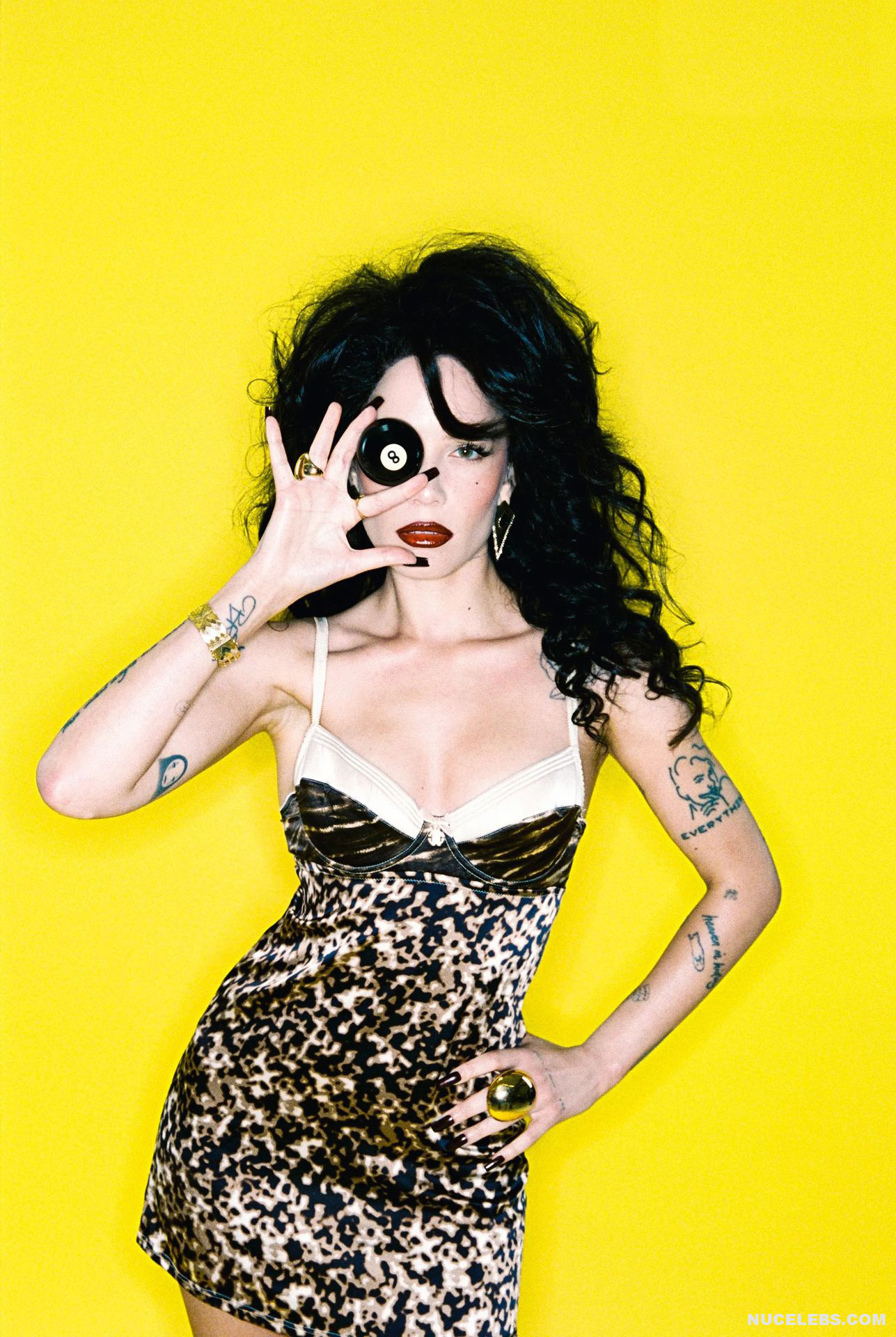 Ready to see Halsey nude boobies? This iconic woman is celebrated not just for her talent but for her remarkable physical beauty. This hottie looked stunning in a long black dress with a large gold buckle in the form of a lion’s head. The top of the dress was completely transparent, and the singer was without a bra. So Halsey nude awesome titties were perfectly visible while she took seductive poses in front of the camera.