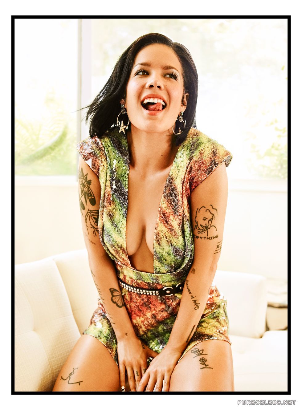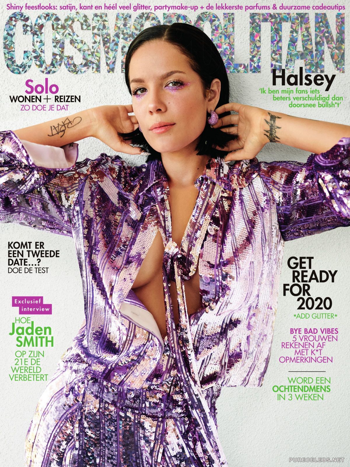 Not so long ago, the American singer Halsey took part in a very candid photo shoot for Cosmopolitan Netherlands December 2019 Issue. This charming brunette was happy to pose in a short dress with a great cleavage, sticking out her tongue and licking her lips sexually. Her juicy boobs looked incredibly sexy, and seemed to be able to jump out of her dress at any time. Agree, this celebrity is very hot!