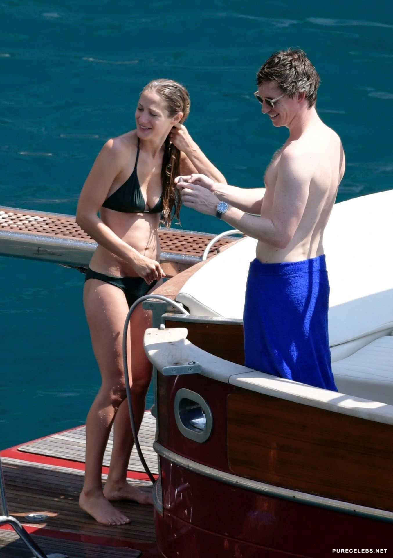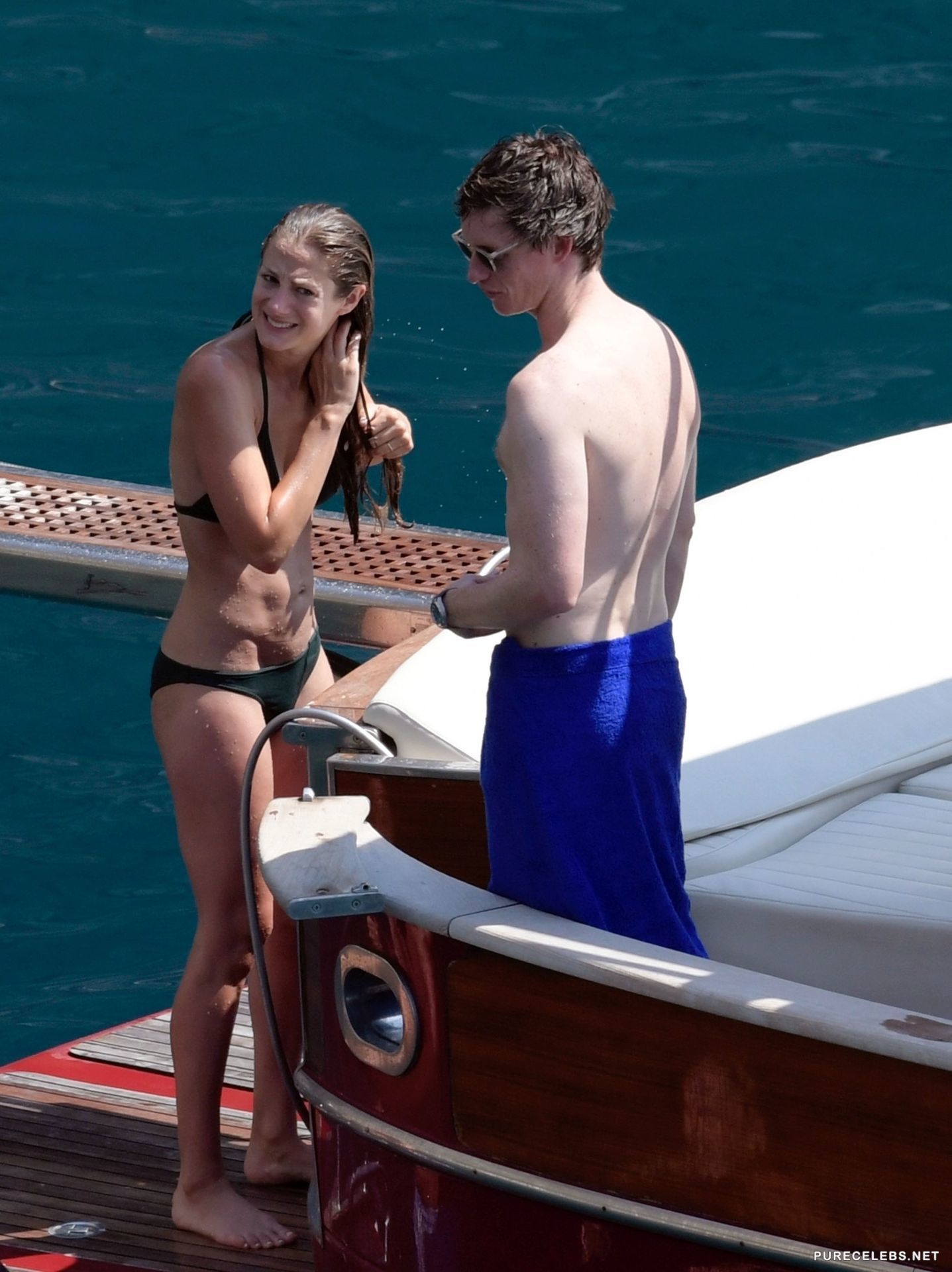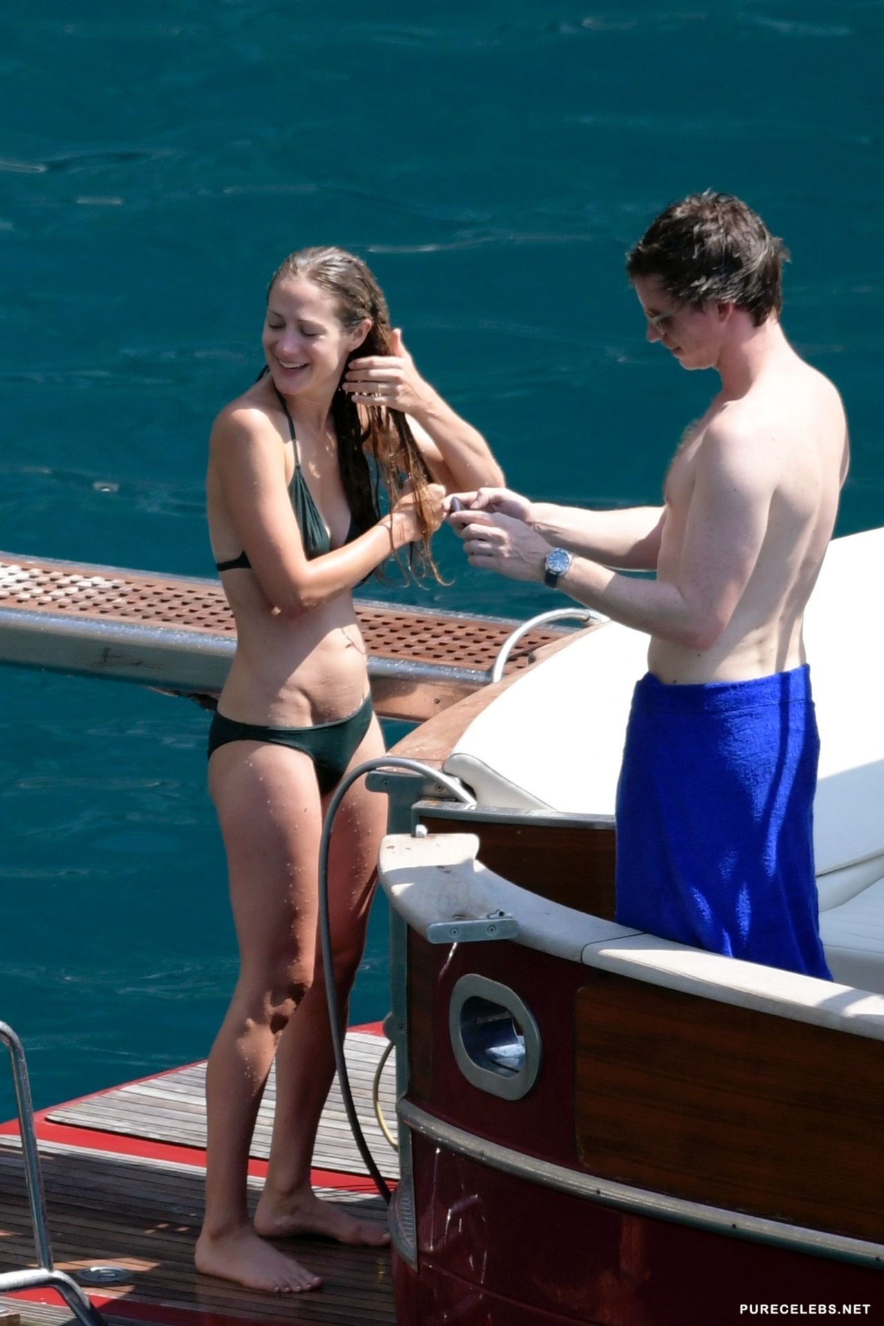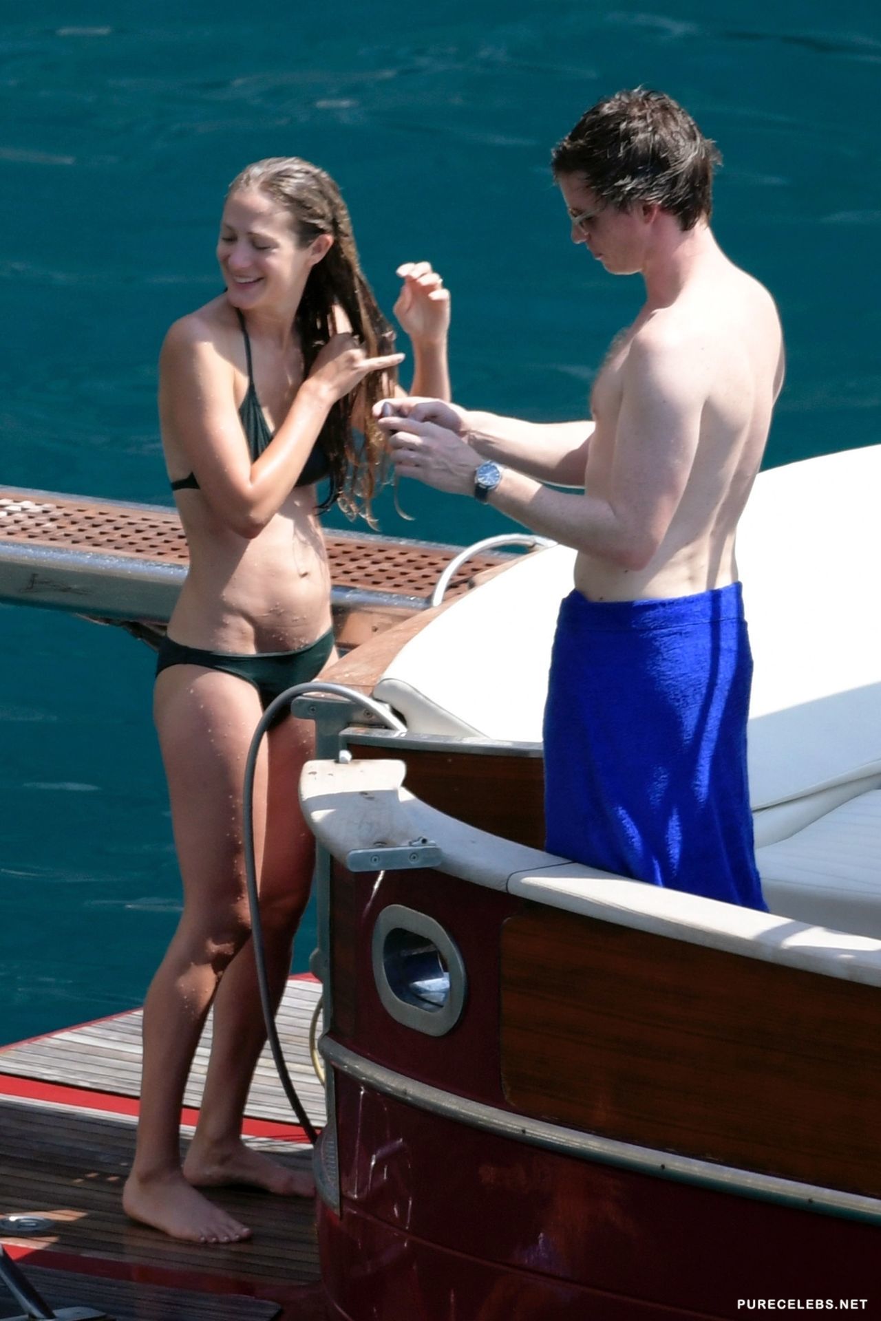 Not so long ago, Eddie Redmayne’s wife Hannah Bagshawe was spotted on a yacht and immediately photographed by paparazzi. The celebrity looked very seductive in a small black bikini that barely covered her slim body. When this hot babe came out of the water, her wet titties and buttocks were simply breathtaking! And when she watered herself from the shower, then it was impossible to resist such a beauty!