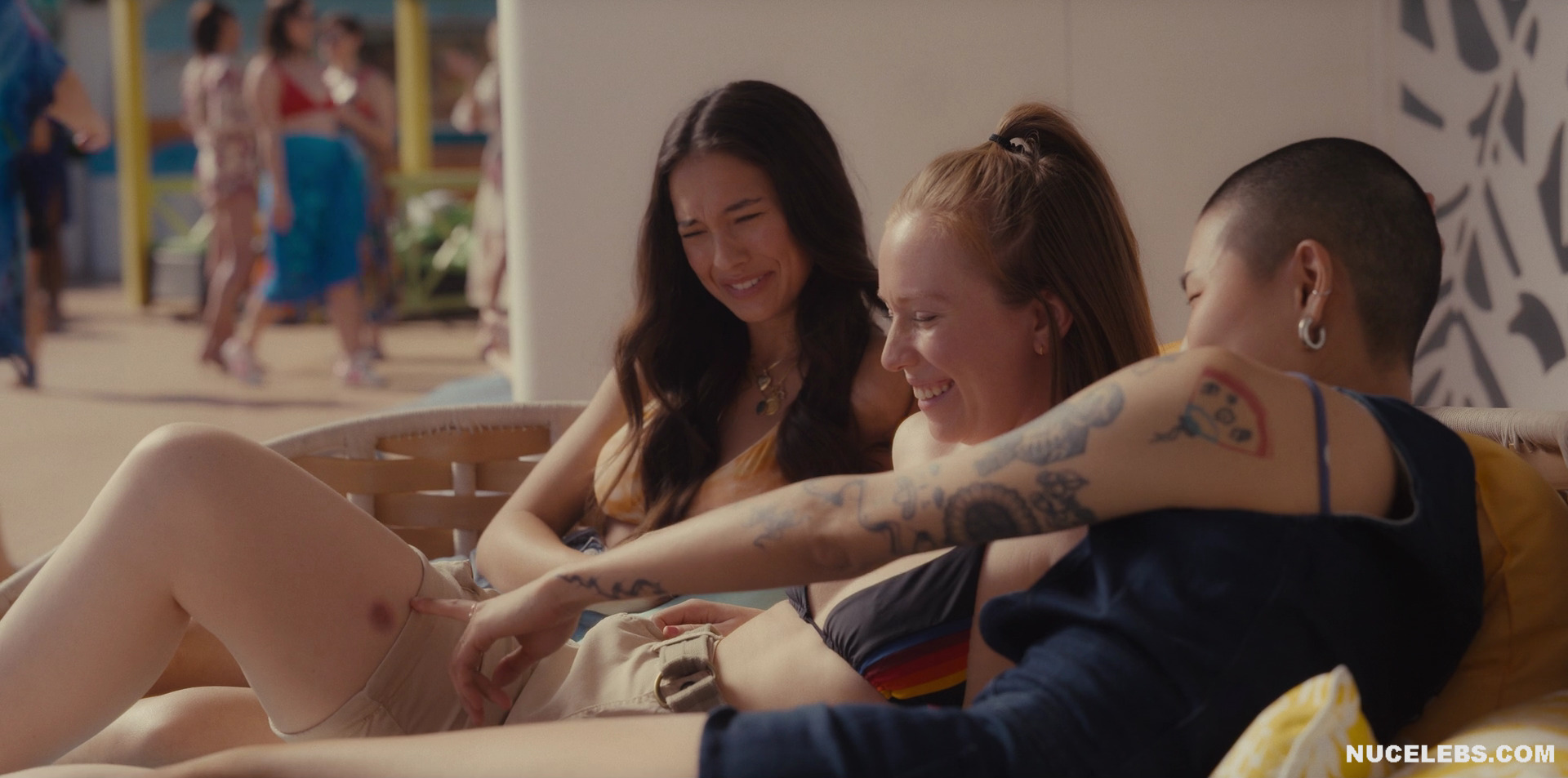 Hannah Einbinder decided not to hide completely her nude tits in Hacks. There, this American actress was pacing around the pool in a petite bikini. The skimpy black bikini barely covered her naughty bits. And although Hannah Einbinder never appeared in this series completely nude, the lesbian scenes with her participation will excite your imagination! So, she started making out with two girls lying by the pool and it looks like everything could end up with lesbian sex right there!