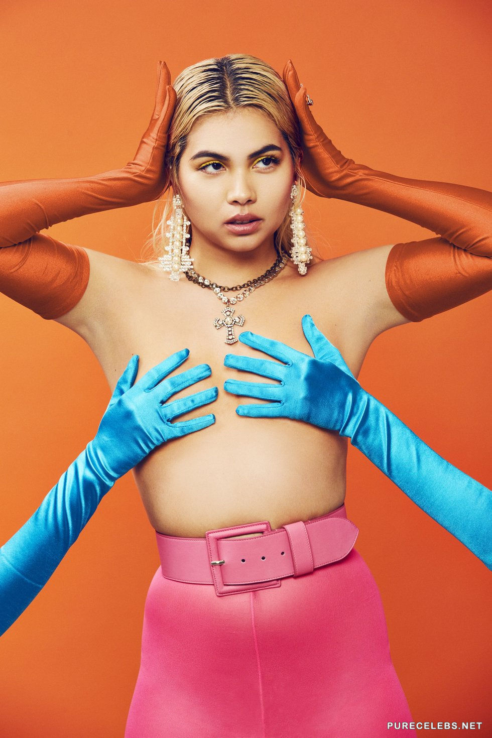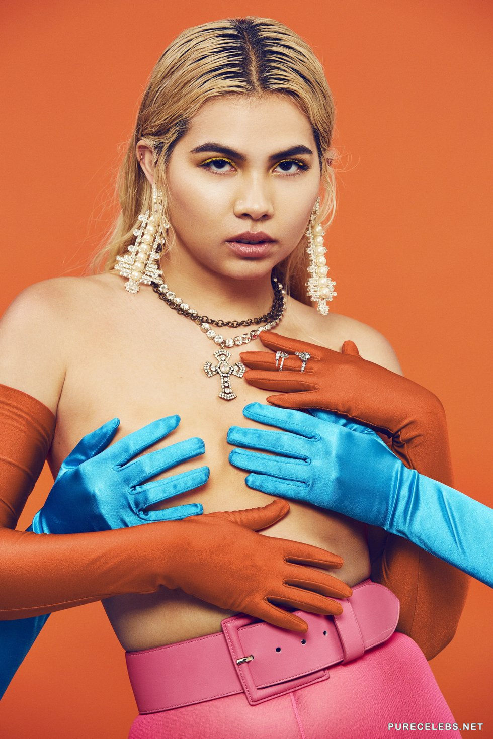 Flat and kinky blonde Hayley Kiyoko is posing for a magazine and she ends up putting on a see through top in which we can see her nipples poking through. She also puts her head next to some other chicks and she admires their asses while she lies down there from behind. She must be eager to plant her lips between their legs and have fun.