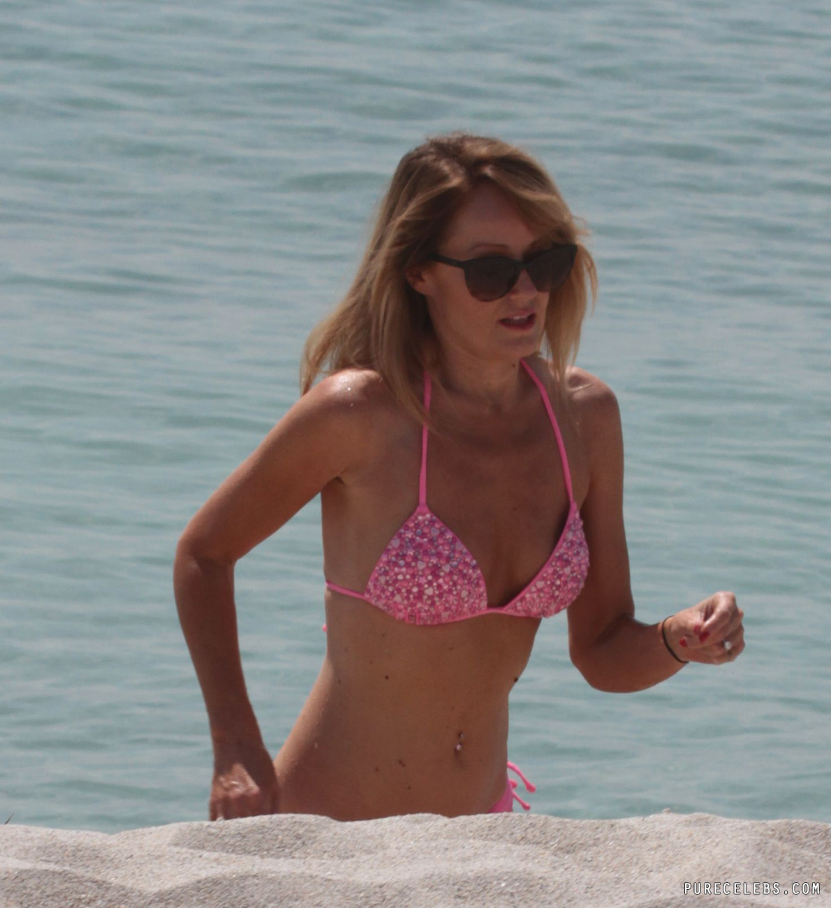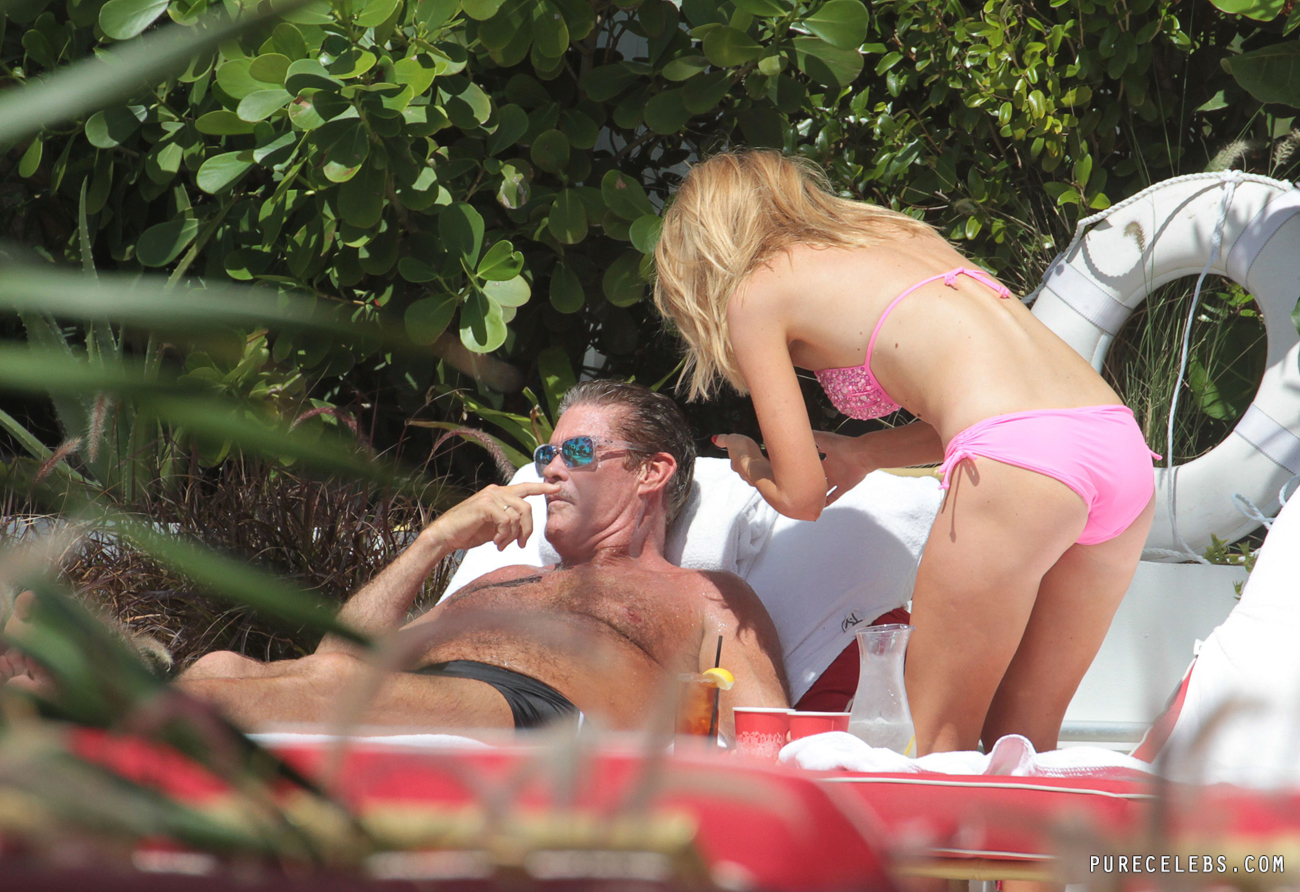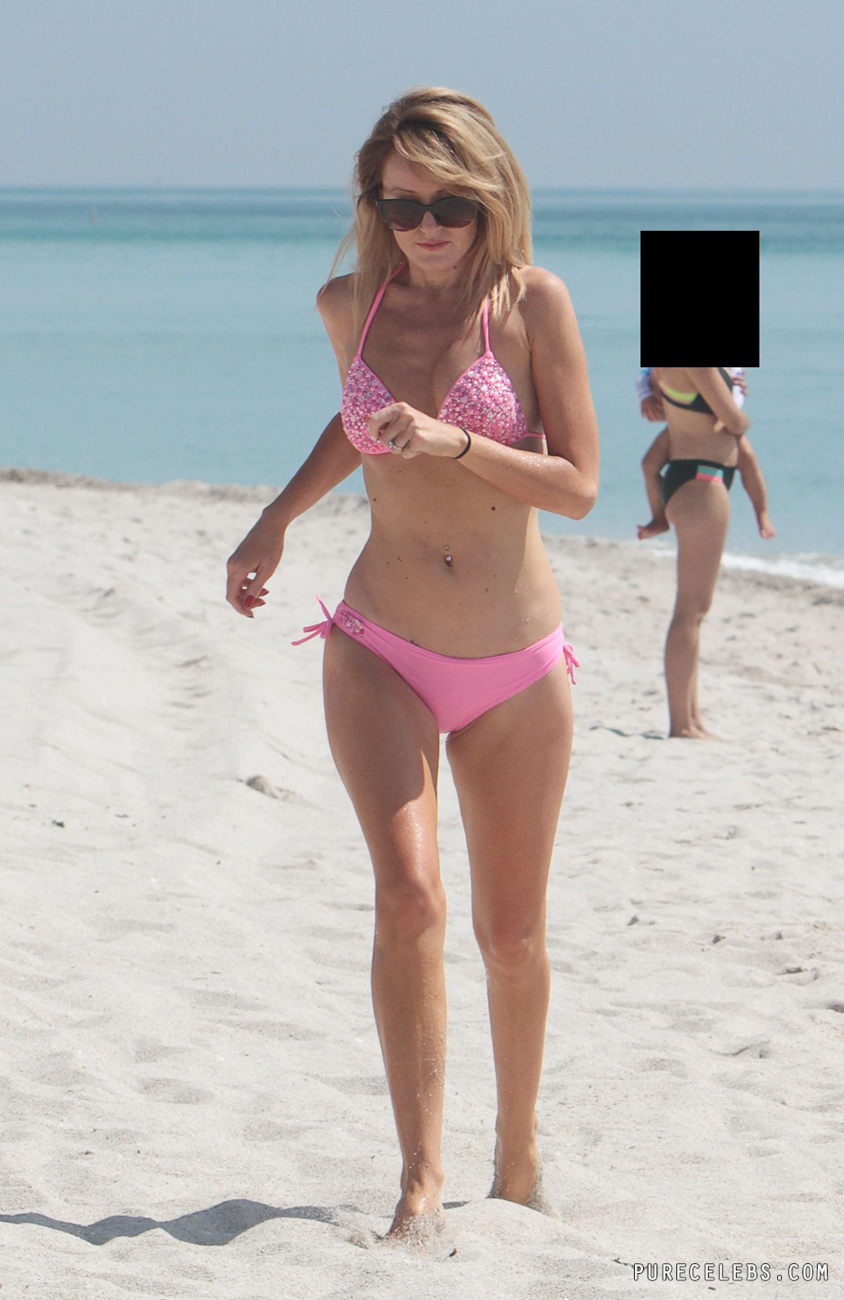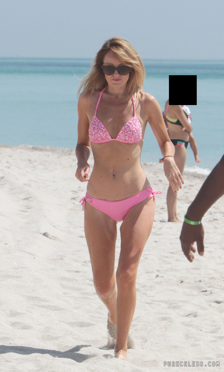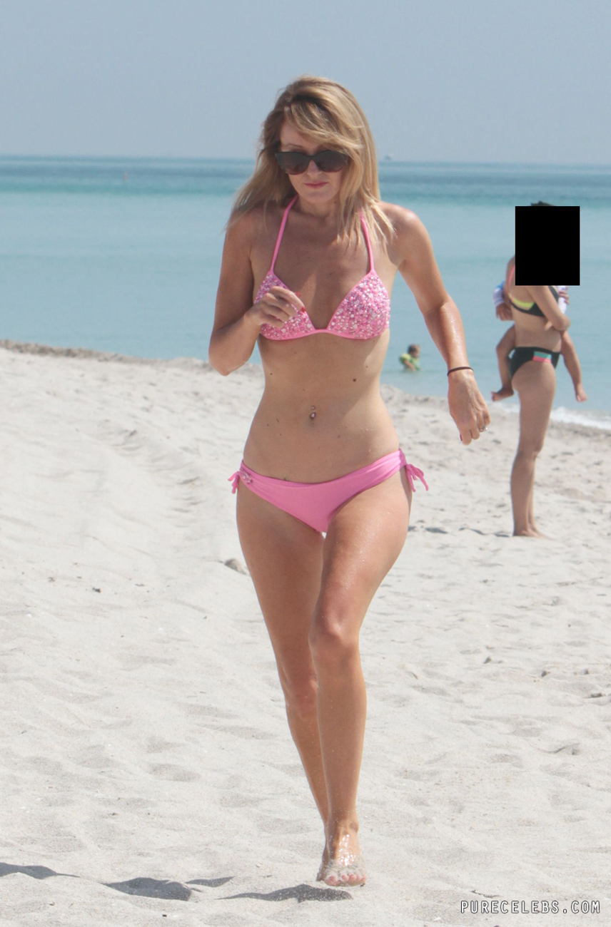 This gorgeous blonde chick got fame thanks to her marriage to the one of the most popular actors in Hollywood David Hasselhoff. That’s why paparazzi are following her wherever she goes. This time she went on the beach to soak up the sun and of course paparazzi followed her! They snapped bunch of photos on which she looks way too sexy just because she wore tight bikini!