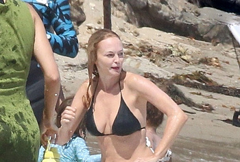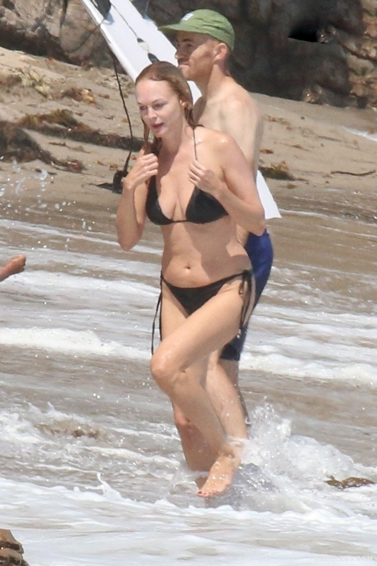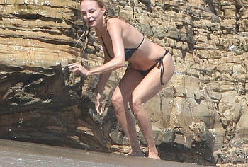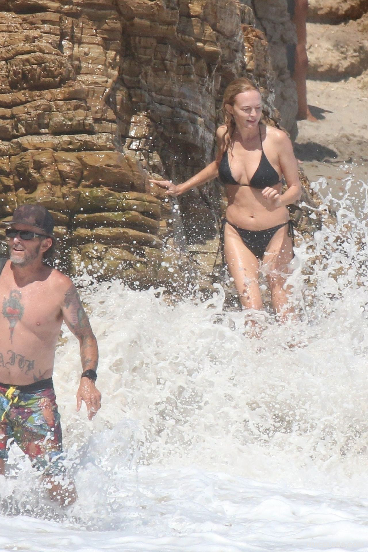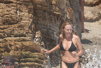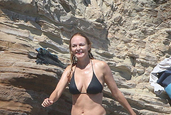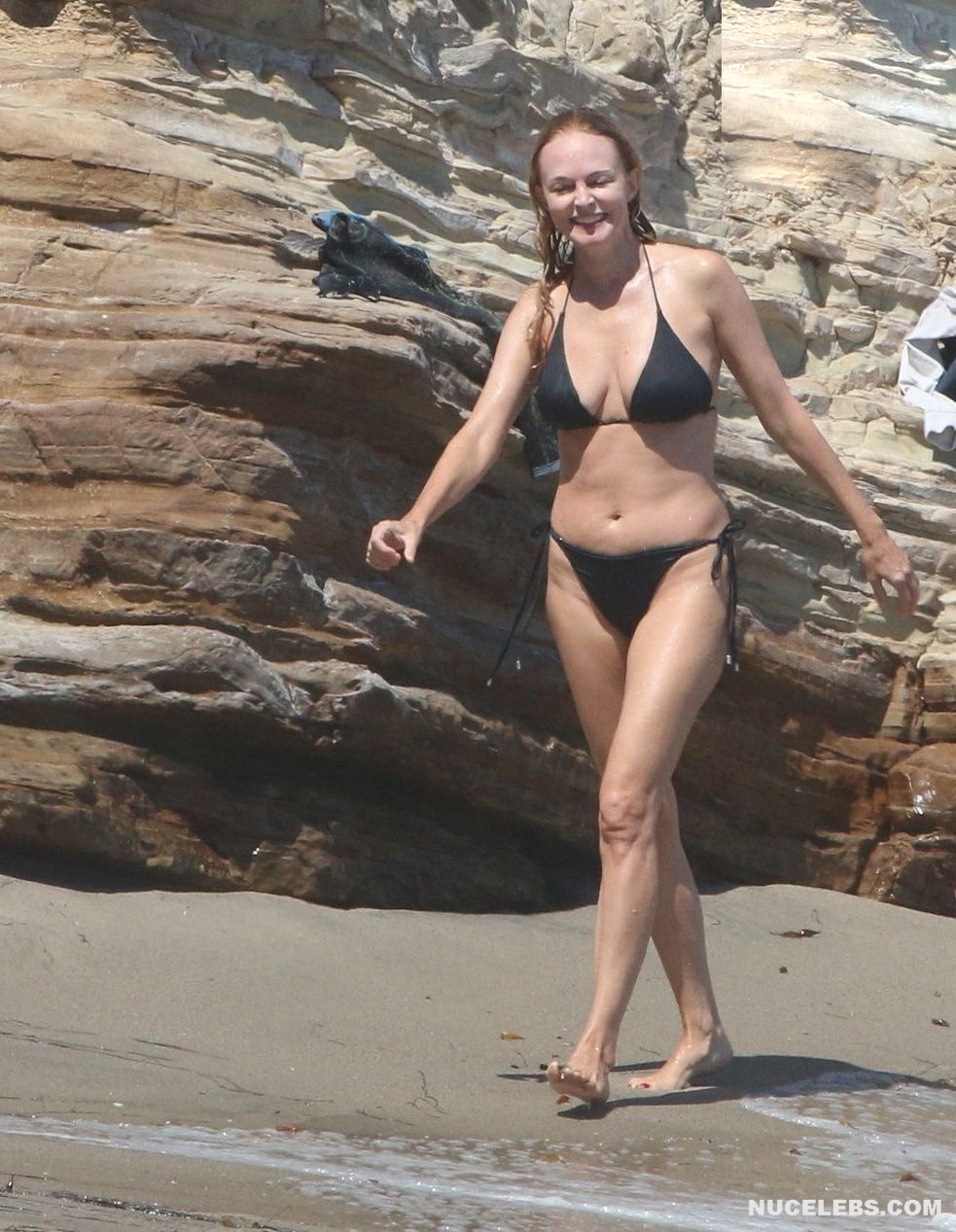 Behold Heather Graham’s amazing body in these images! This American actress managed to maintain the stunning figure that she showed off during her vacation. A miniature black bikini barely covered Heather Graham’s sweet tits and awesome butt, which attracted admiring glances from others. Also, this beauty in a red tight-fitting suit was photographed on the seashore, in the arms of a man. At the same time, all attention was paid to Heather Graham’s wonderful cameltoe, which especially stood out in tight leggings.
