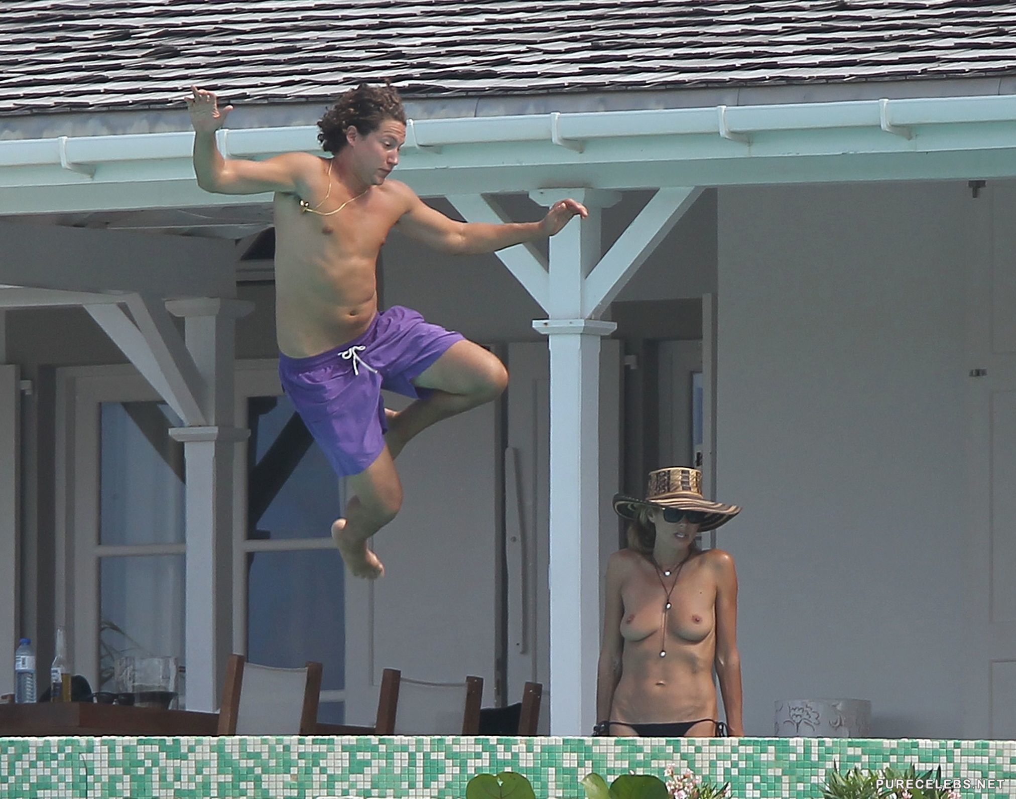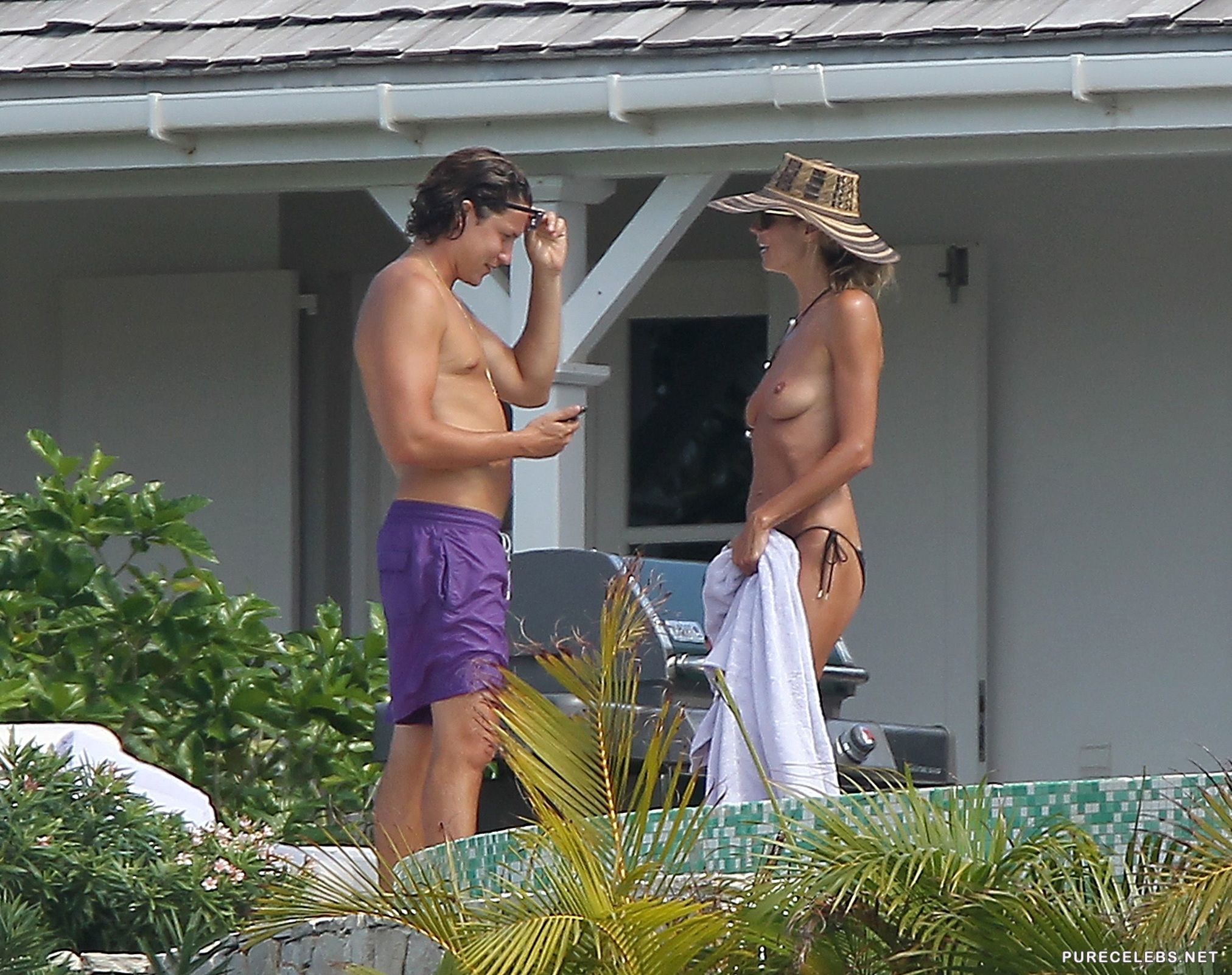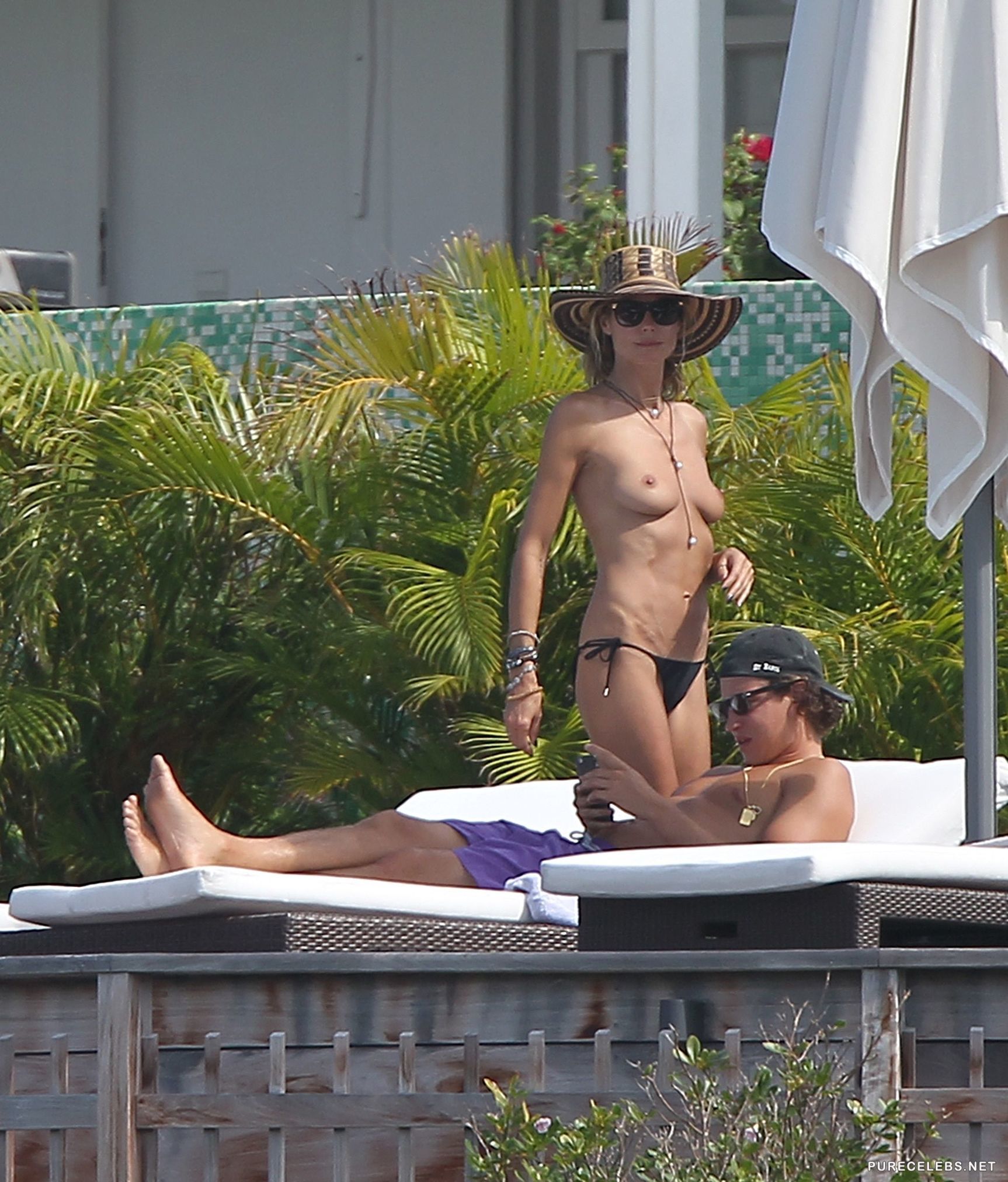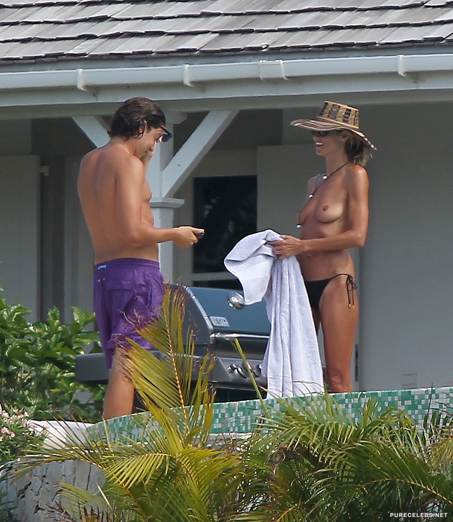 Even stars need some time to unwind and supermodel Heidi Klum is no exception. Fortunate paparazzi reporters were able to snag a few candid pictures of this amazing blond MILF while she was on vacation and sunbathing topless. Her delicious natural tits look amazing in the sun as she relaxes by the pool with her new boyfriend. You surely won’t be able to take your eyes off of Heidi’s tight sexy body.