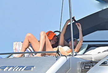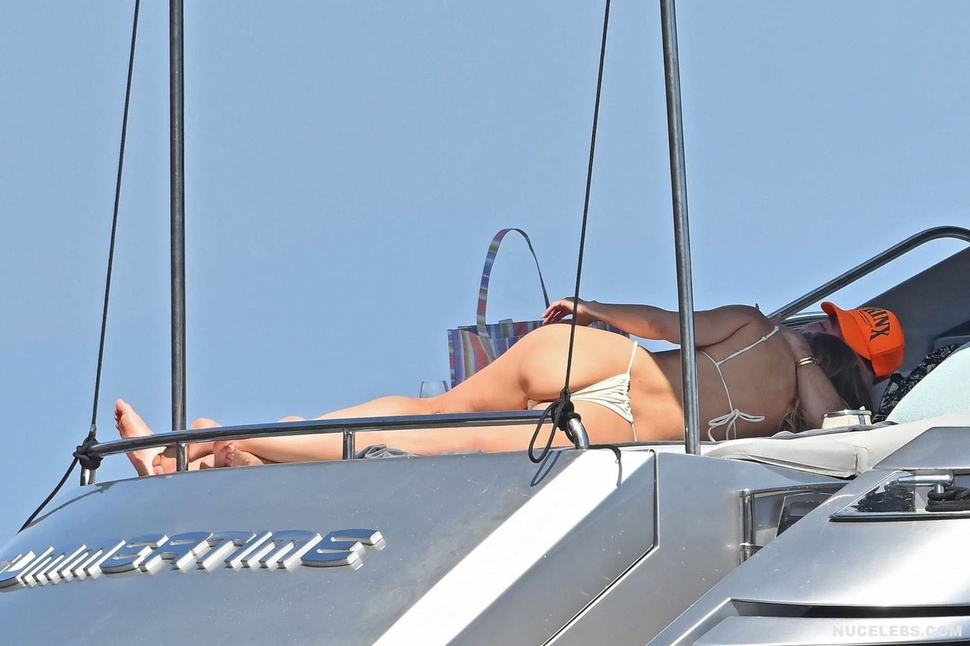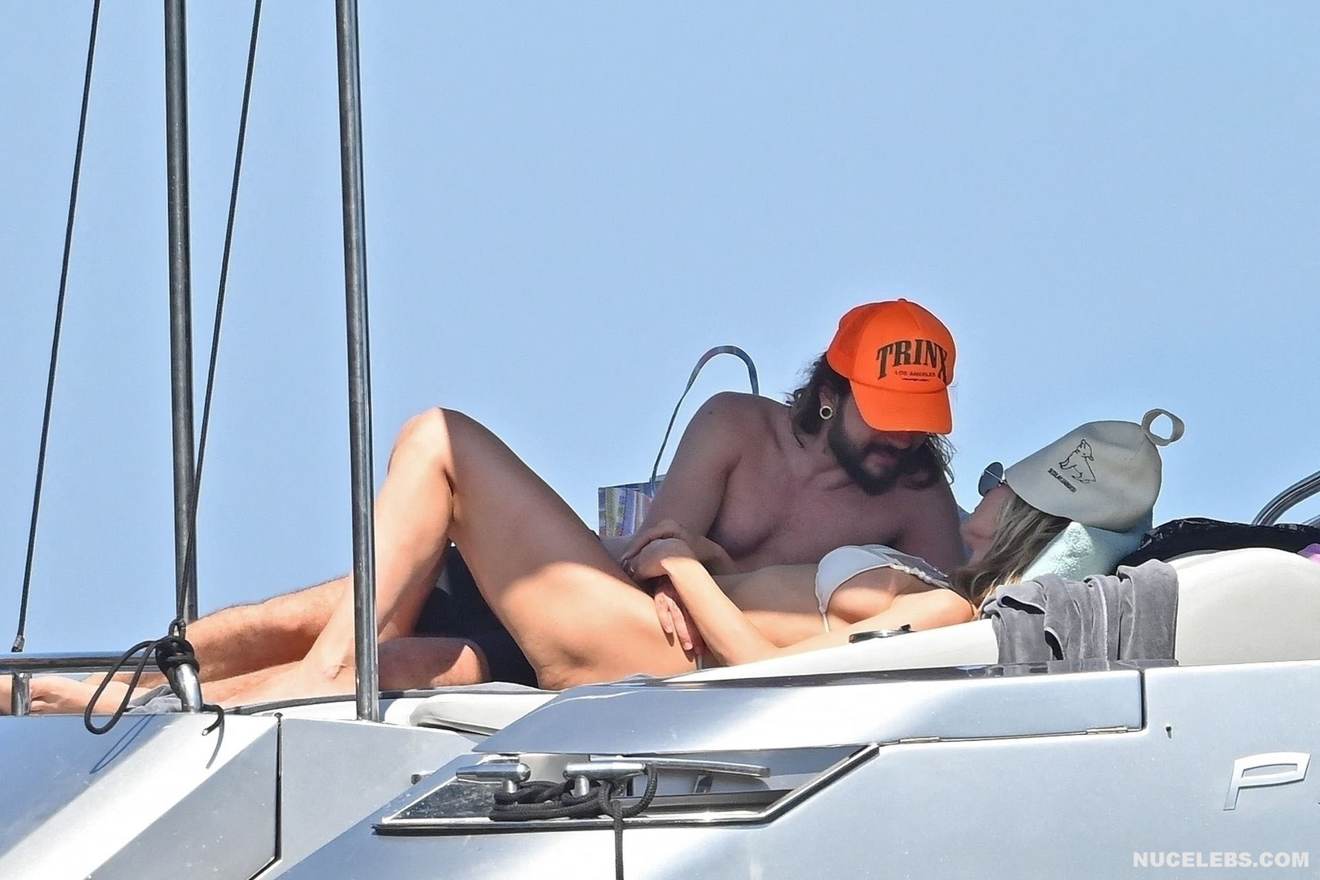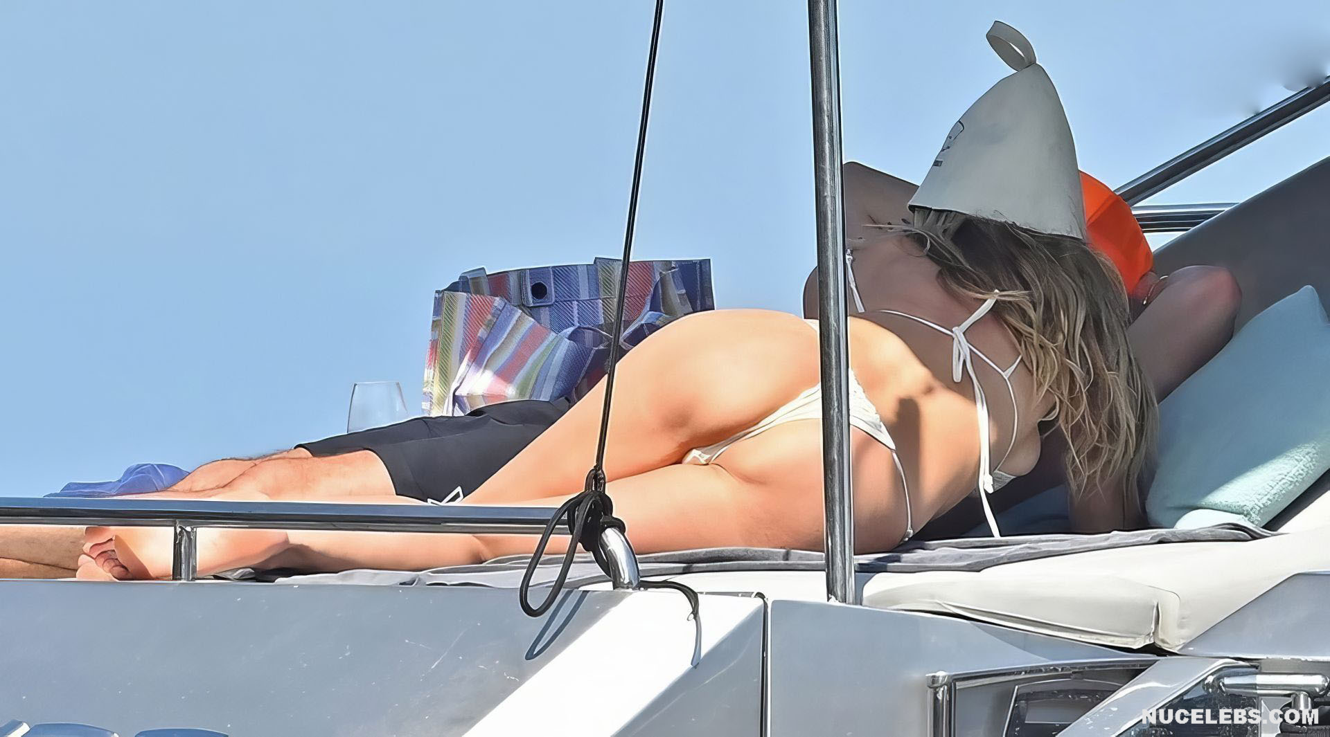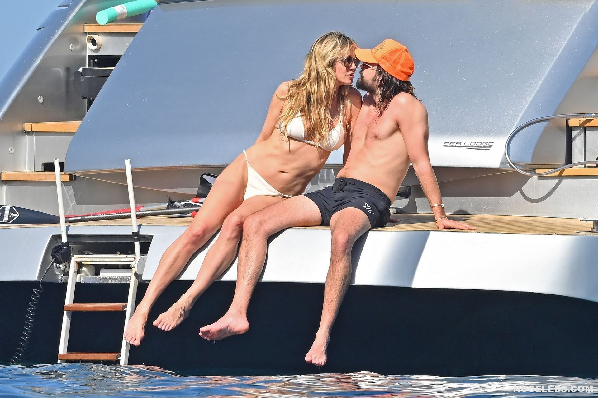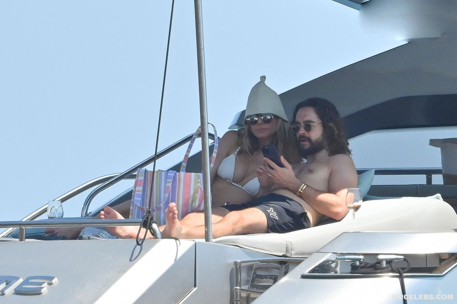 Dive into Heidi Klum’s aquatic escapades as she dives off the yacht’s deck into the ocean’s embrace. This German supermodel once again showed off her slim figure in a petite white bikini. By the way, this beauty didn’t miss the opportunity to turn her back to the camera to show her nice butt in white panties. Moreover, Heidi Klum’s juicy boobs were naked at that moment and she held them lightly with her hand. And here is a selfie in which Heidi Klum not only showed her nude tits but also pushed her black panties down, exposing her pubis.