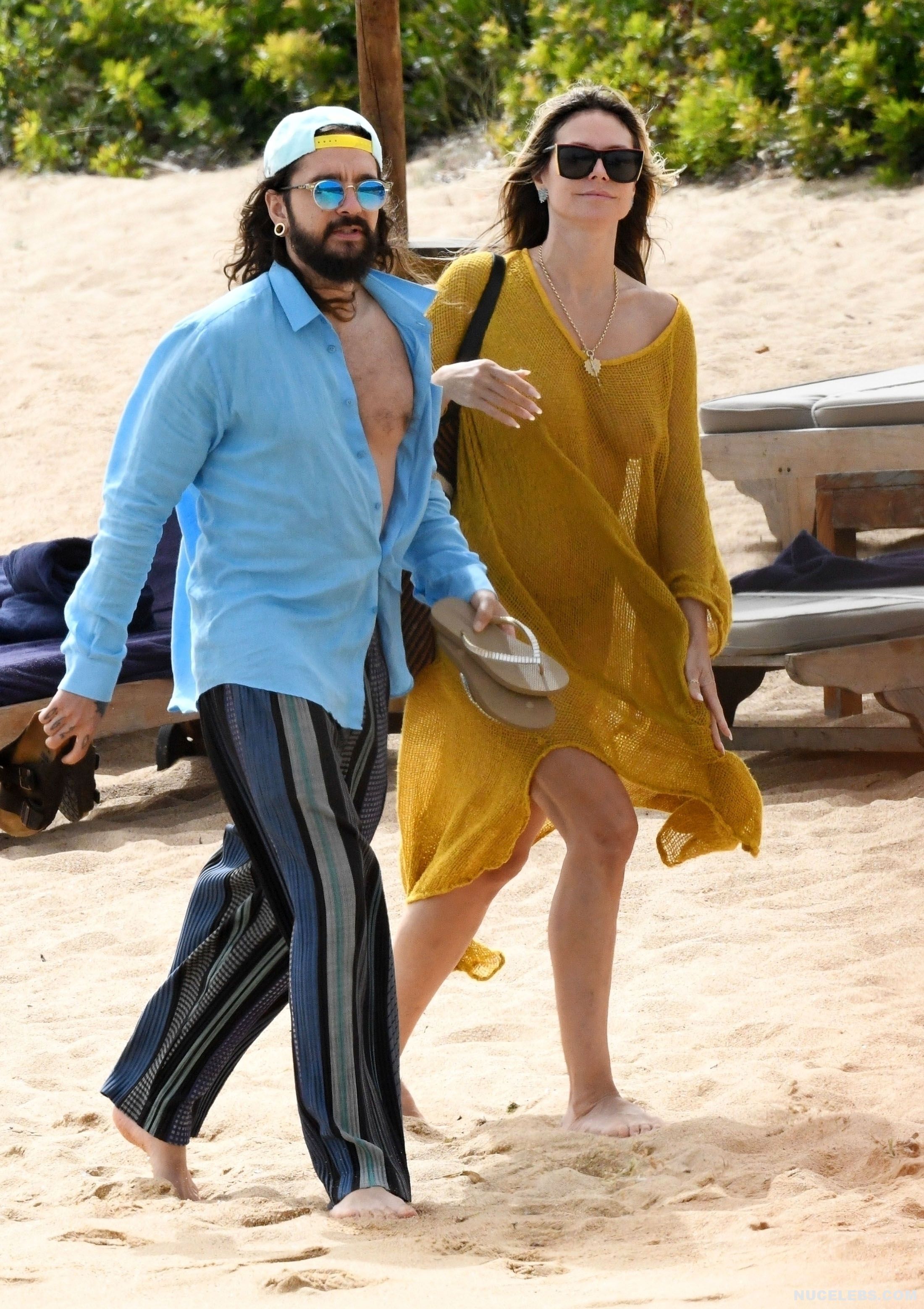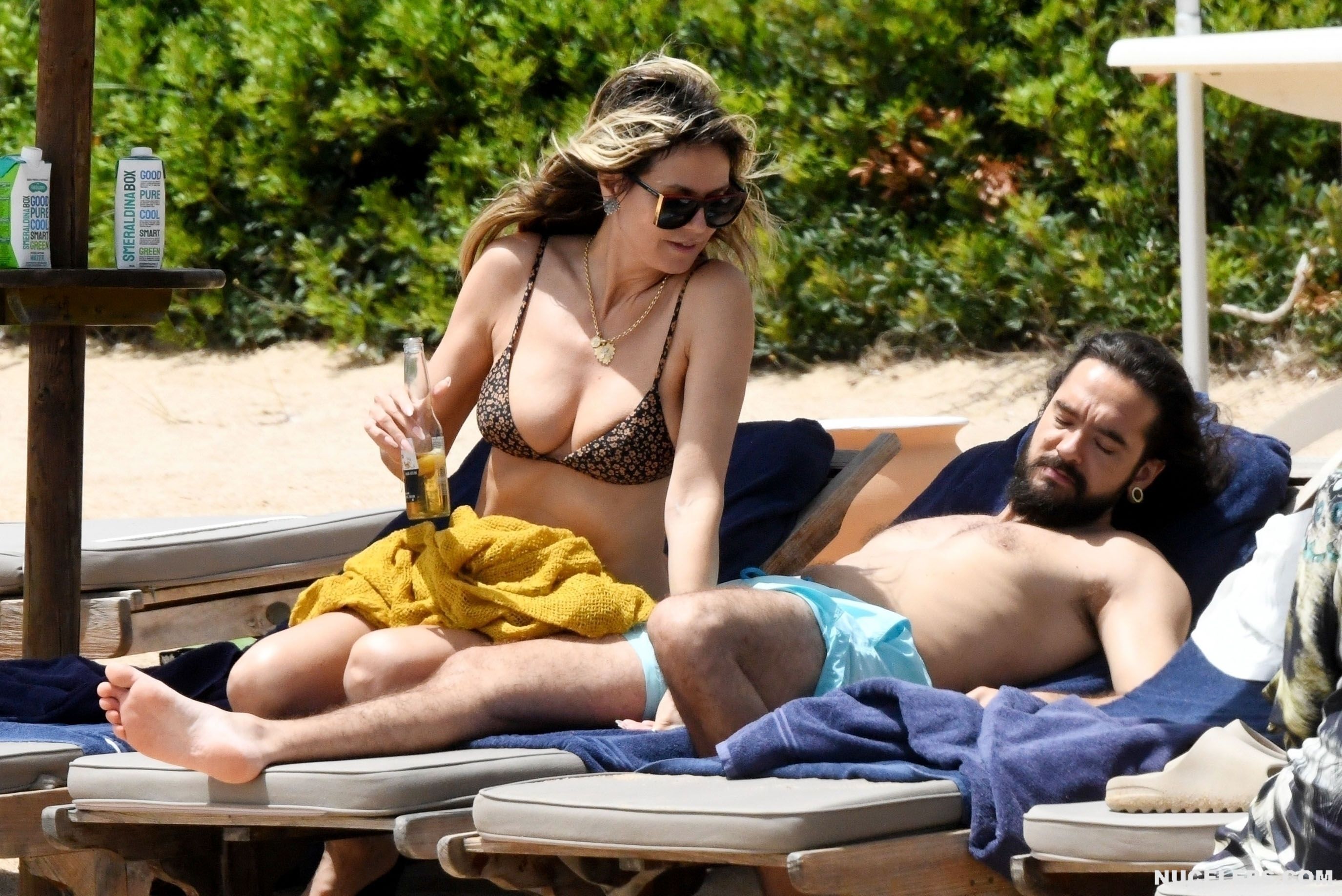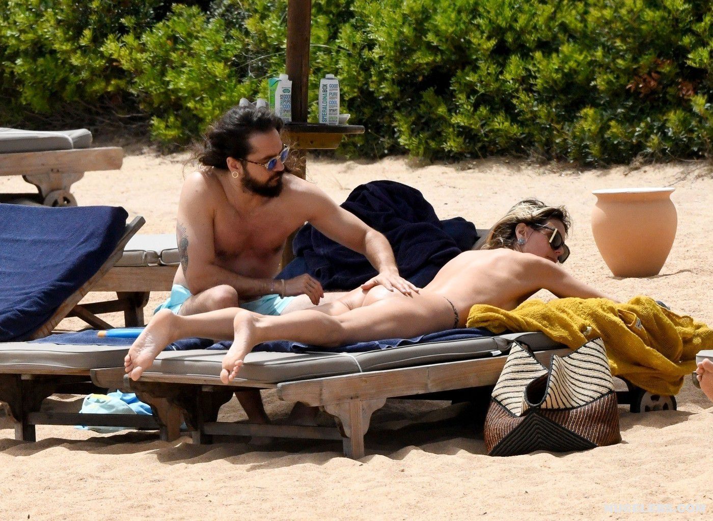 Heidi Klum is in great physical shape and continues to drive people crazy. Not long ago, this hot blonde was relaxing on the beach. At first, she was spotted in a yellow transparent tunic, through which her sweet tits were visible. And a little later, this model really took off her clothes to sunbathe topless. Heidi Klum nude boobs were on display and they looked incredibly seductive!