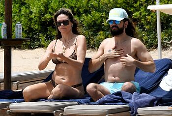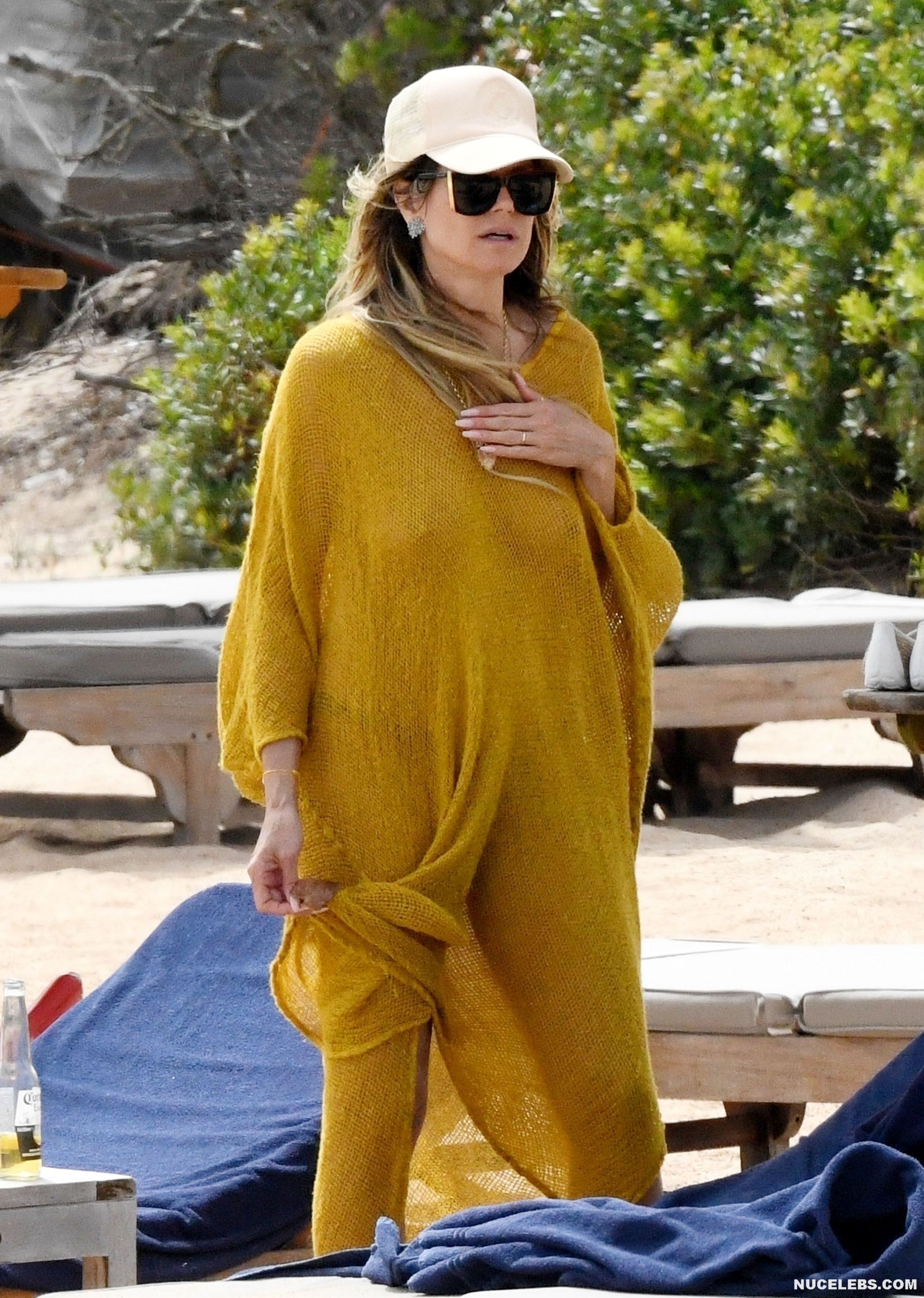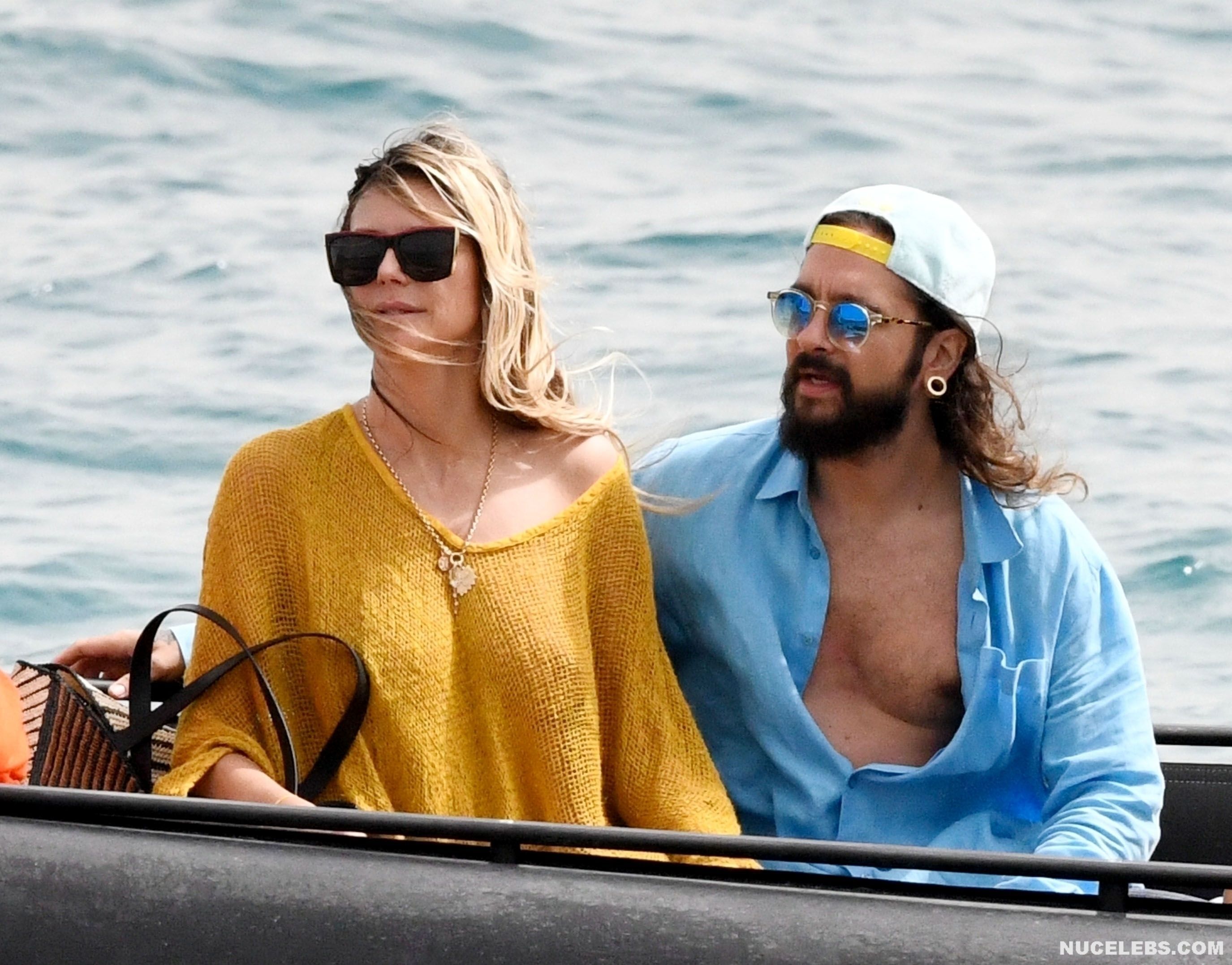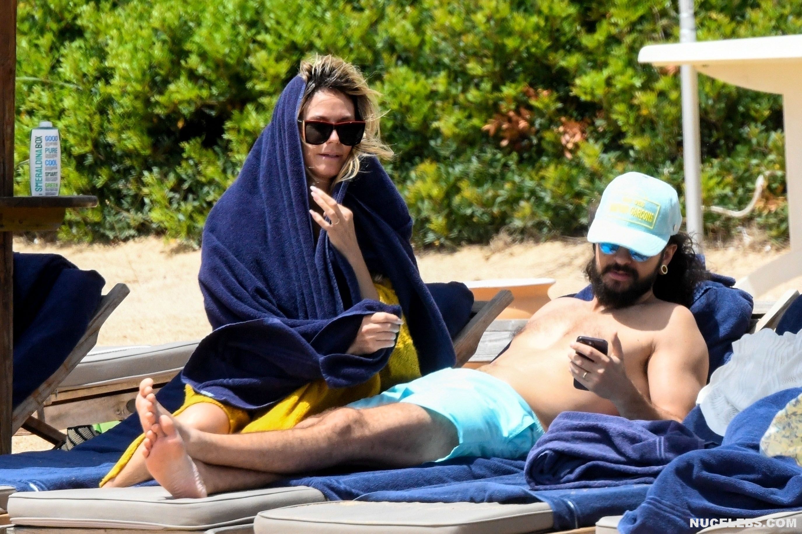 Heidi Klum is in great physical shape and continues to drive people crazy. Not long ago, this hot blonde was relaxing on the beach. At first, she was spotted in a yellow transparent tunic, through which her sweet tits were visible. And a little later, this model really took off her clothes to sunbathe topless. Heidi Klum nude boobs were on display and they looked incredibly seductive!