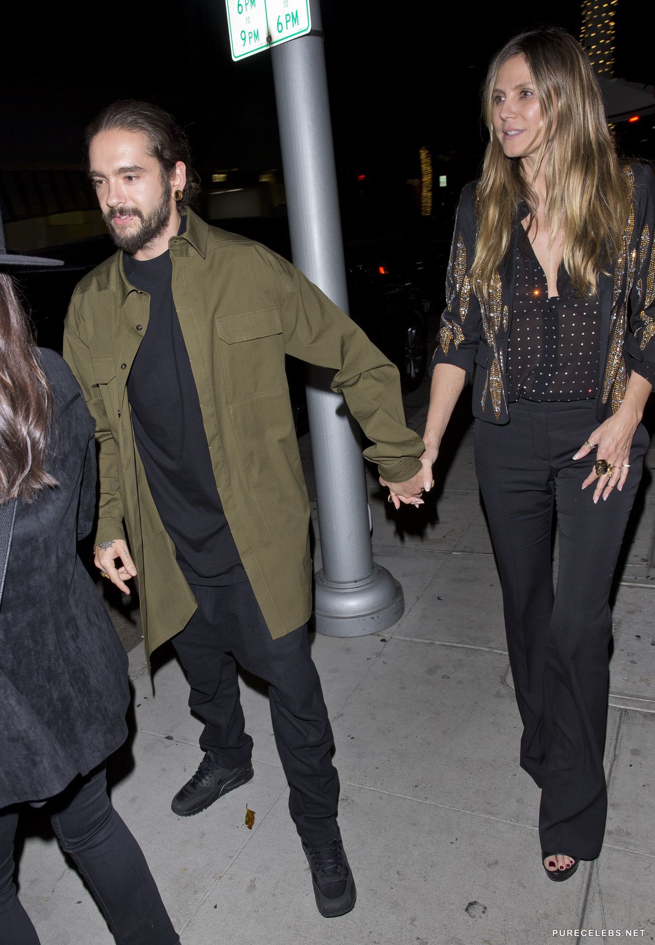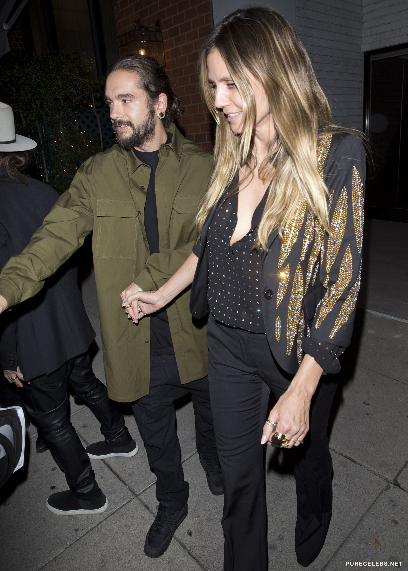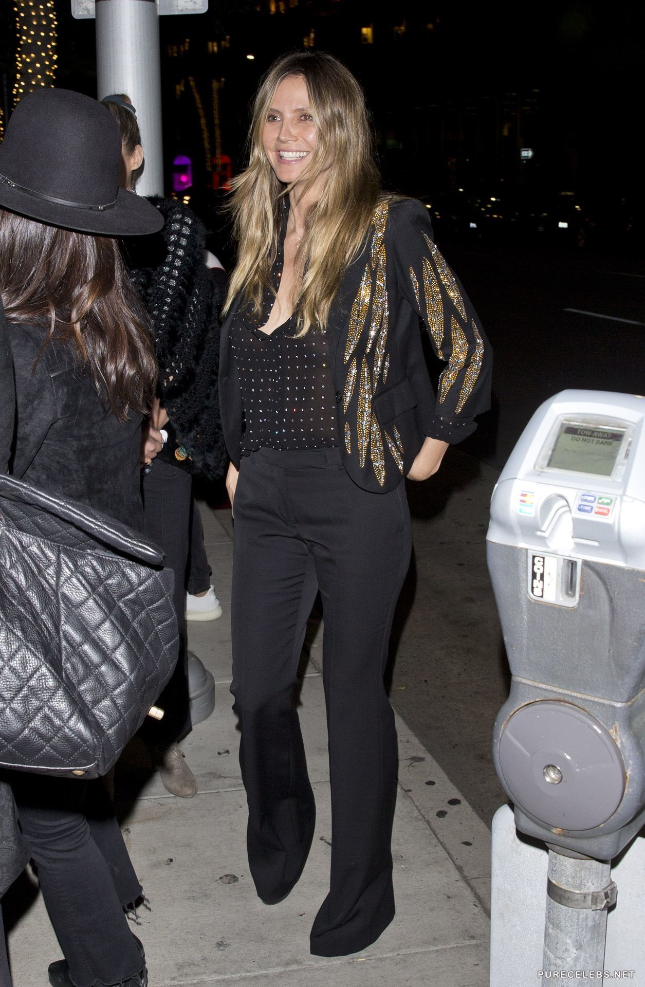 Heidi Klum was seen with a huge smile on her face and in a see through shirt, without a bra, going out of a restaurant, where she had a pleasant dinner with a younger man, who was holding her hand on their way out. This gorgeous German model looks stunning and this time she seemed like she barely had any make- up on, still she looked as amazing as always.