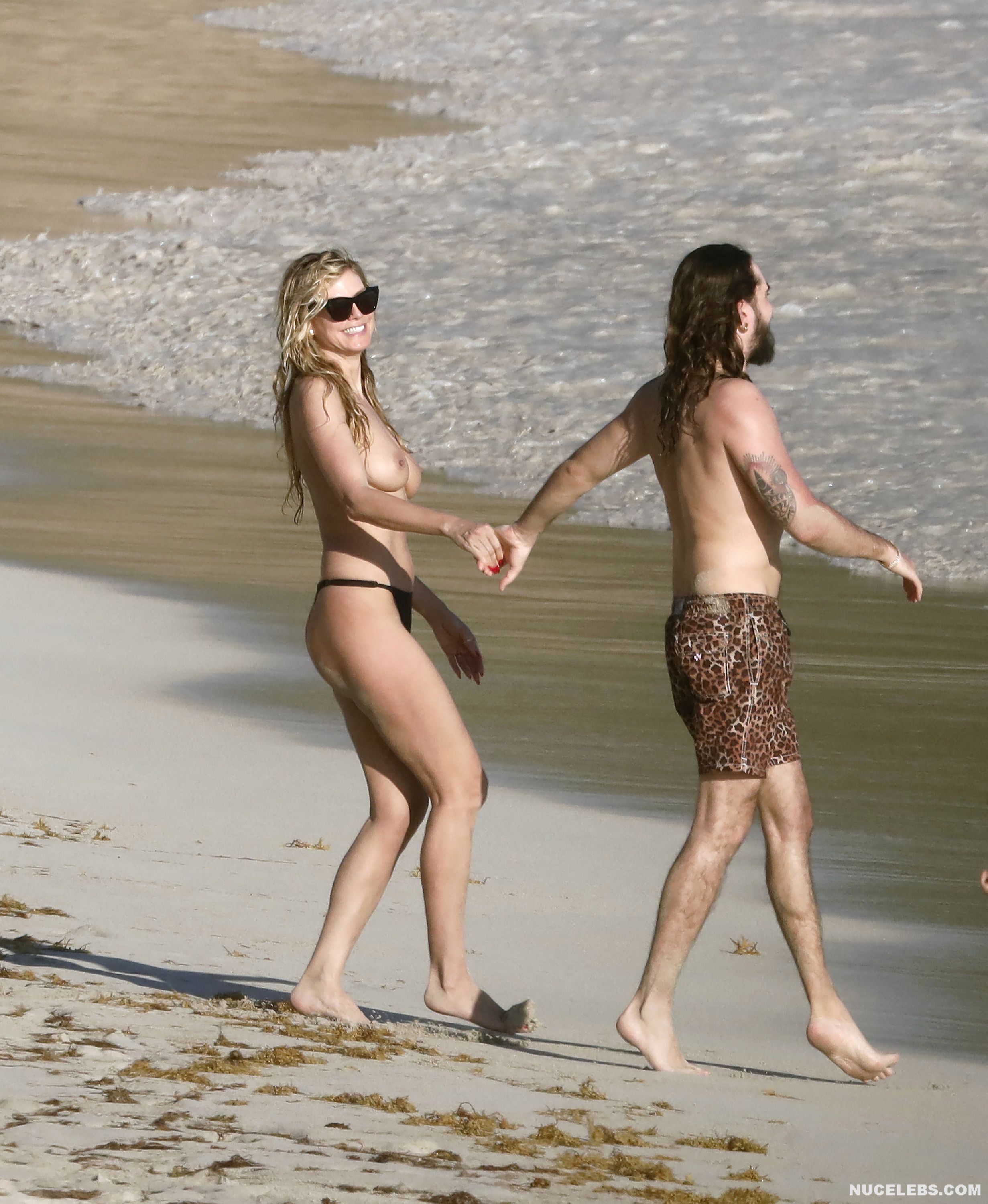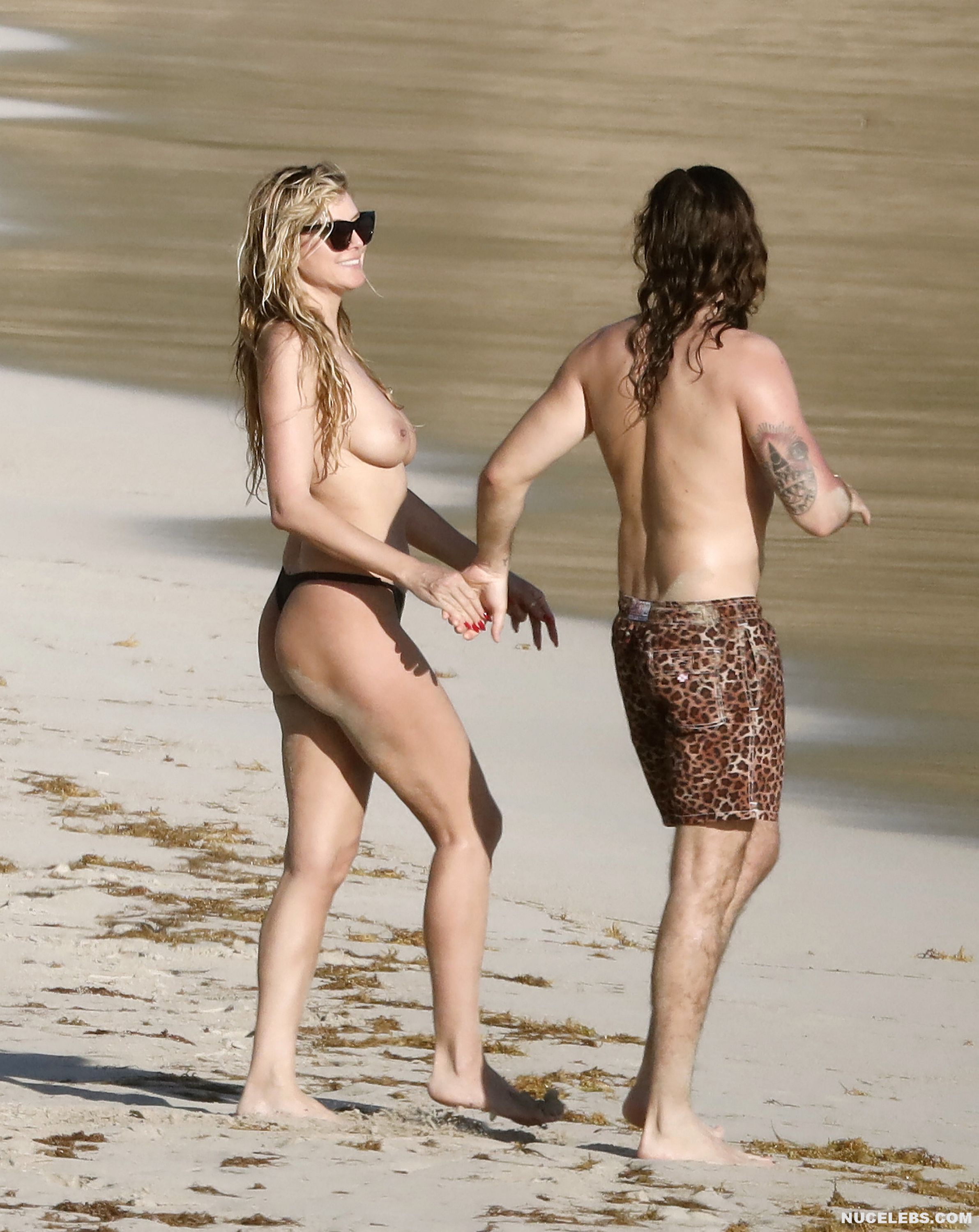 Get ready to jerk off while looking at Heidi Klum nude boobs that she showed on the beach in St Barts. The charming supermodel was sunbathing topless again and she was wearing only a tiny black thong. The paparazzi managed to take many pictures of this hot blonde from different angles. So let’s enjoy Heidi Klum nude juicy boobies with hard little nipples together! See it all here!