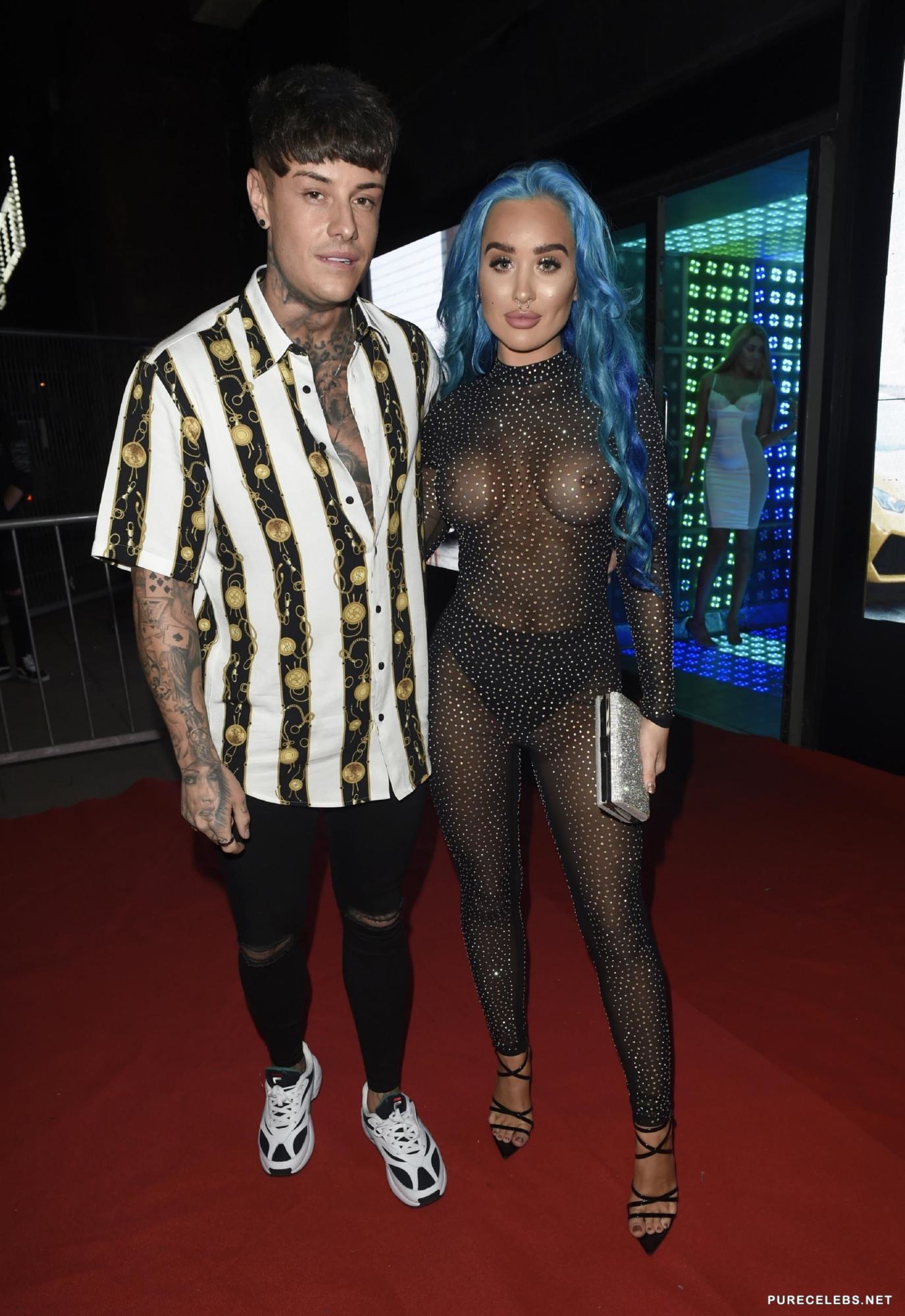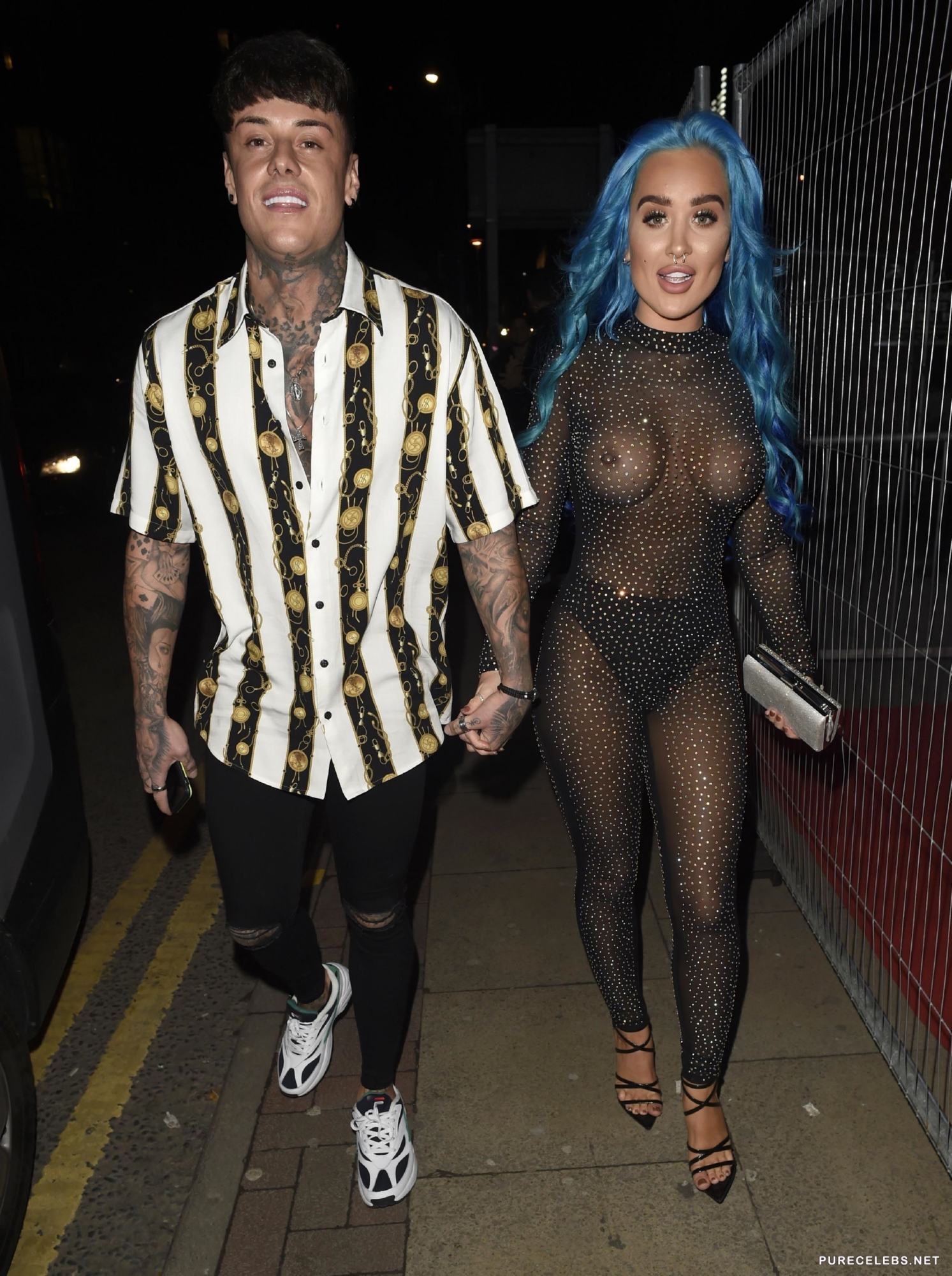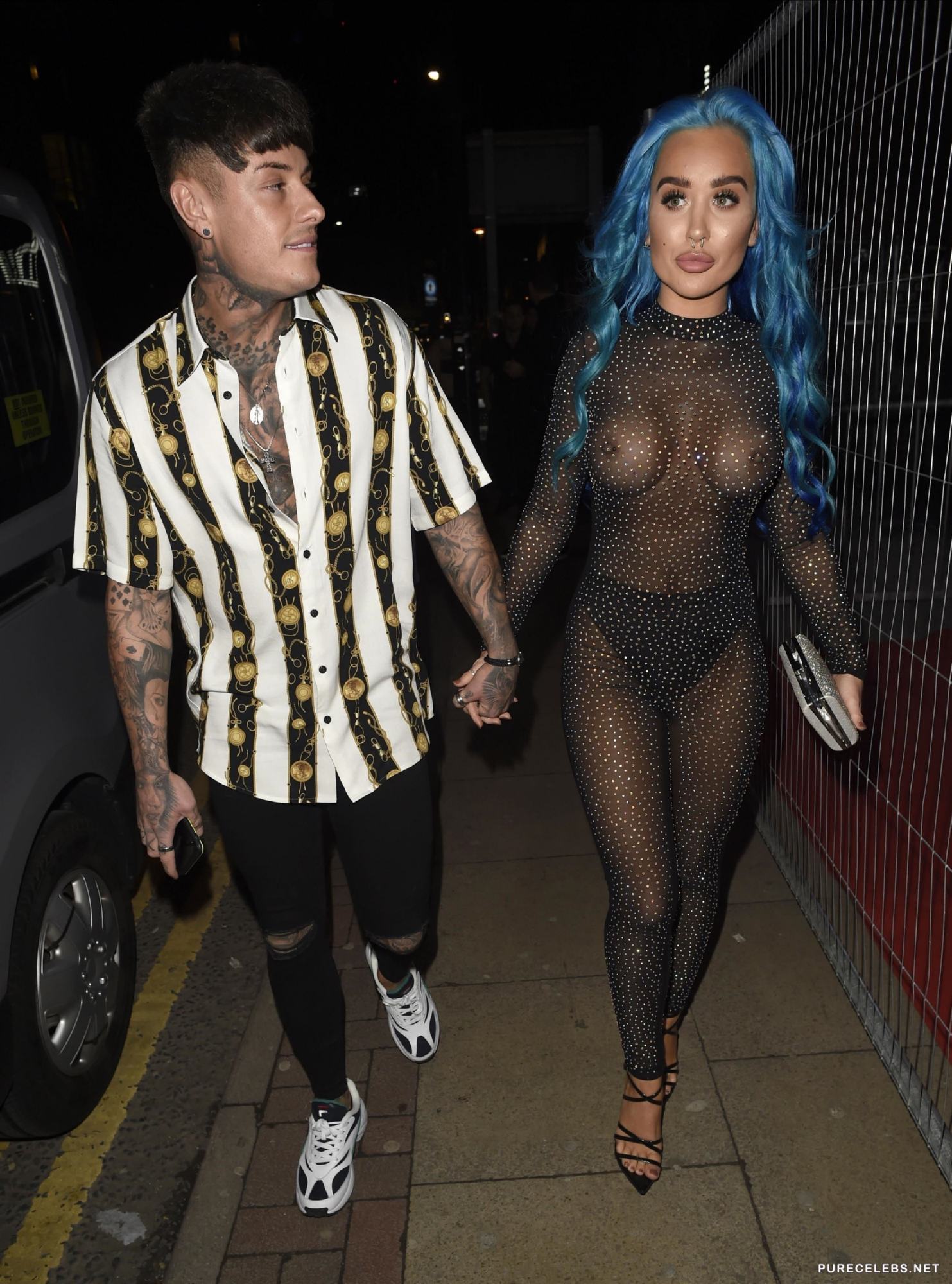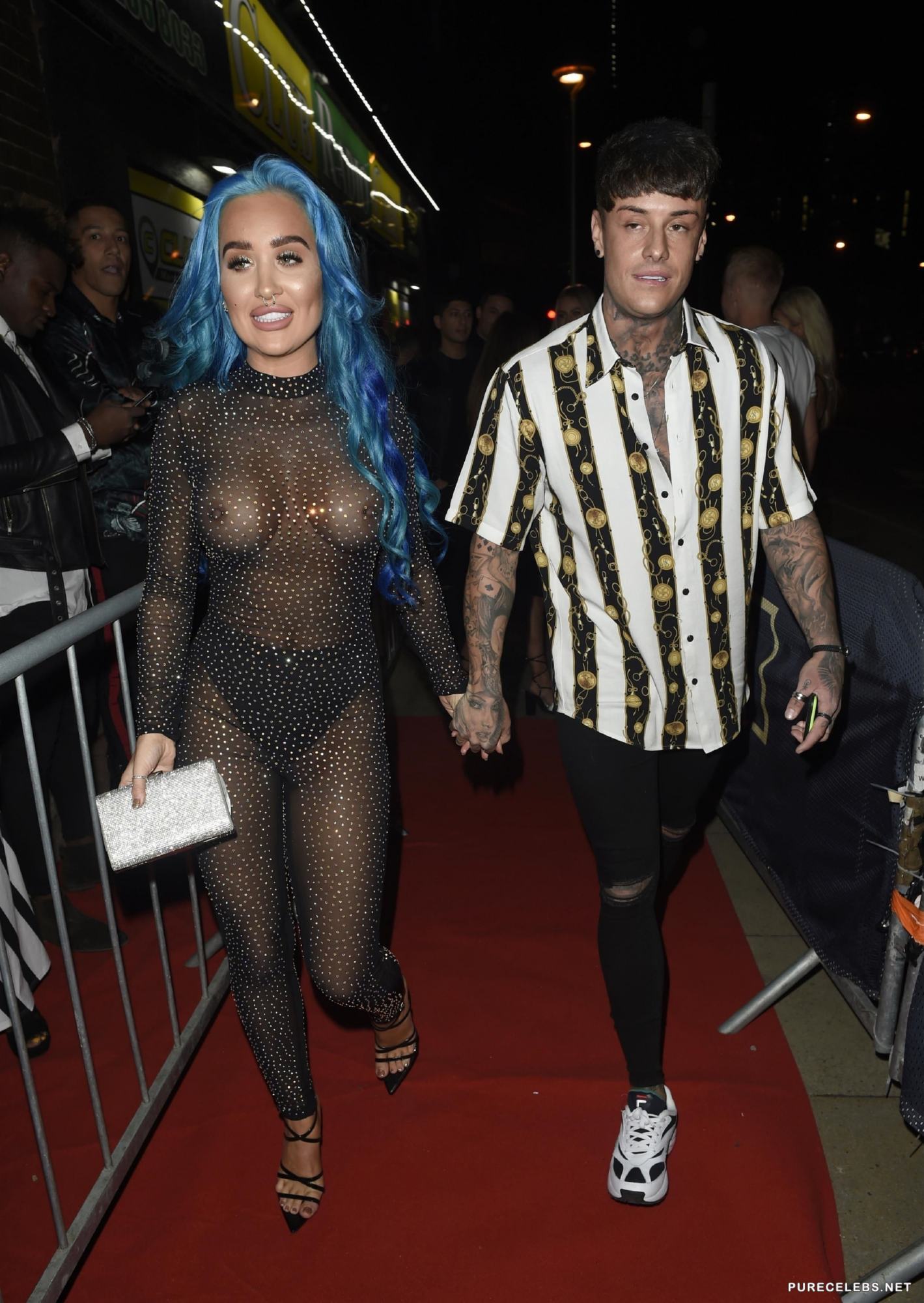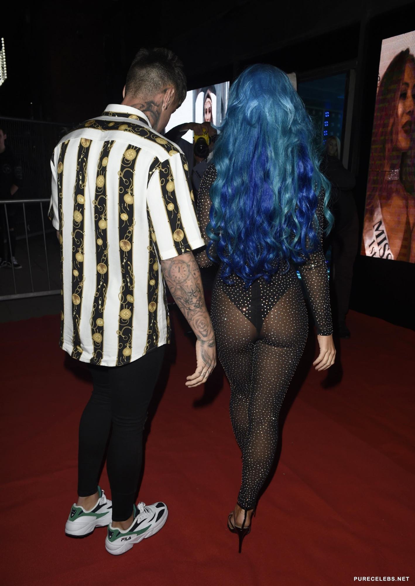 Long, blue hair, big, firm boobs with pierced nipples and a smoking hot honey parading her ample assets in a see- through, black dress, while holding hands with her guy, Helen Briggs ladies and gentleman, showing off her sexy body during a night out. This is how we like our celebrities- looking hot and not being shy to show it all as often as they have a good opportunity.