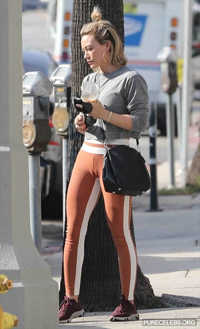 Paparazzi managed to catch the American singer Hilary Duff when she walked on the street. Well, maybe they weren’t able to photograph Hilary Duff’s nude pussy or boobs. But then they caught the moment to capture her wonderful cameltoe. The celebrity was wearing brown sweatpants. Pants not only perfectly fit her butt, but also emphasized the beauty of her sweet pussy, right?